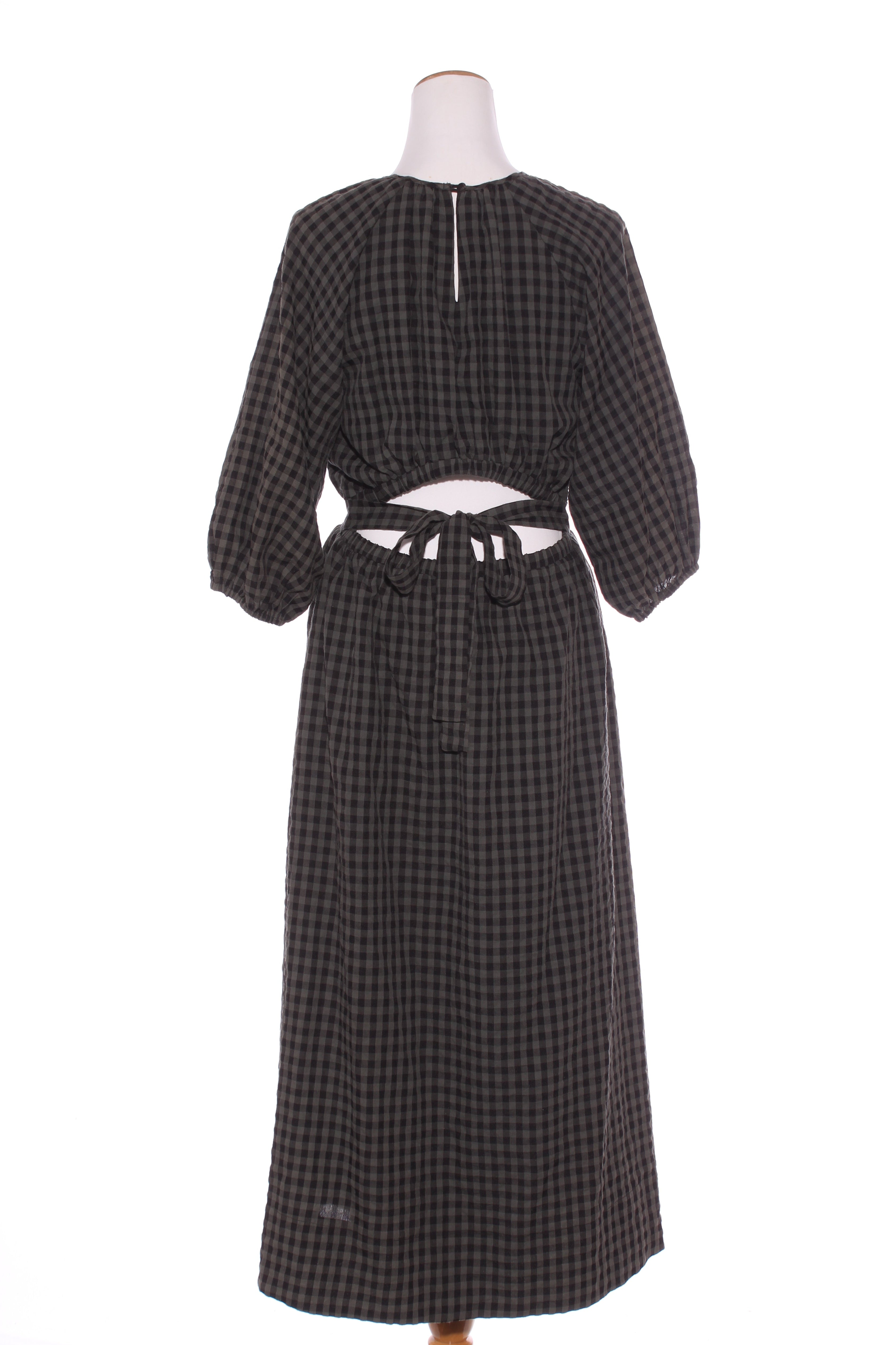 SIZE ON TAG: 12FITS LIKE: N/ACOLOUR: Khaki, blackFABRIC: 50% polyester, 50% cotton, Lining - viscoseCONDITION: Excellent prelovedMEASUREMENTS:BUST: 52cms WAIST: 37cms LENGTH: 133cms NOTES: The Cleo Tie...