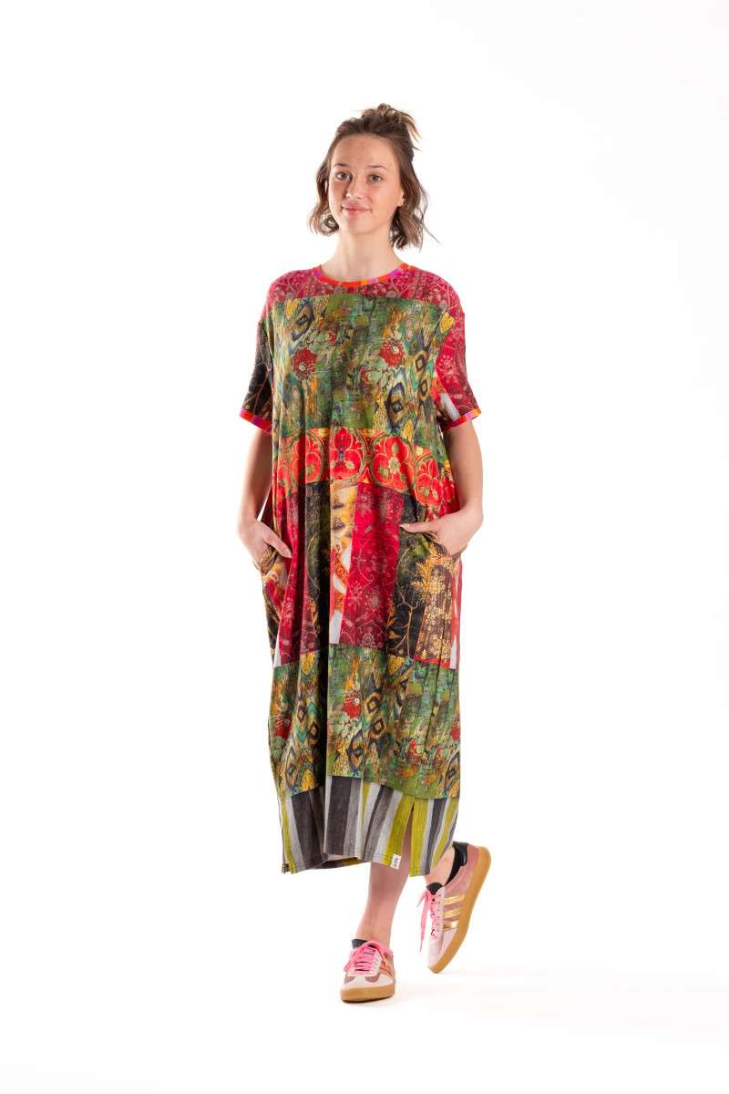 SIZE ON TAG: MFITS LIKE: 12-16COLOUR: MultiFABRIC: 95% cotton, 5% spandexCONDITION: Brand new with tagMEASUREMENTS:BUST: 64cms WAIST: 74cms LENGTH: 116-119cmsNOTES: Deeanne Hobbs Designed in Nelson, NZ....
