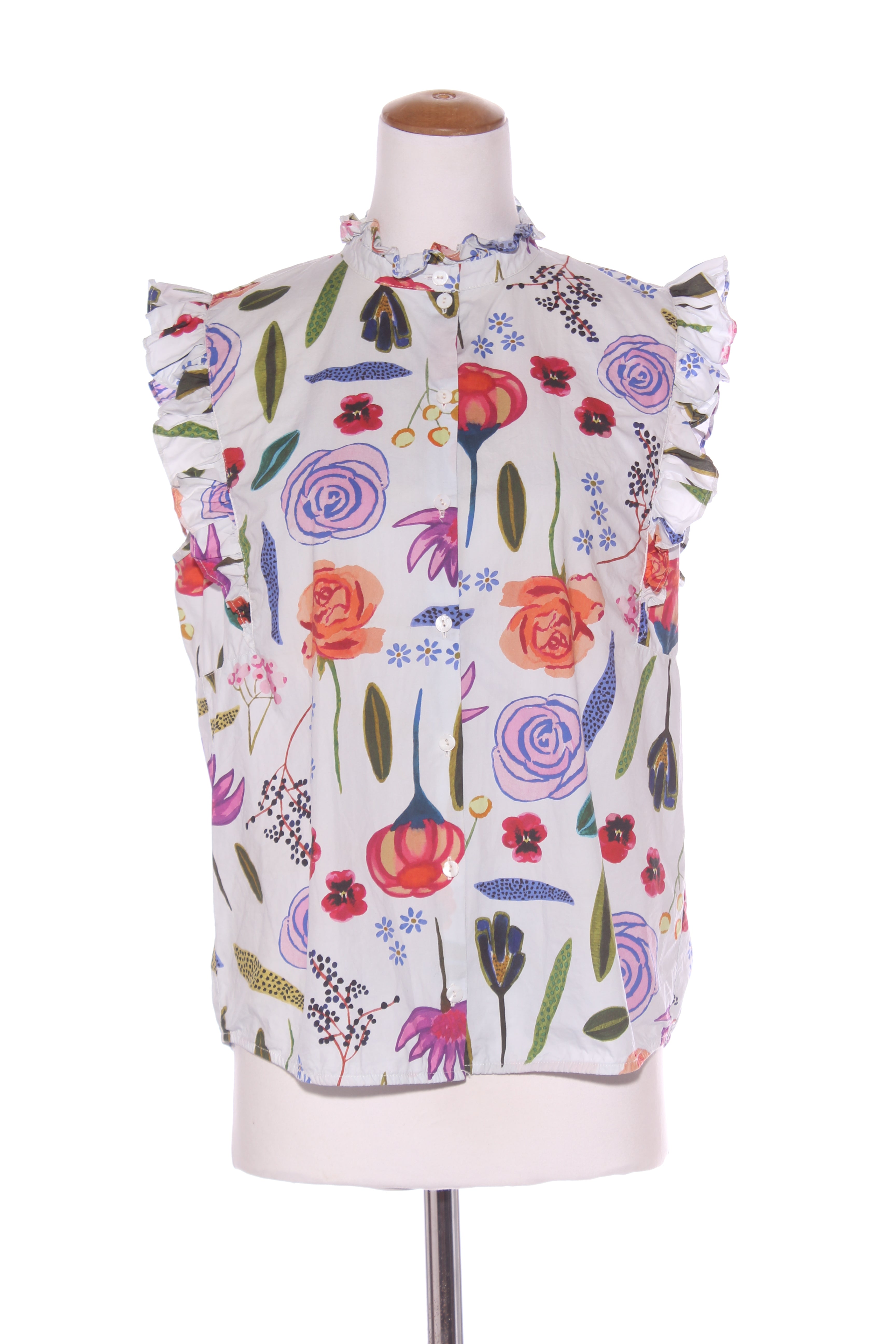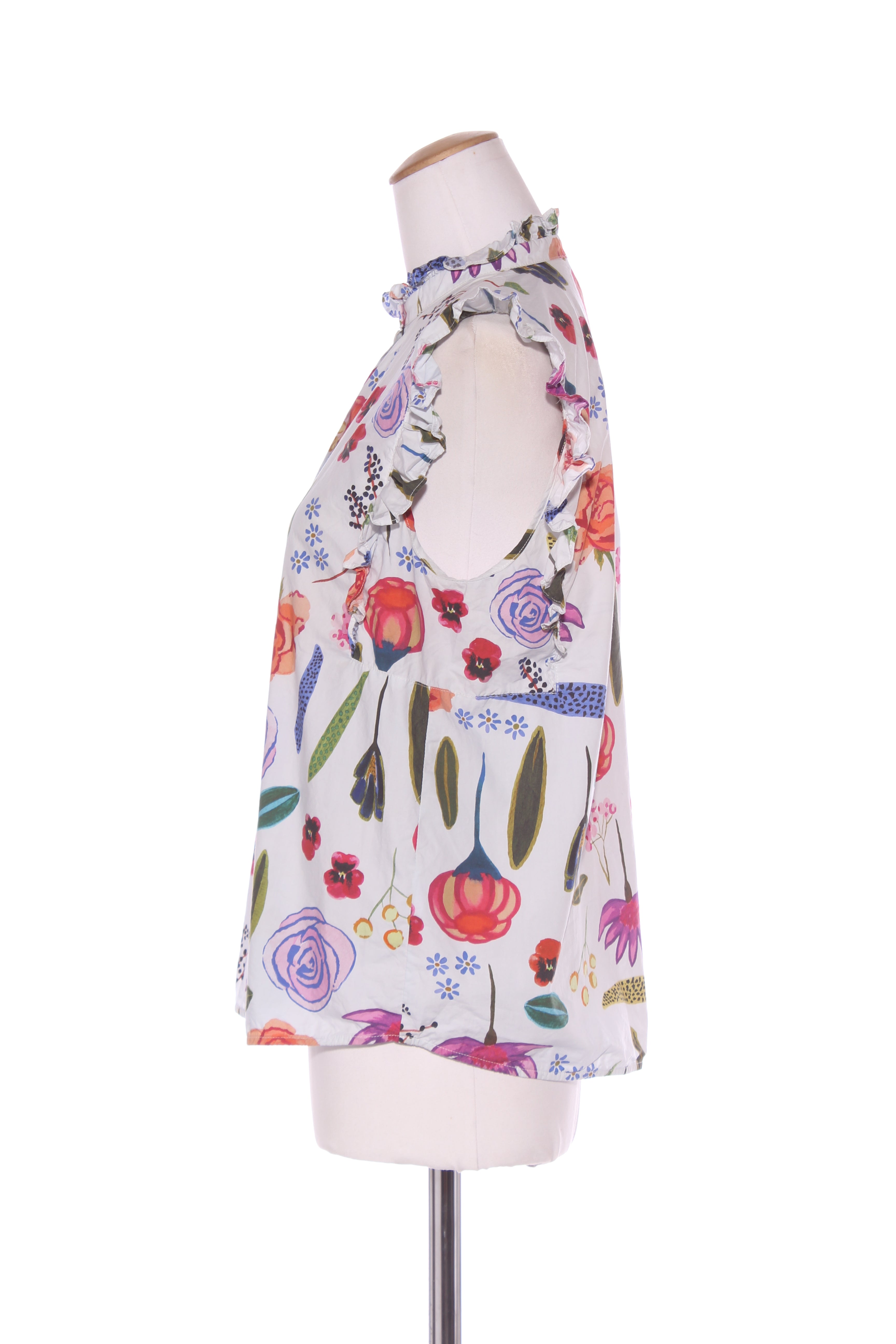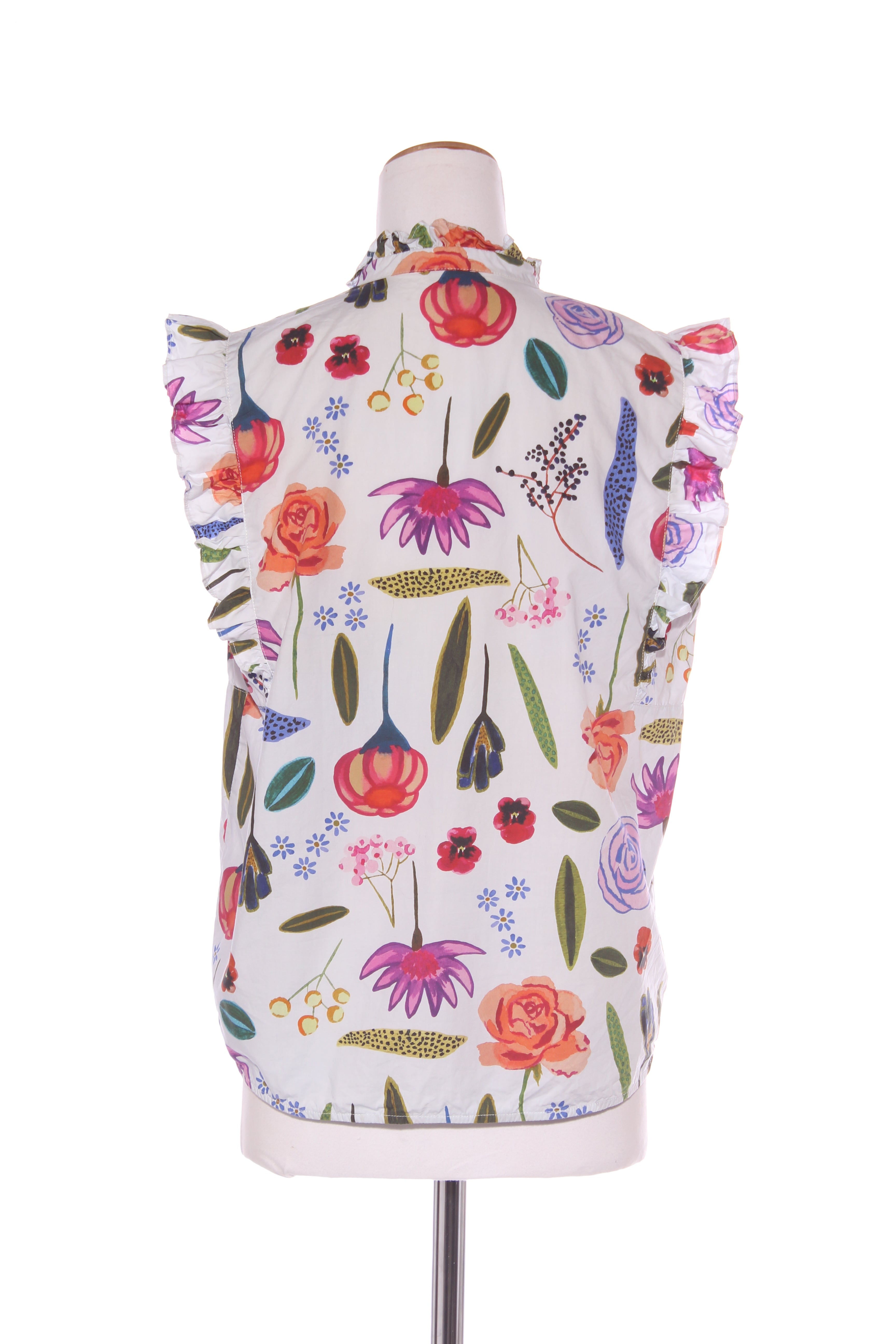 SIZE ON TAG: 12FITS LIKE: N/ACOLOUR: Navy blue, multiFABRIC: PolyesterCONDITION: Excellent prelovedMEASUREMENTS:BUST: 46cms WAIST: 47cms LENGTH: 61cms NOTES: Elasticated neckline with Mint ties that come through eyelets on the...
