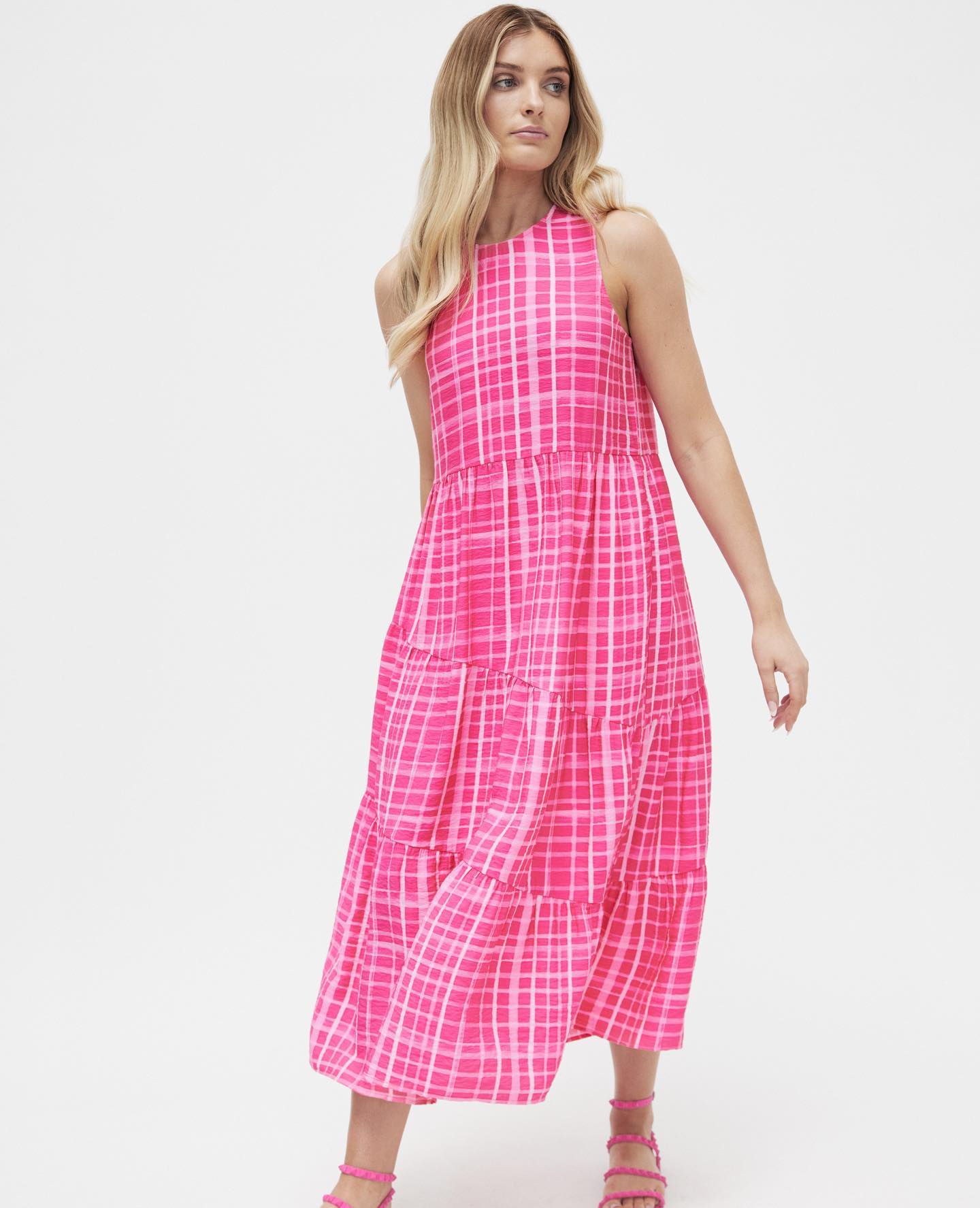 SIZE ON TAG: LFITS LIKE: 14COLOUR: Blue, green, pink, multiFABRIC: PolyesterCONDITION: Excellent prelovedMEASUREMENTS:BUST: 58cms WAIST: 58cms LENGTH: 123cmsNOTES: Made in NZ. Pull over style. Side splits...