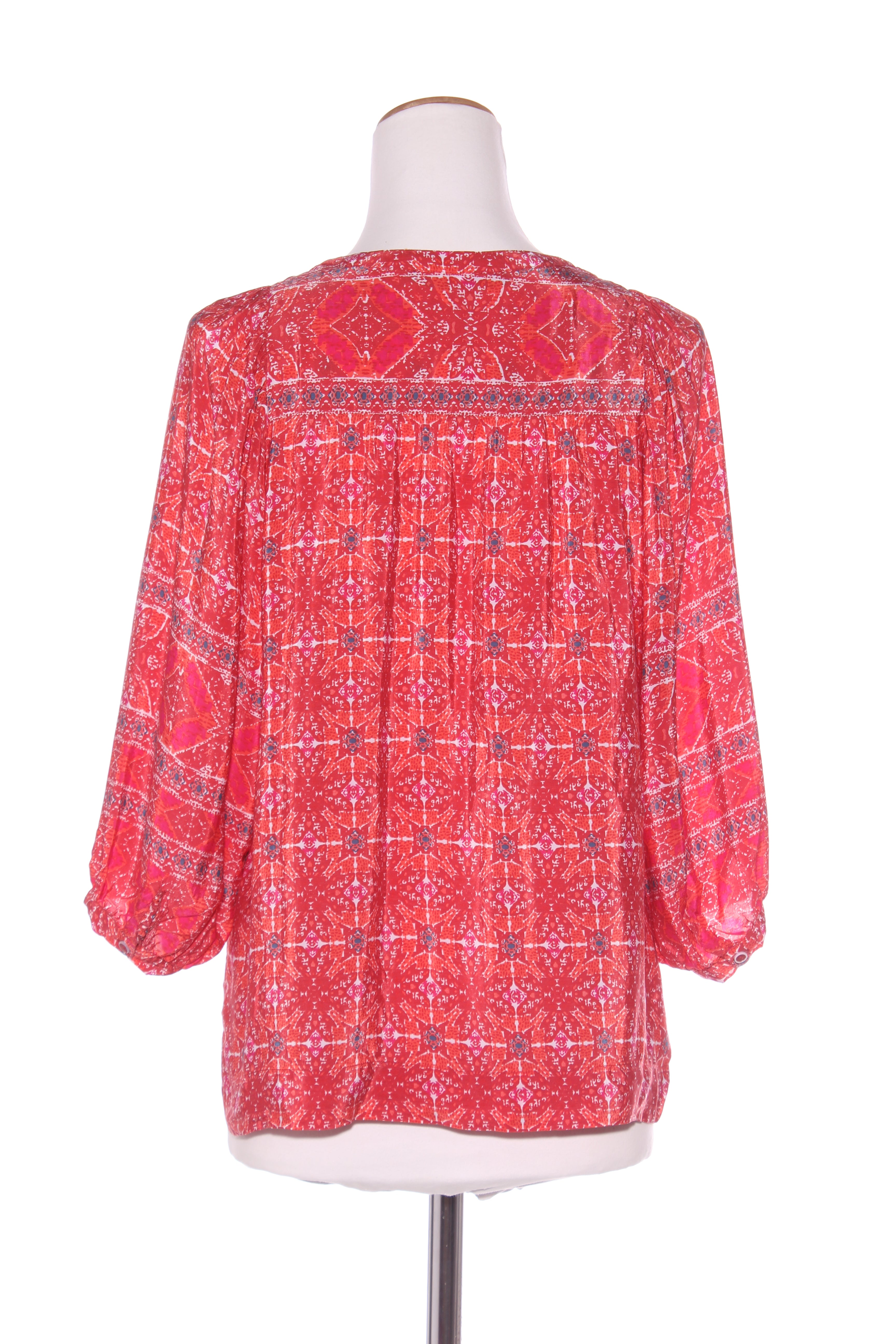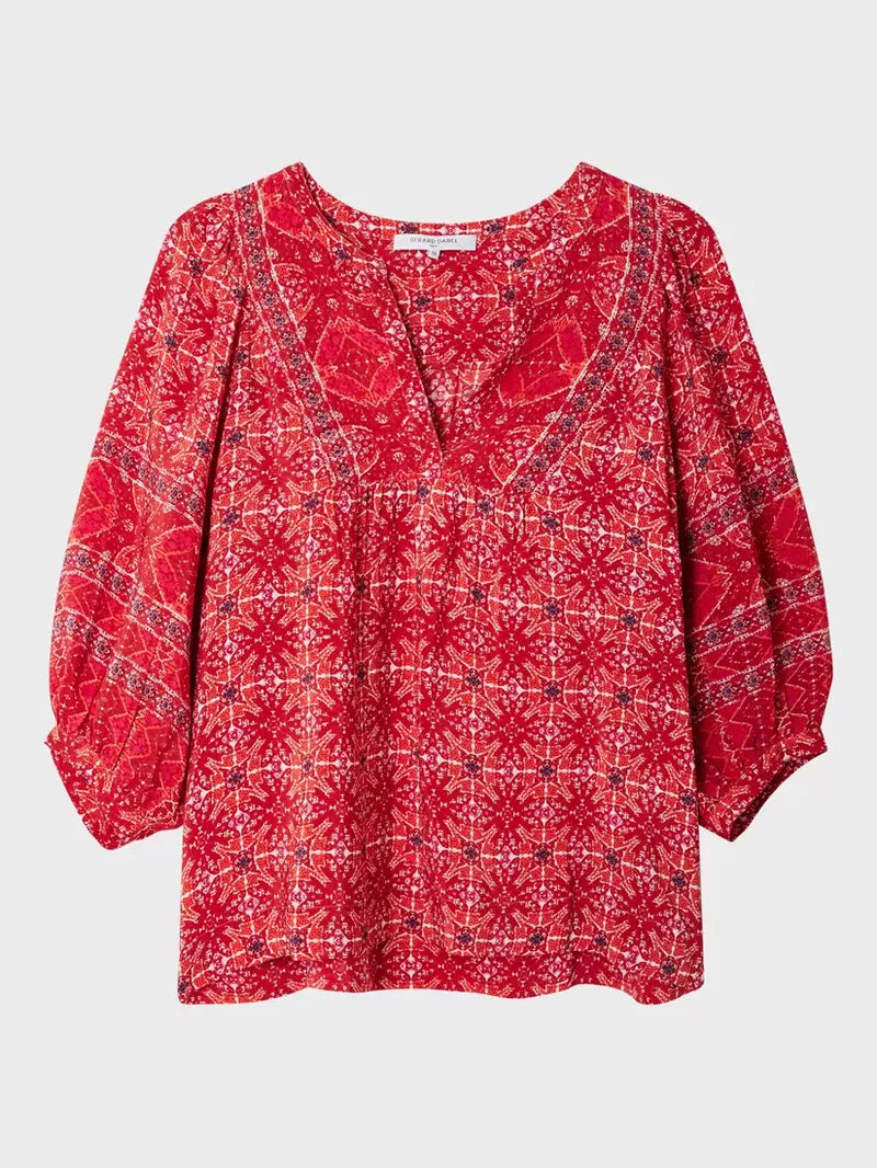 NOTES: Bringing a neat addition to your wardrobe, this blouse from Gerard Darel adds impact with its eye-catching abstract pattern. Classic in cut with a v-neckline and three-quarter length sleeves, it is made from soft viscose and is ideal when partnered with floaty midi skirts for summer days spent strolling around the city.