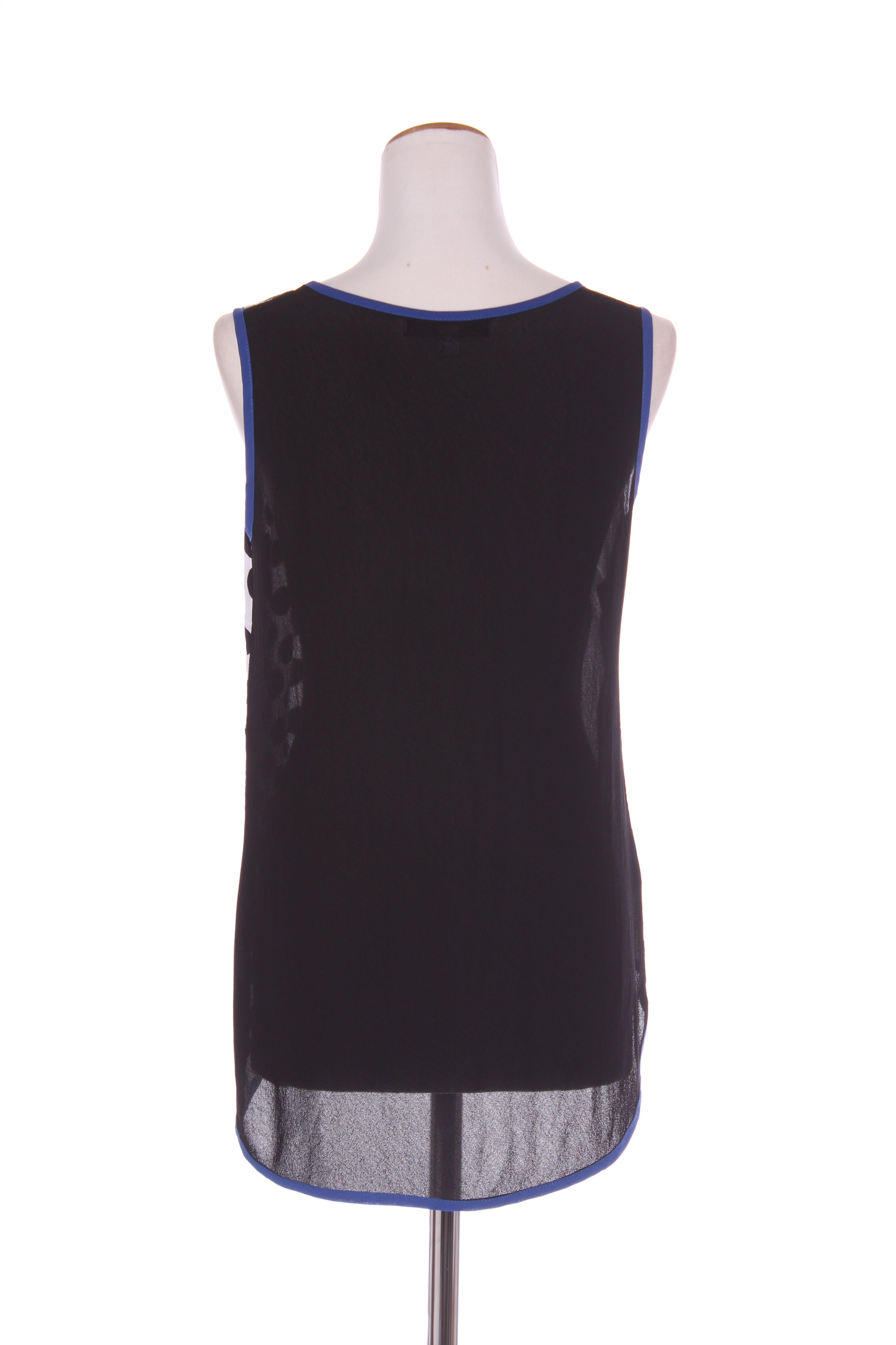 SIZE ON TAG: 12FITS LIKE: N/ACOLOUR: Navy blue, multiFABRIC: PolyesterCONDITION: Excellent prelovedMEASUREMENTS:BUST: 46cms WAIST: 47cms LENGTH: 61cms NOTES: Elasticated neckline with Mint ties that come through eyelets on the...