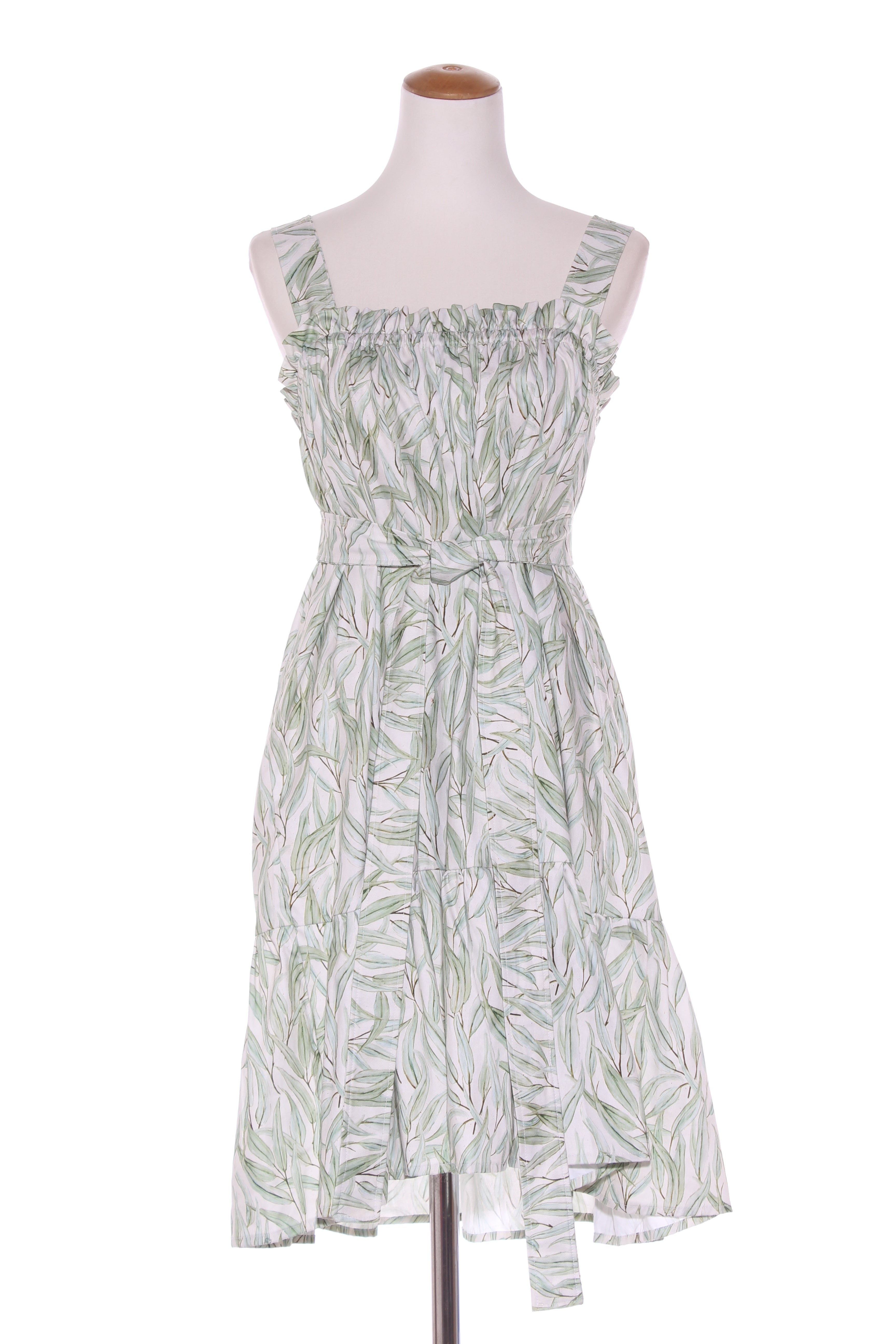 SIZE ON TAG: 14FITS LIKE: N/ACOLOUR: White, greenFABRIC: CottonCONDITION: Like newMEASUREMENTS:BUST: 50cms WAIST: 44cms LENGTH: 132cmsNOTES: "Green leaves - Lasting love" Summer 2024. Spoil yourself...