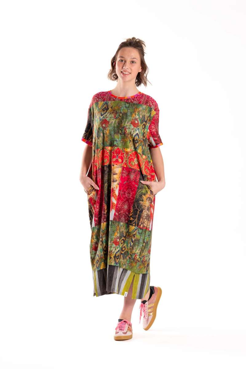 SIZE ON TAG: MFITS LIKE: 12-16COLOUR: MultiFABRIC: 95% cotton, 5% spandexCONDITION: Brand new with tagMEASUREMENTS:BUST: 64cms WAIST: 74cms LENGTH: 116-119cmsNOTES: Deeanne Hobbs Designed in Nelson, NZ....