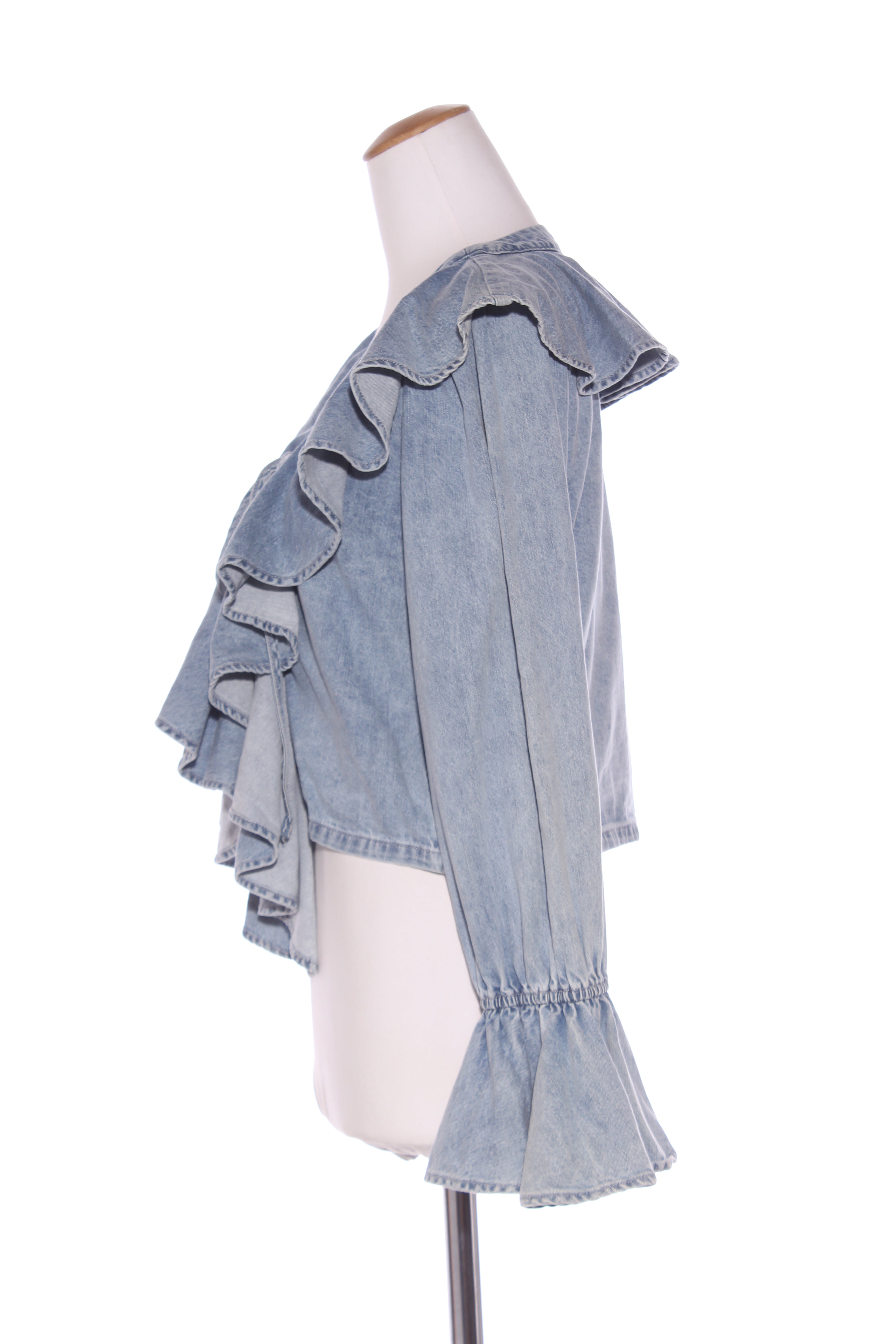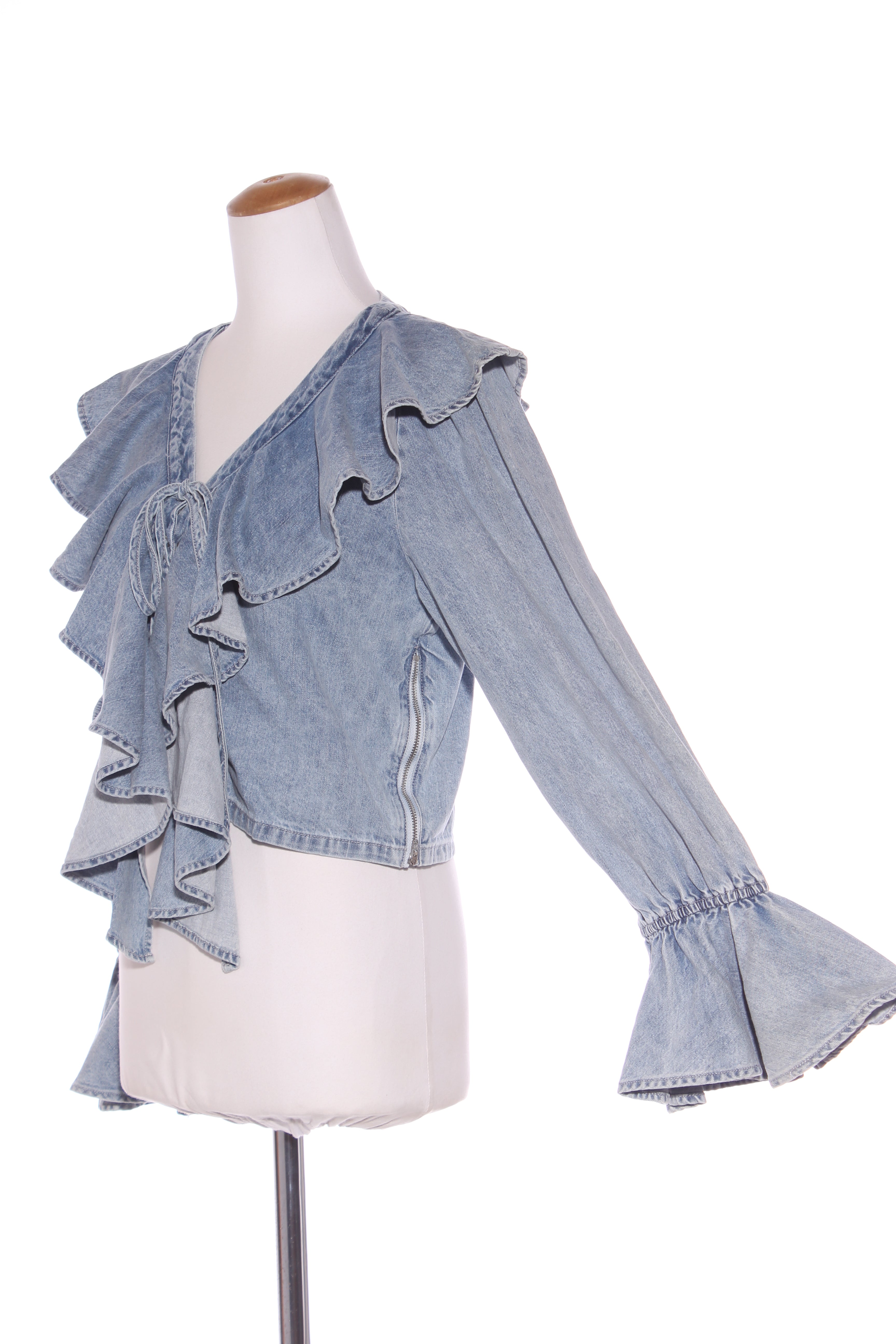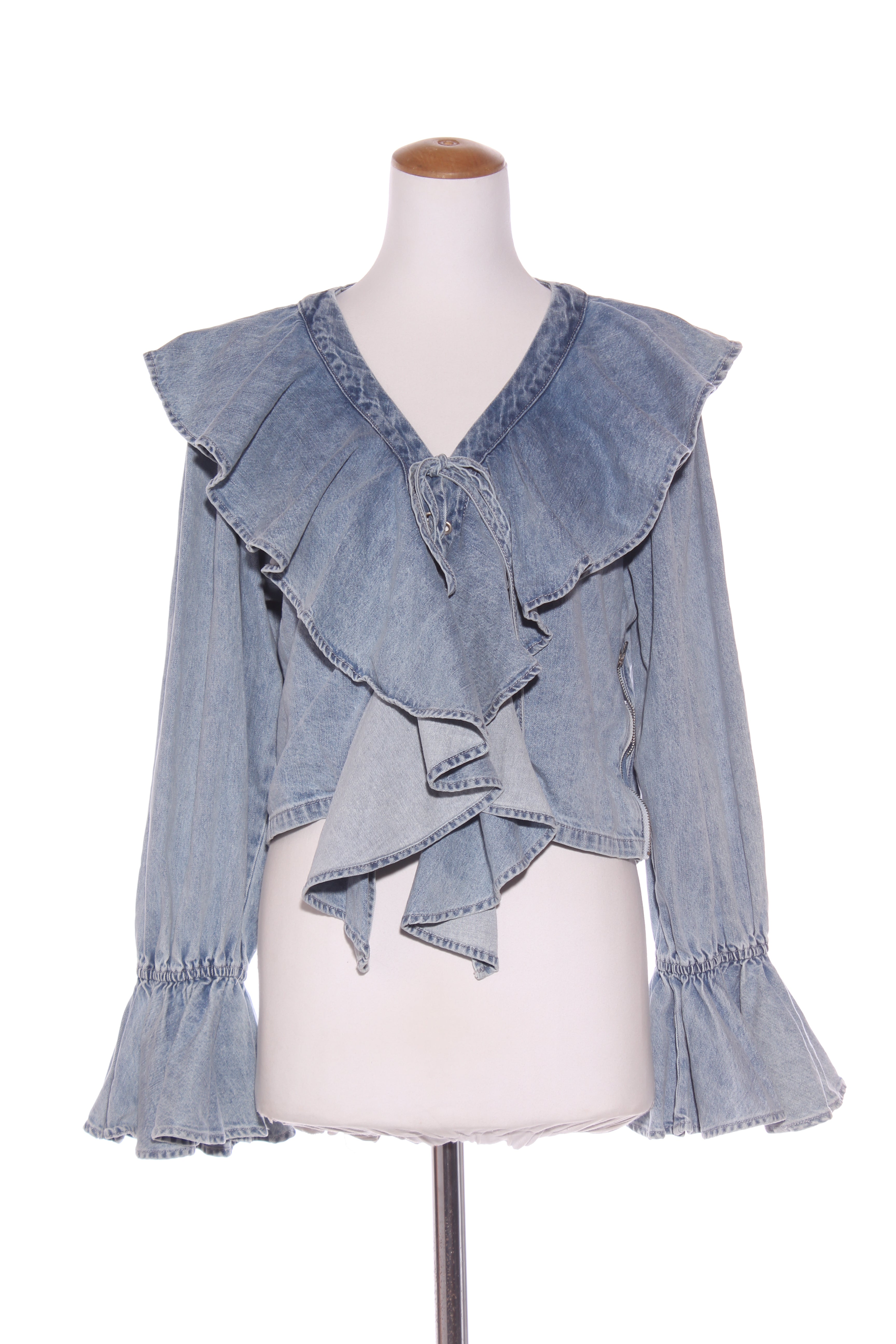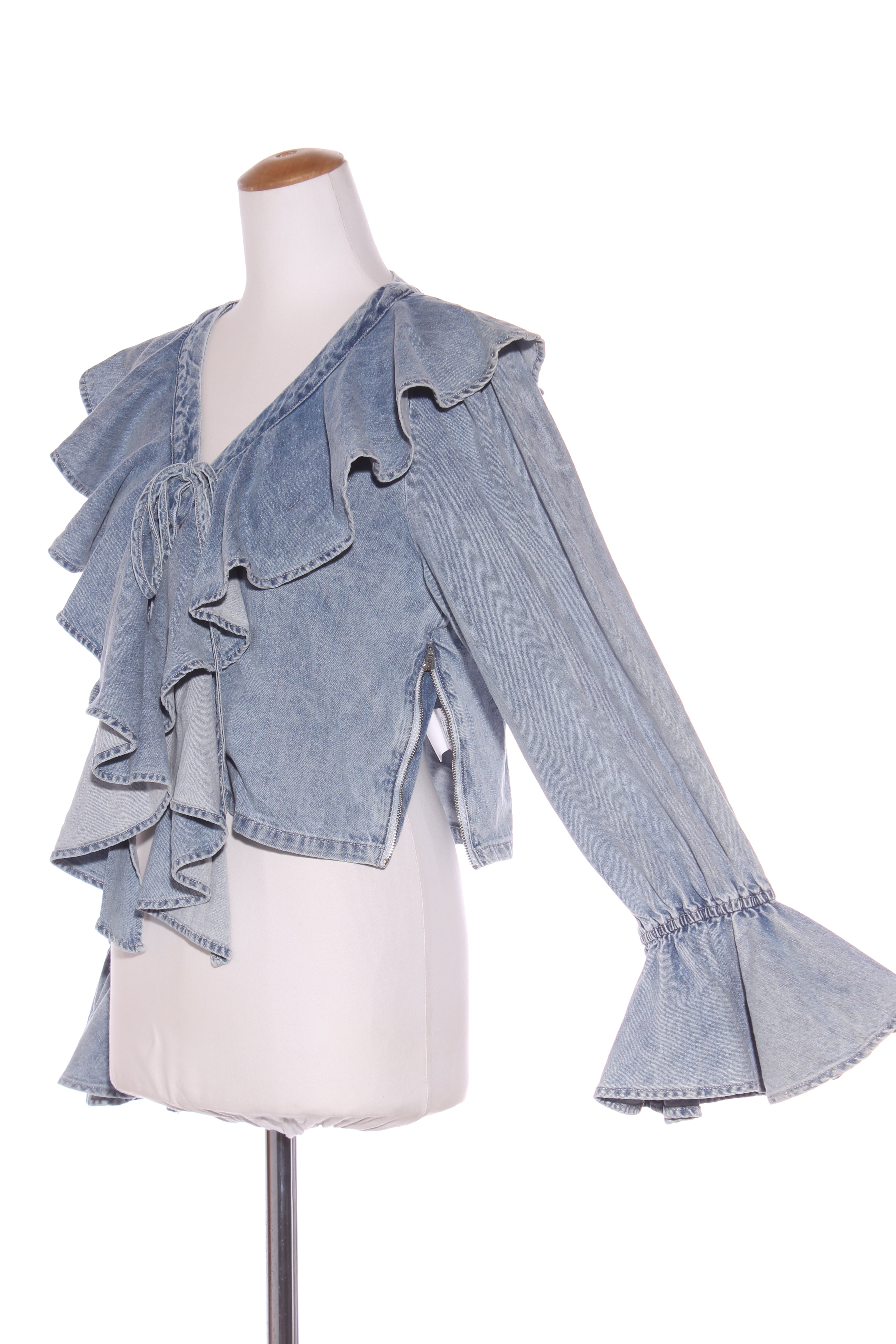 SIZE ON TAG: 10FITS LIKE: 10-12COLOUR: BlueFABRIC: CottonCONDITION: Excellent prelovedMEASUREMENTS:BUST: 53cms WAIST: 51cms LENGTH: 46cms NOTES: "Denim commandments - Ruffle + ready" Spring 2022. Lace up front...