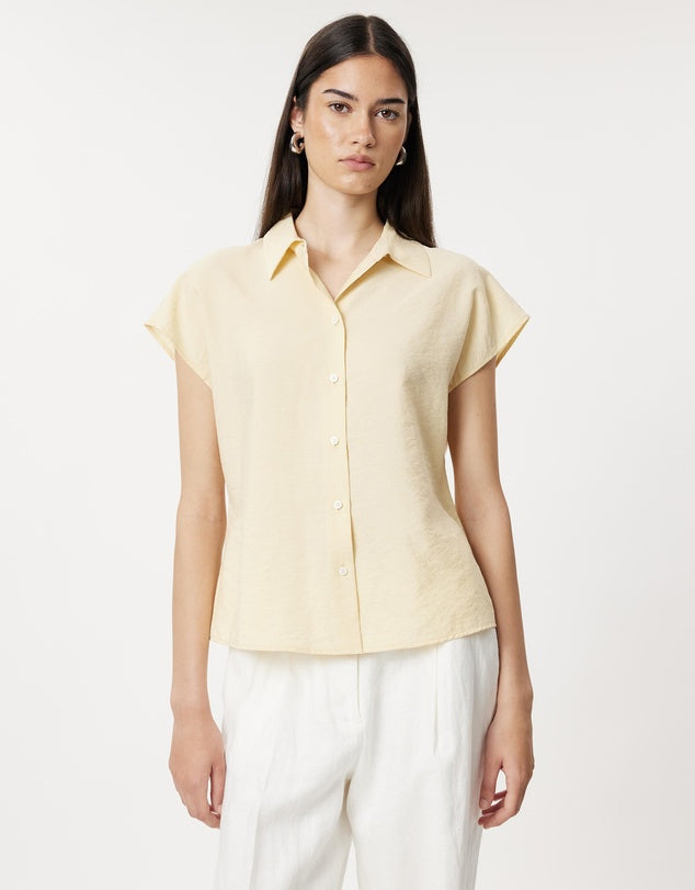 SIZE ON TAG: 14FITS LIKE: N/ACOLOUR: YellowFABRIC: 80% silk, 20% nylonCONDITION: Excellent prelovedMEASUREMENTS:BUST: 59cms WAIST: 54cms LENGTH: 63cms NOTES: - Silk blend fabric- Collared neckline- Button-up front-...