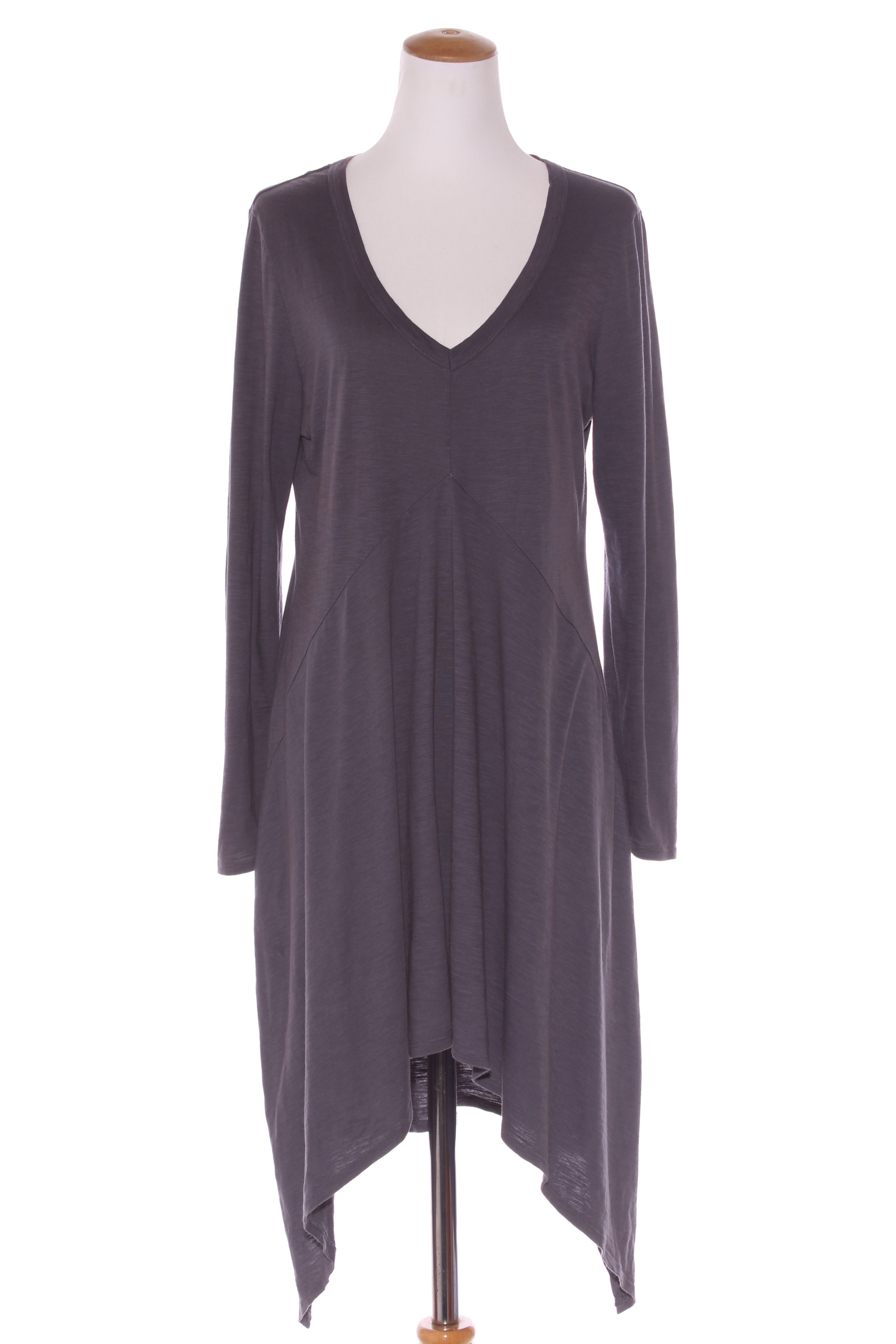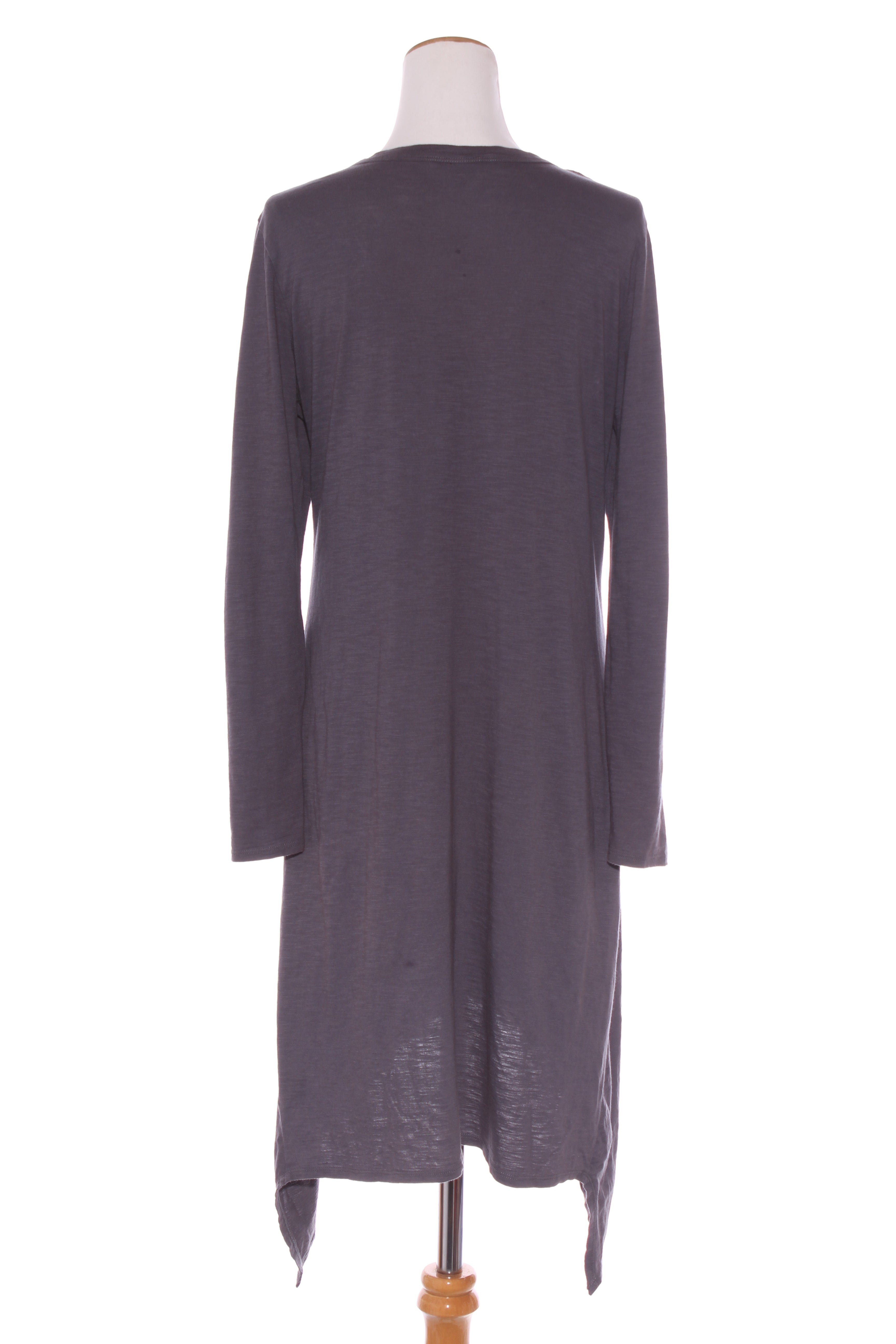 SIZE ON TAG: LFITS LIKE: 14COLOUR: GreyFABRIC: CottonCONDITION: Excellent prelovedMEASUREMENTS:BUST: 51cms WAIST: 47cms LENGTH: 87-118cms NOTES: Pull over style. Fabric has stretch.
