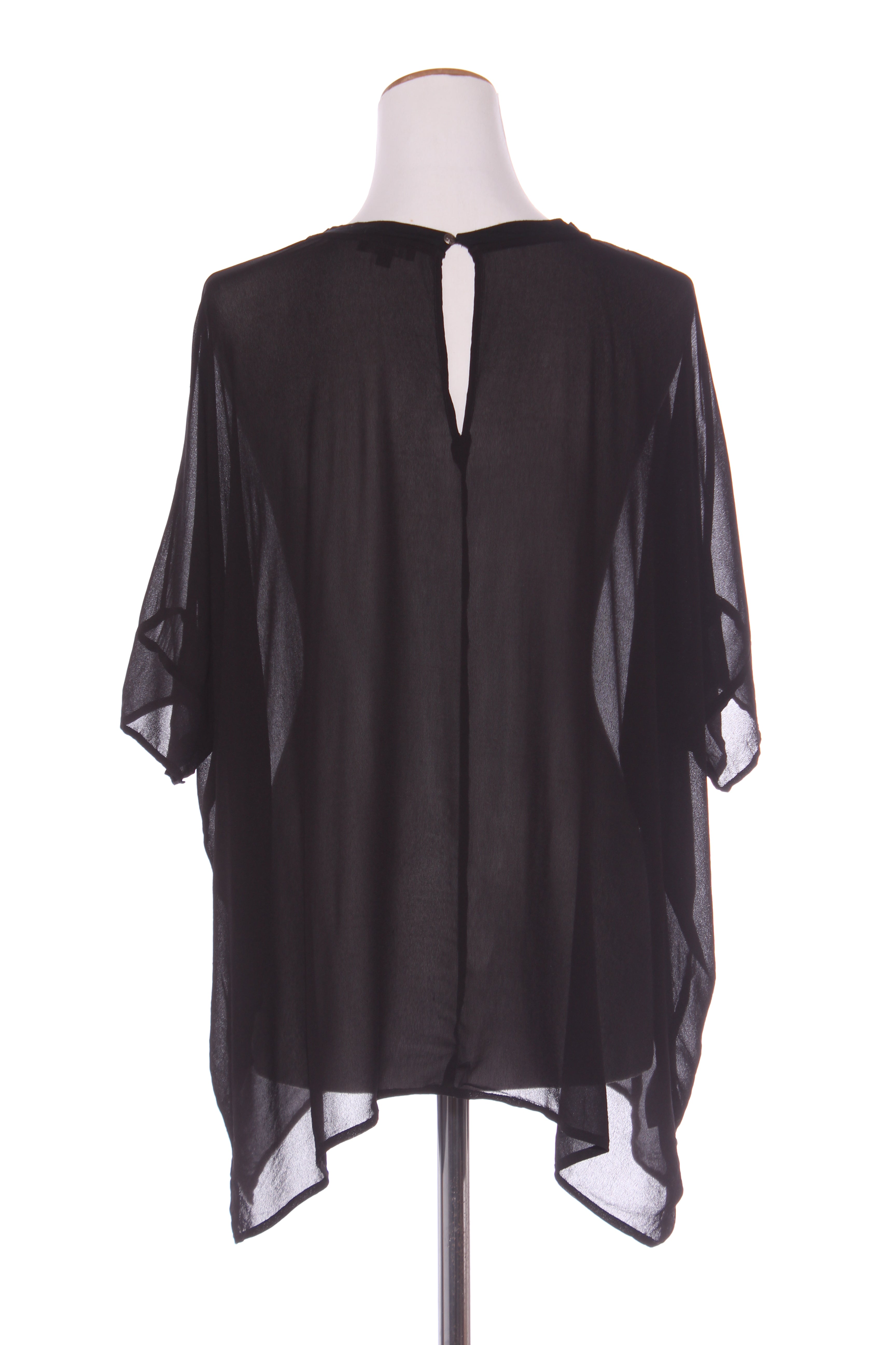 SIZE ON TAG: XLFITS LIKE: 16COLOUR: BlackFABRIC: 95% viscose, 5% elastaneCONDITION: Excellent prelovedMEASUREMENTS:BUST: 73cms WAIST: 68cms LENGTH: 75-79cms NOTES: Fabric has stretch.