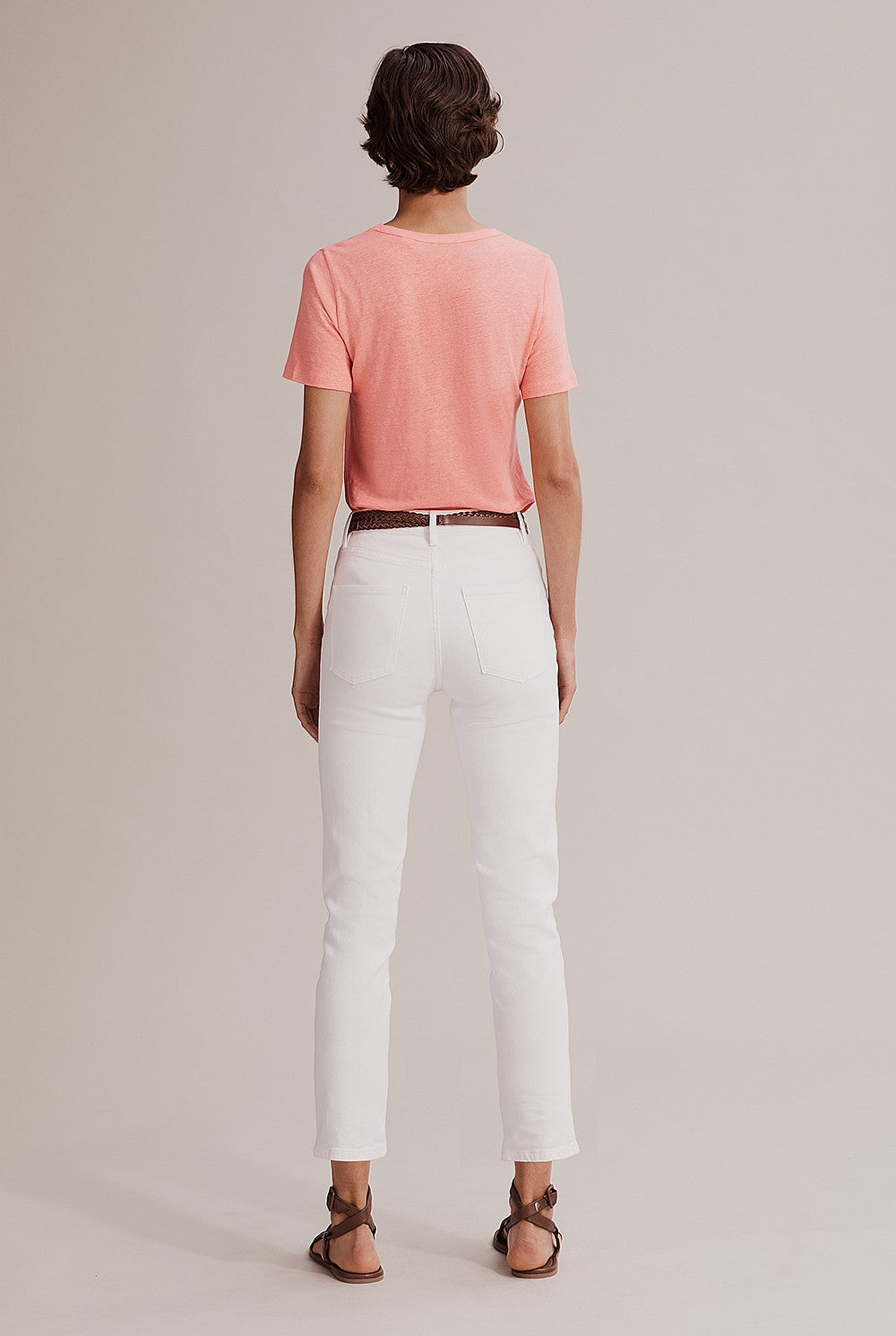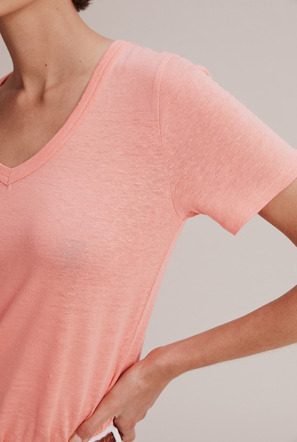 SIZE ON TAG: MFITS LIKE: 12COLOUR: PeachFABRIC: 90% linen, 10% nylonCONDITION: Excellent preloved - hardly wornMEASUREMENTS:BUST: 48cms WAIST: 46cms LENGTH: 62cms NOTES: A wardrobe essential. This tee...
