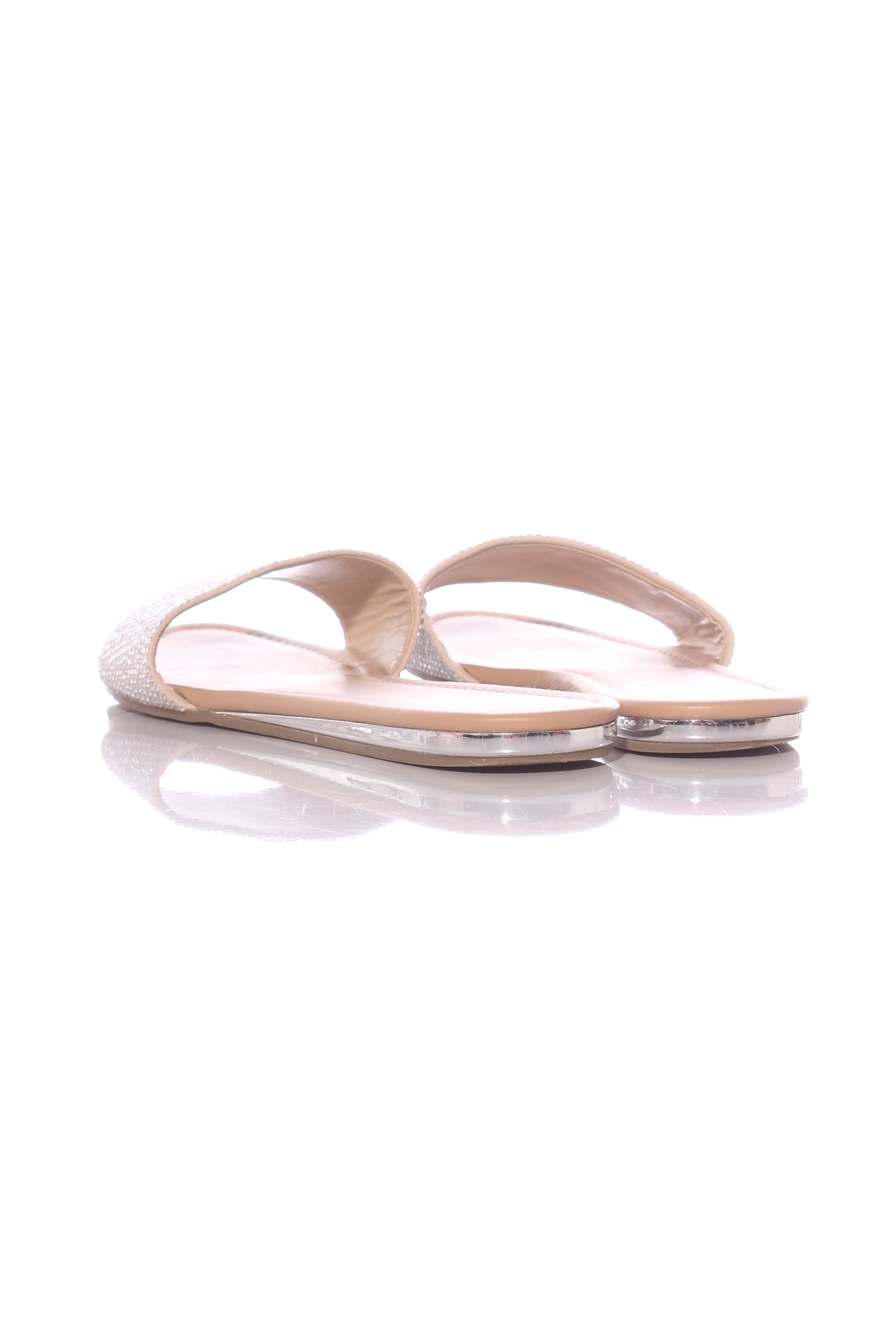 SIZE ON SHOE: 39FITS LIKE: 8COLOUR: Silver, beigeFABRIC: Embellished/textile upper, PU lining, rubber soleCONDITION: Very good prelovedMEASUREMENTS:INNER SOLE: 25.3cms WIDTH: 9cms HEEL: 1.5cms NOTES: Slip on...