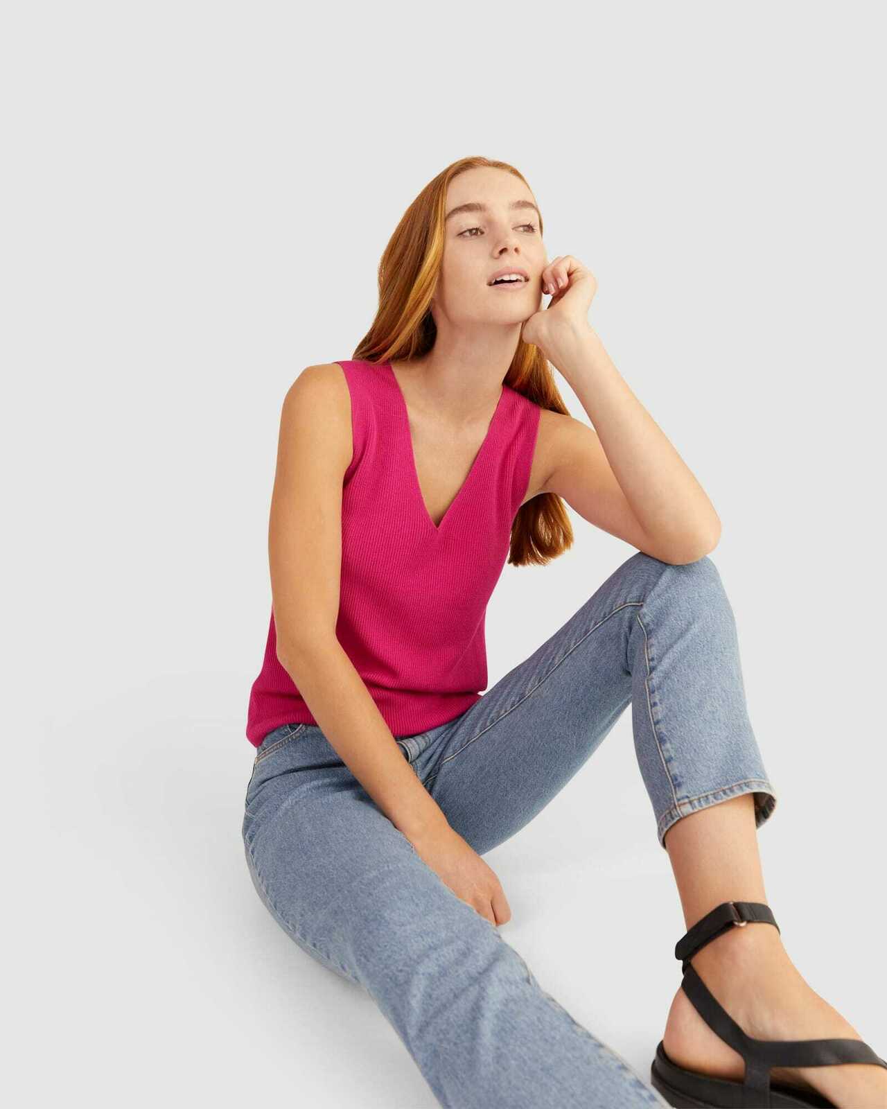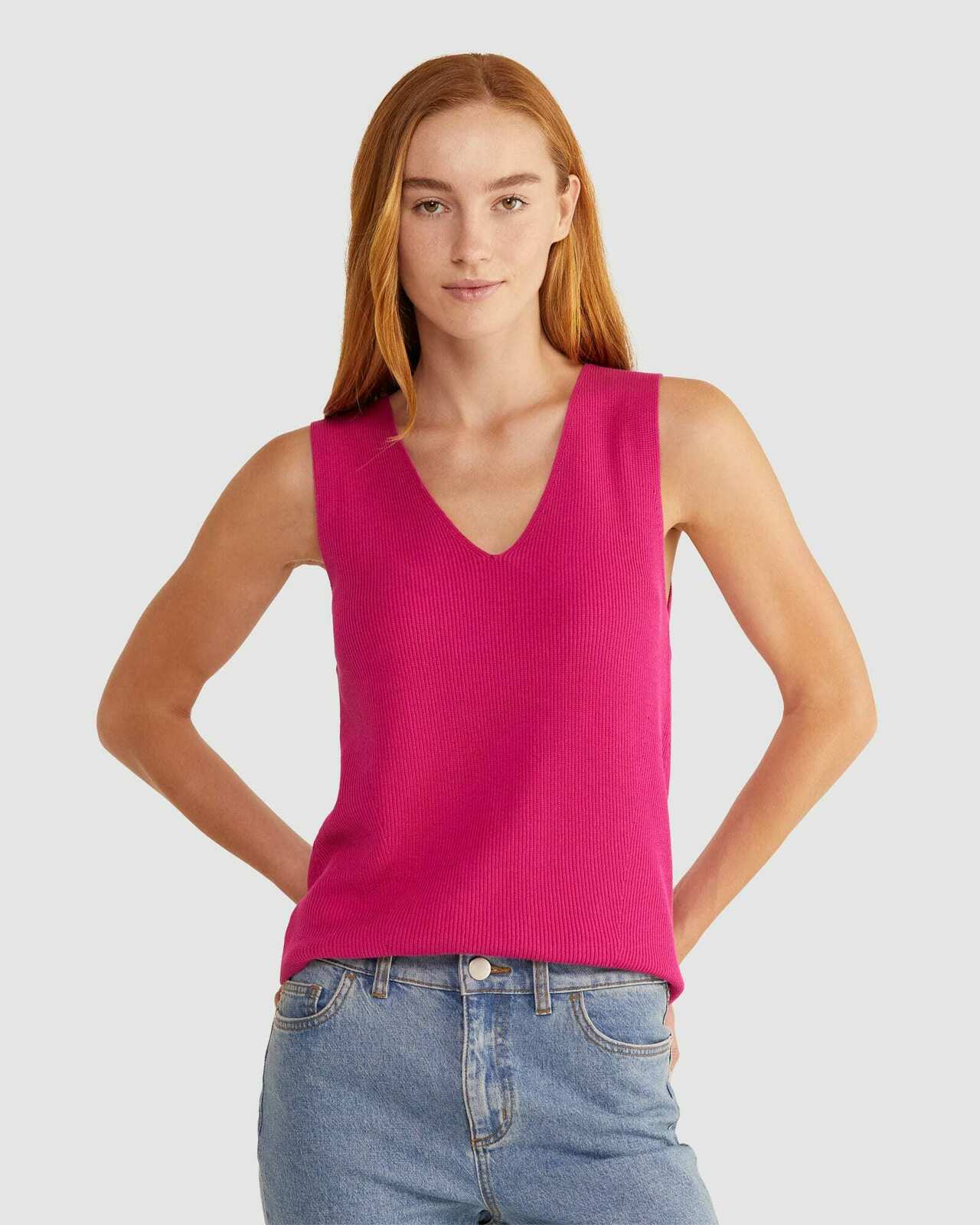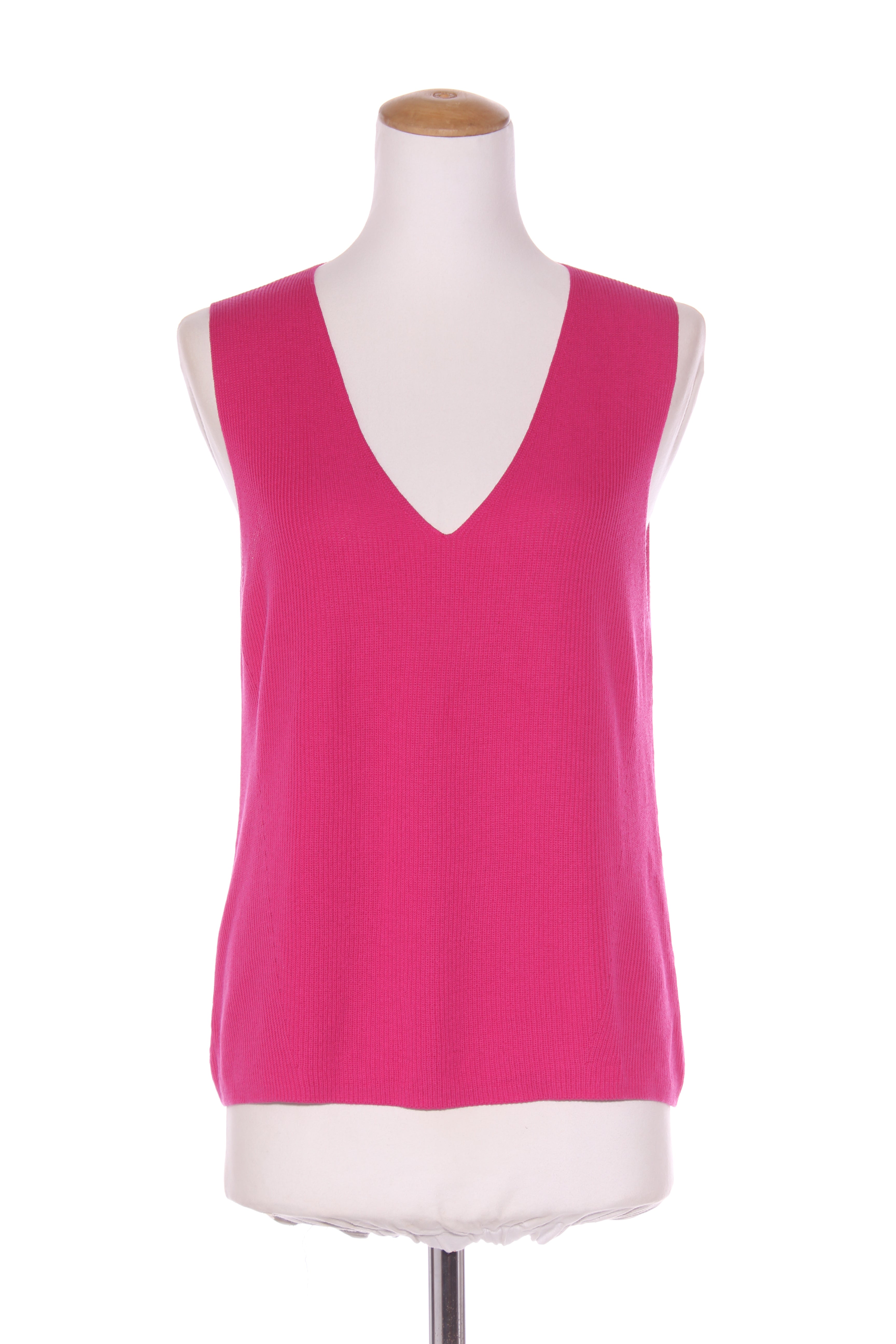 SIZE ON TAG: MFITS LIKE: 12COLOUR: PinkFABRIC: CottonCONDITION: Excellent prelovedMEASUREMENTS:BUST: 48cms WAIST: 50cms LENGTH: 60cmsNOTES: - Pure cotton ribbed knit; natural stretch - V-neckline - Sleeveless