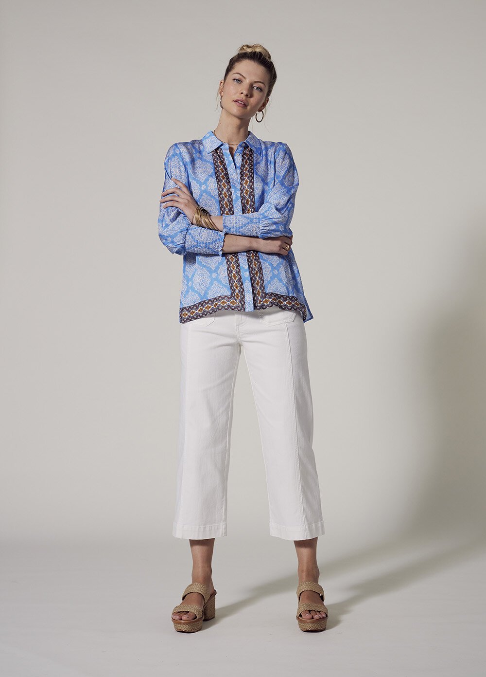SIZE ON TAG: 16FITS LIKE: N/ACOLOUR: Blue, multi, whiteFABRIC: ViscoseCONDITION: Like newMEASUREMENTS:BUST: 65cms WAIST: 66cms LENGTH: 70cms NOTES: Button through collared shirt featuring blouson sleeves with...