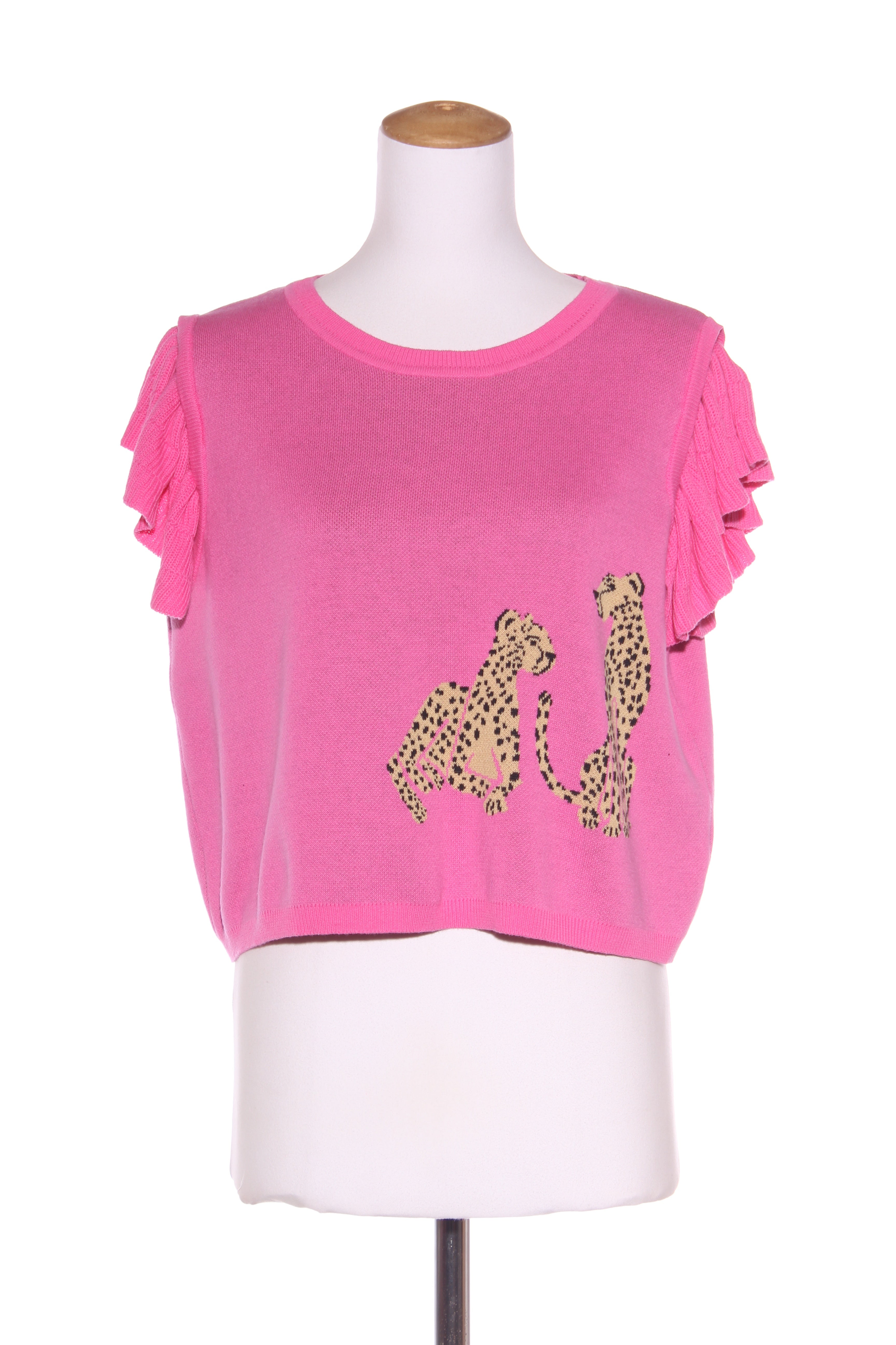 SIZE ON TAG: LFITS LIKE: 14COLOUR: Pink, beige, blackFABRIC: CottonCONDITION: Excellent prelovedMEASUREMENTS:BUST: 55cms WAIST: 55cms LENGTH: 50cmsNOTES: Fabric has stretch.