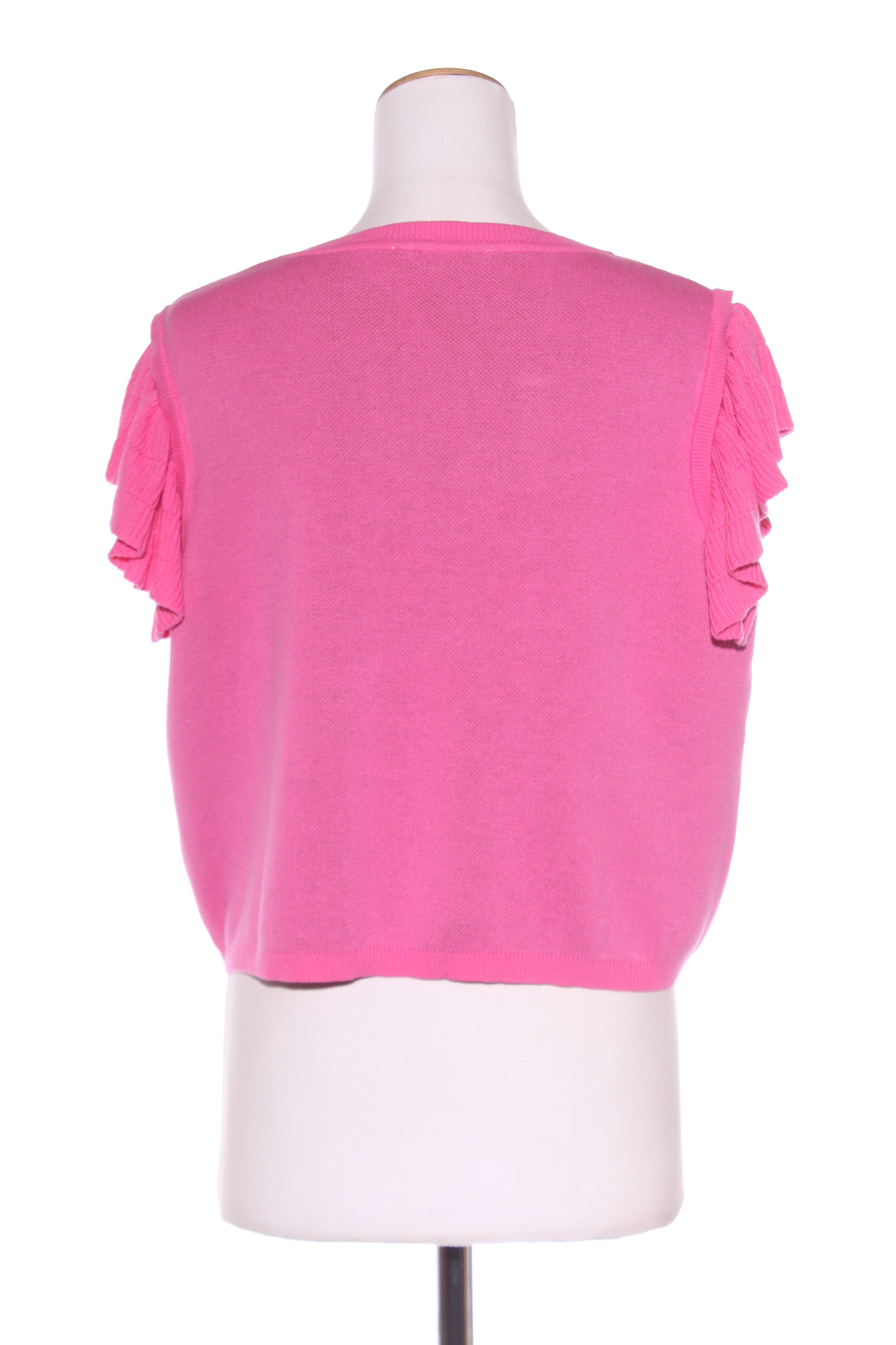 SIZE ON TAG: 12FITS LIKE: N/ACOLOUR: Pinky purpleFABRIC: 75% cotton, 25% polyesterCONDITION: Excellent prelovedBUST: 58cms WAIST: 58cms LENGTH: c68ms NOTES: Button up front. Elasticated sleeve ends. ...