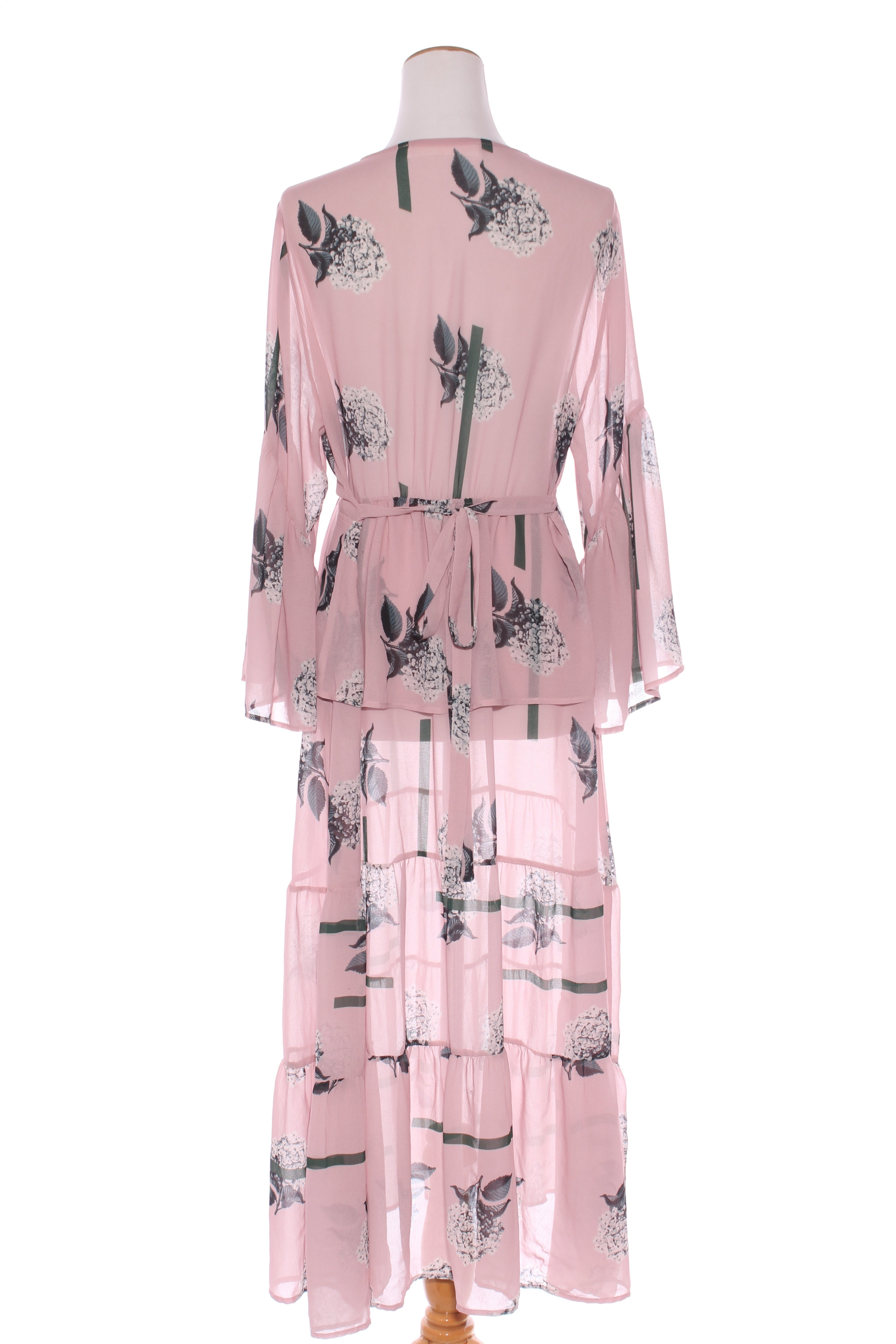SIZE ON TAG: LFITS LIKE: 14COLOUR: Pink, pearly whiteFABRIC: PolyesterCONDITION: Brand new with tagMEASUREMENTS:BUST: 77cms WAIST: Free LENGTH: 93cms NOTES: Open front. Comes with matching belt. ...