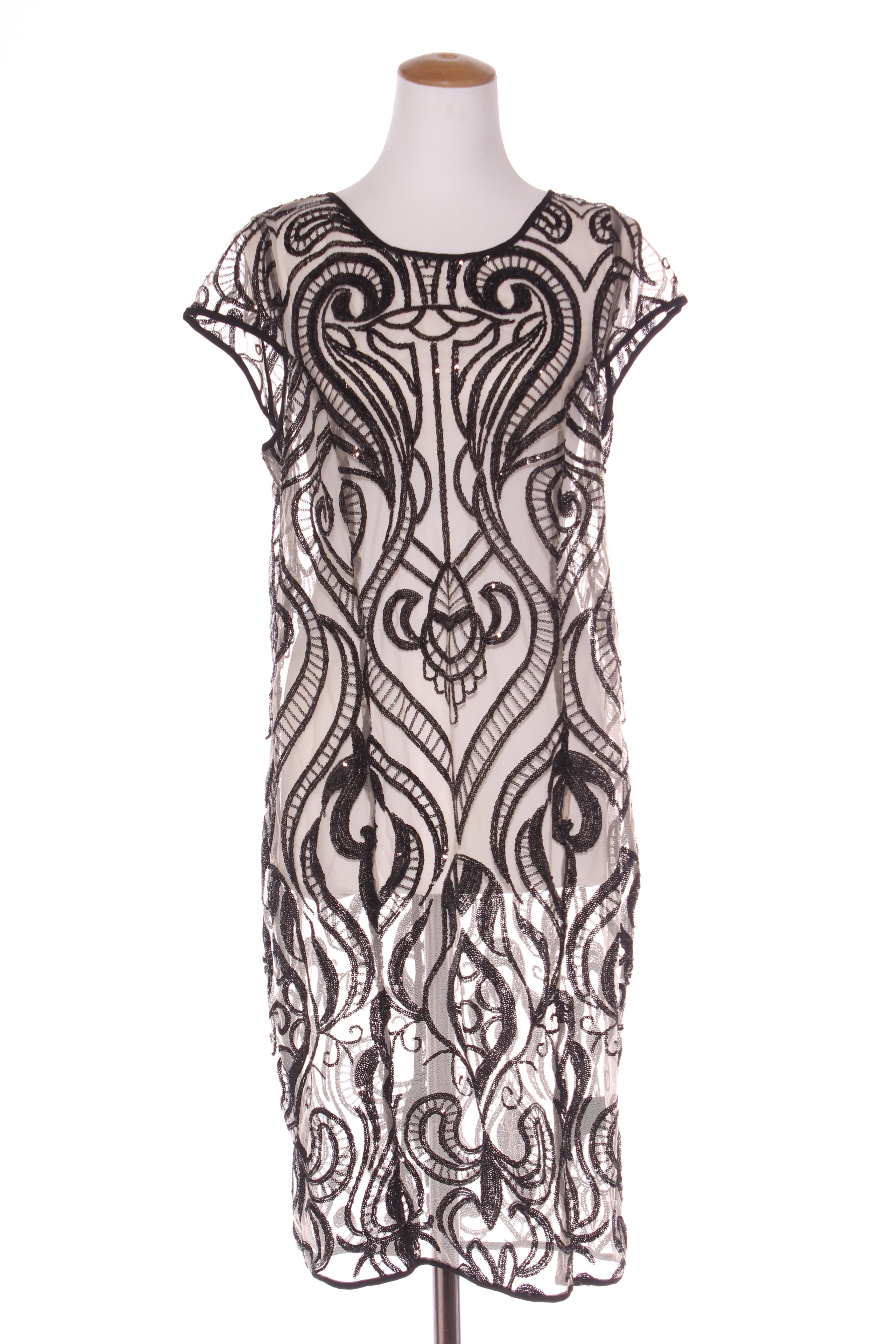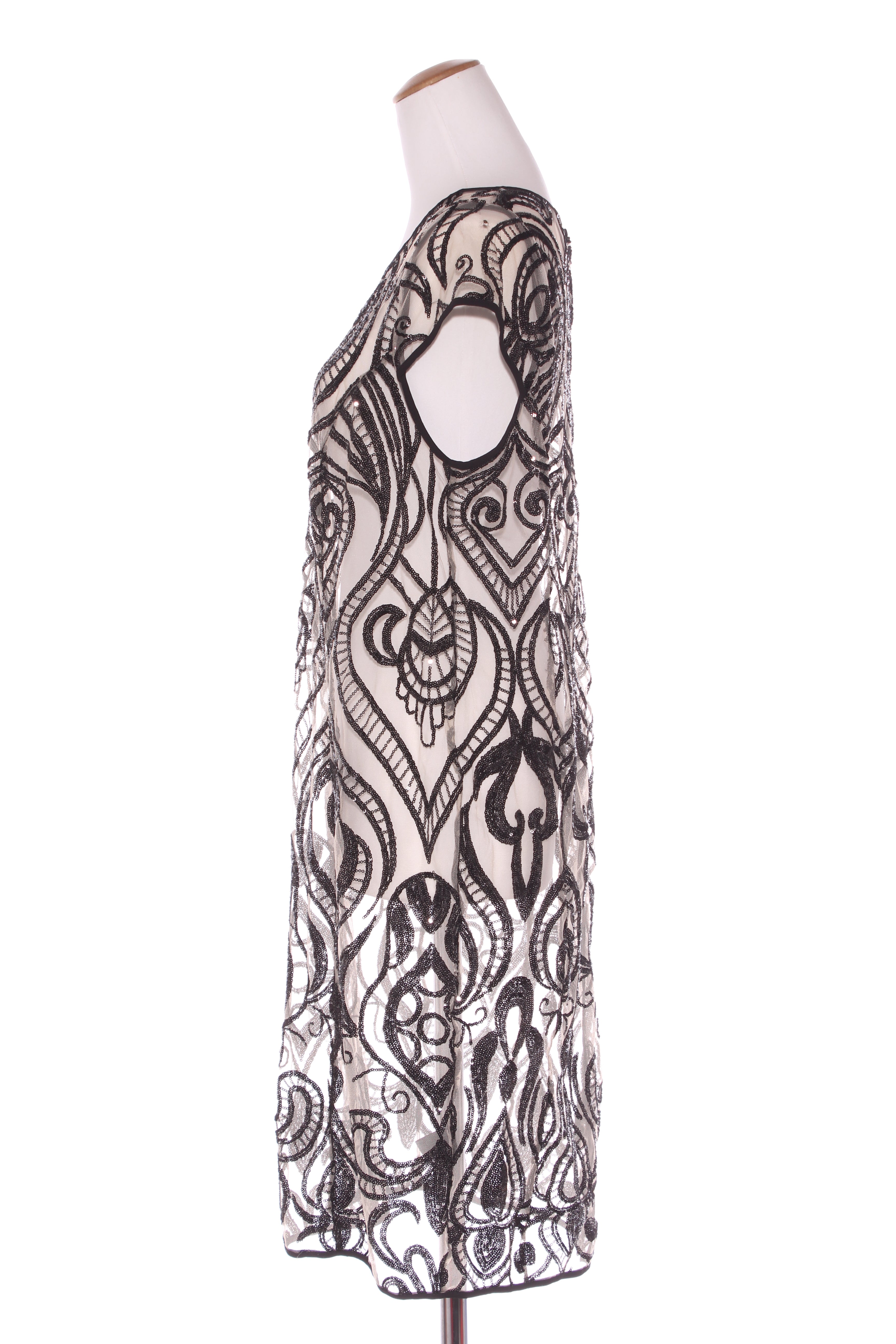 SIZE ON TAG: XLFITS LIKE: 16COLOUR: Black, off whiteFABRIC: Polyester sequin embellished meshCONDITION: Excellent prelovedMEASUREMENTS:BUST: 54cms WAIST: 51cms LENGTH: 105cms NOTES: "Midnight express - Soul mood"...