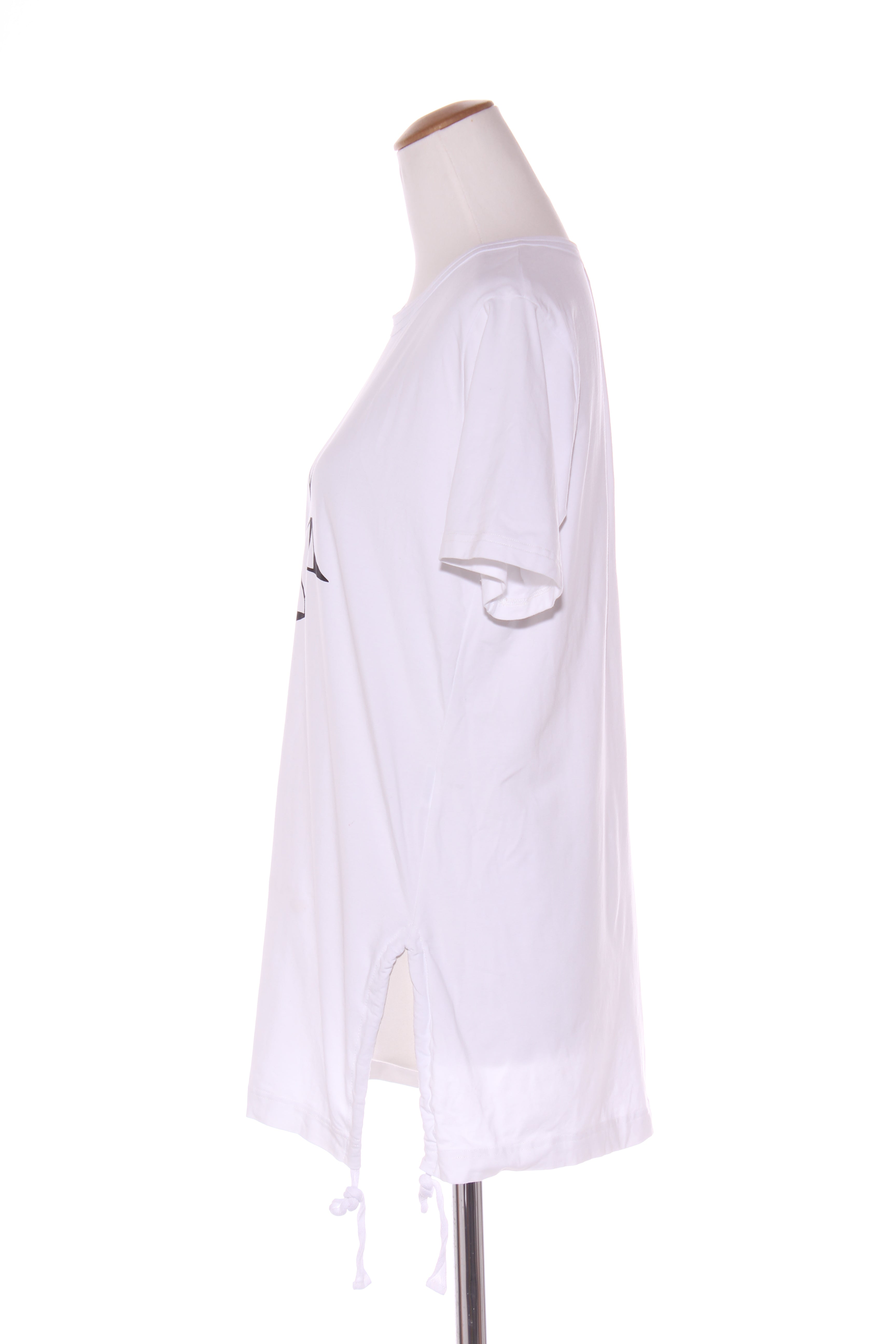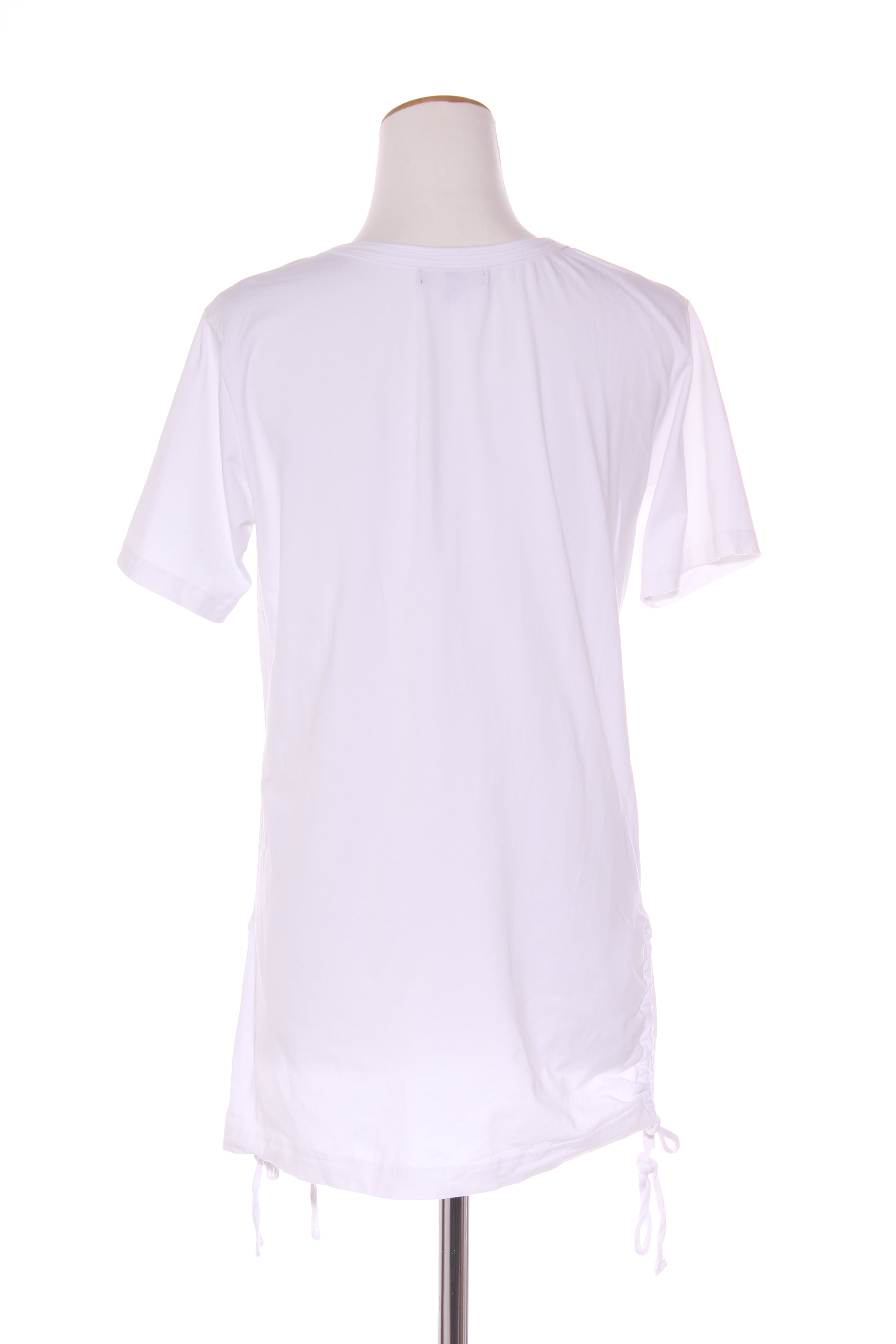 SIZE ON TAG: MFITS LIKE: 12COLOUR: WhiteFABRIC: 65% polyester, 30% viscose, 5% elastaneCONDITION: Excellent prelovedMEASUREMENTS:BUST: 60cms WAIST: 56cms LENGTH: 68-89cms NOTES: Crew neck Relaxed fit Ribbed...