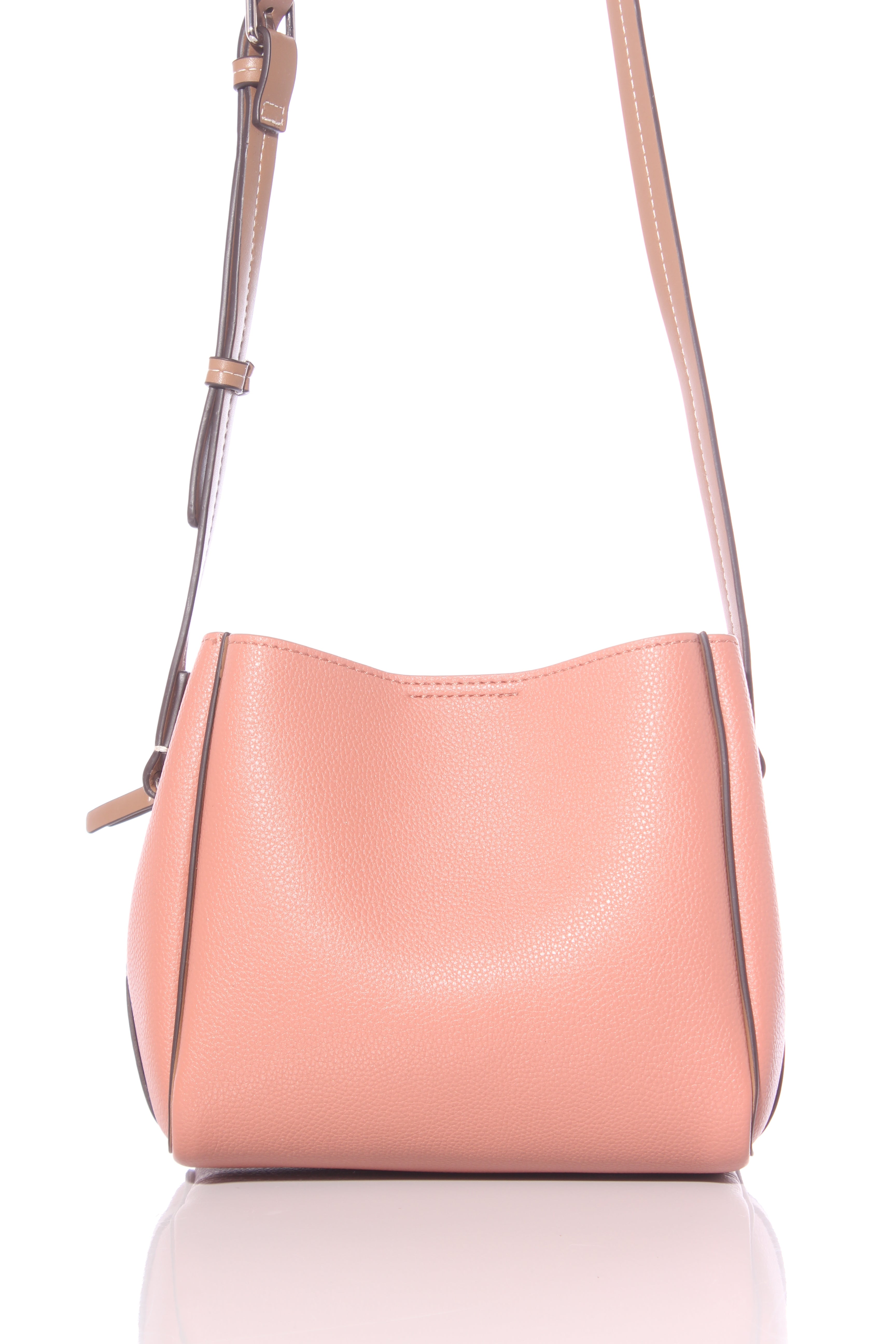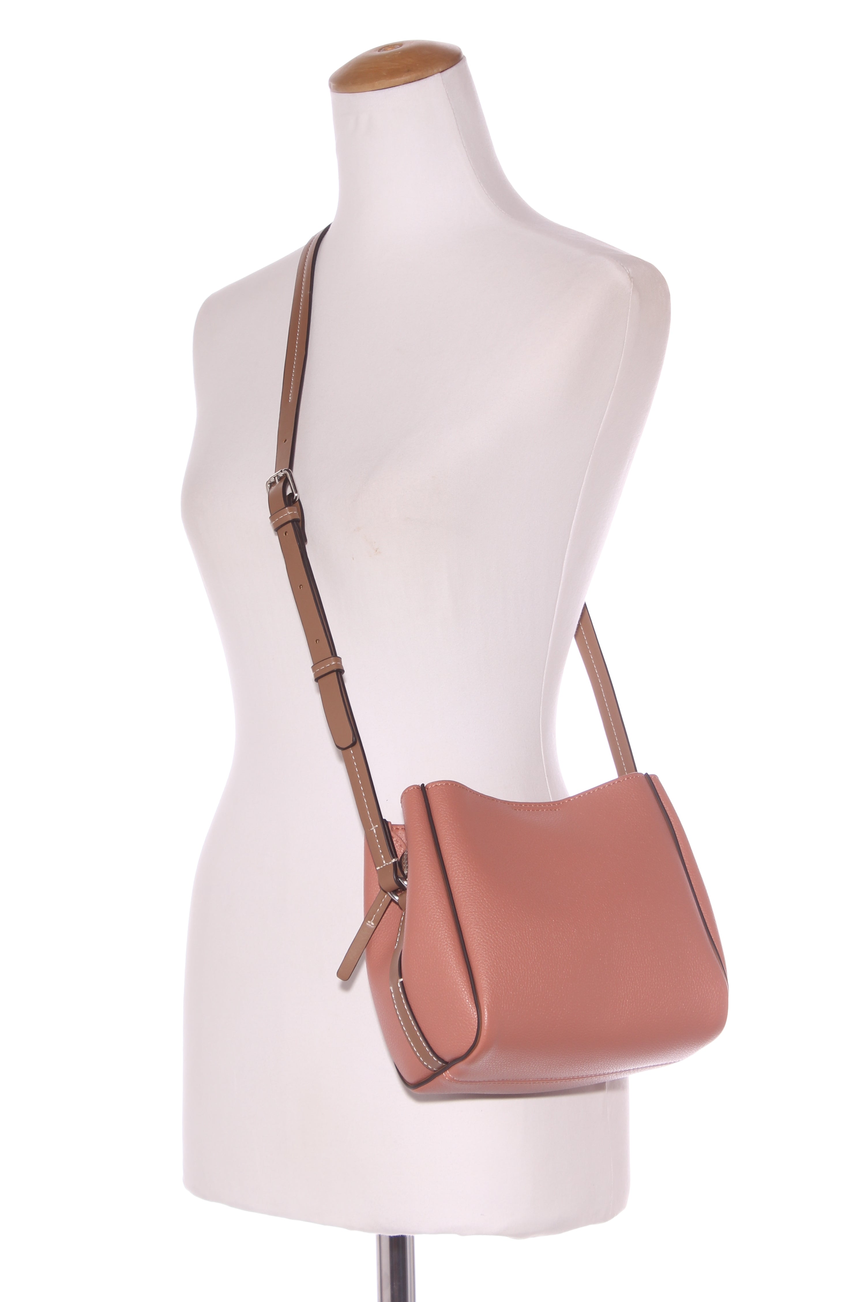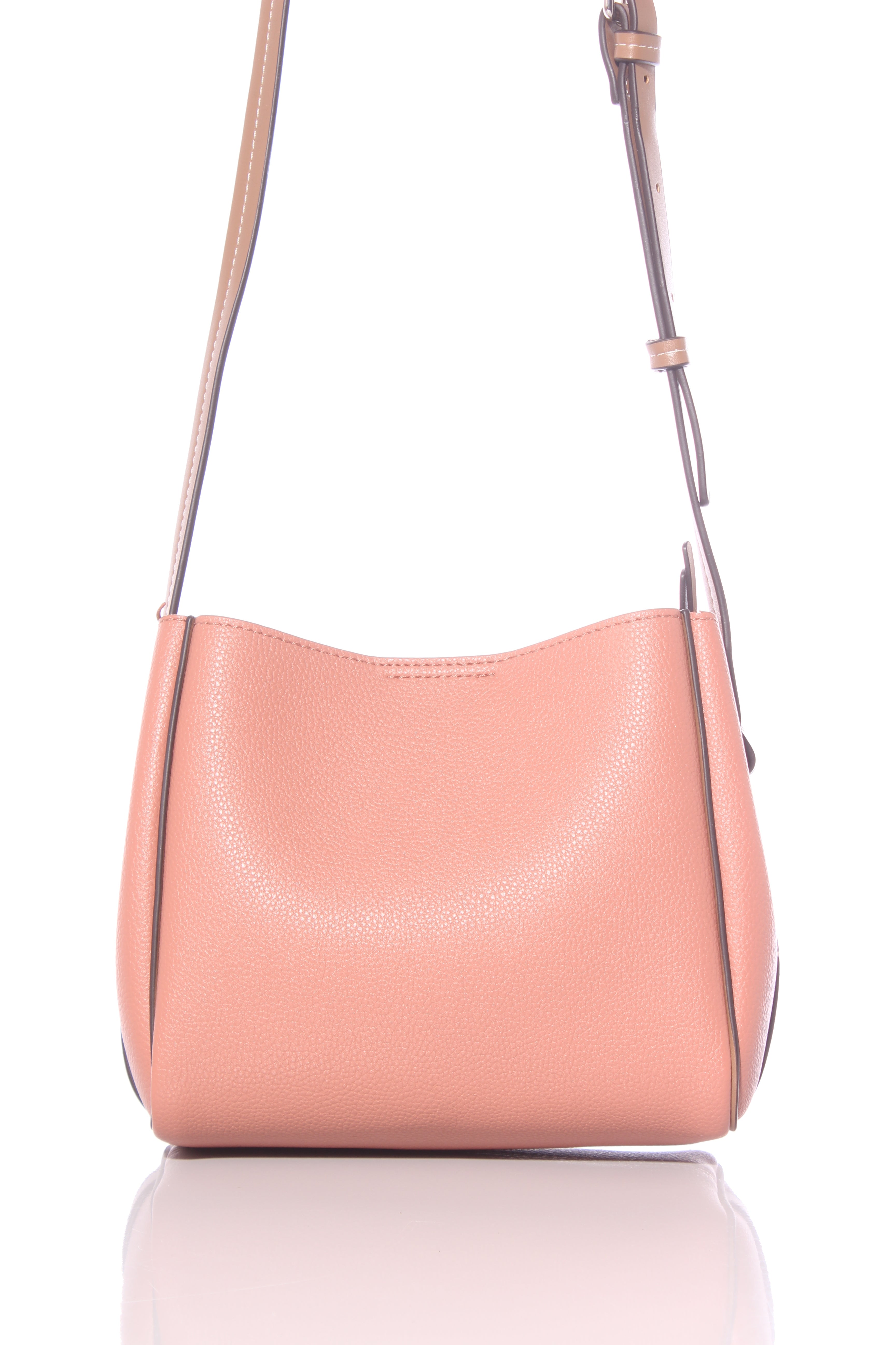 COLOUR: Dark blush pinkFABRIC: Polyurethane, Lining - 60% polyester, 40% polyurethaneCONDITION: Excellent prelovedMEASUREMENTS:HEIGHT: 17cms WIDTH: 19cms DEPTH: 11cms STRAP: 105-120cms NOTES: Magnetic snap button...