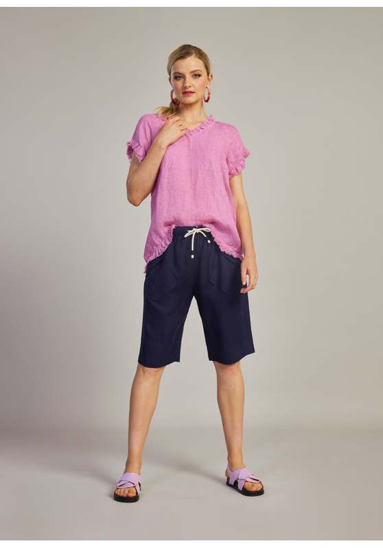 SIZE ON TAG: 10FITS LIKE: N/ACOLOUR: Navy blueFABRIC: LinenCONDITION: Excellent prelovedMEASUREMENTS:WAIST: 31cms HIPS: 62cms RISE: 31cms LENGTH: 28cms(From crotch to end of short)NOTES: Linen...