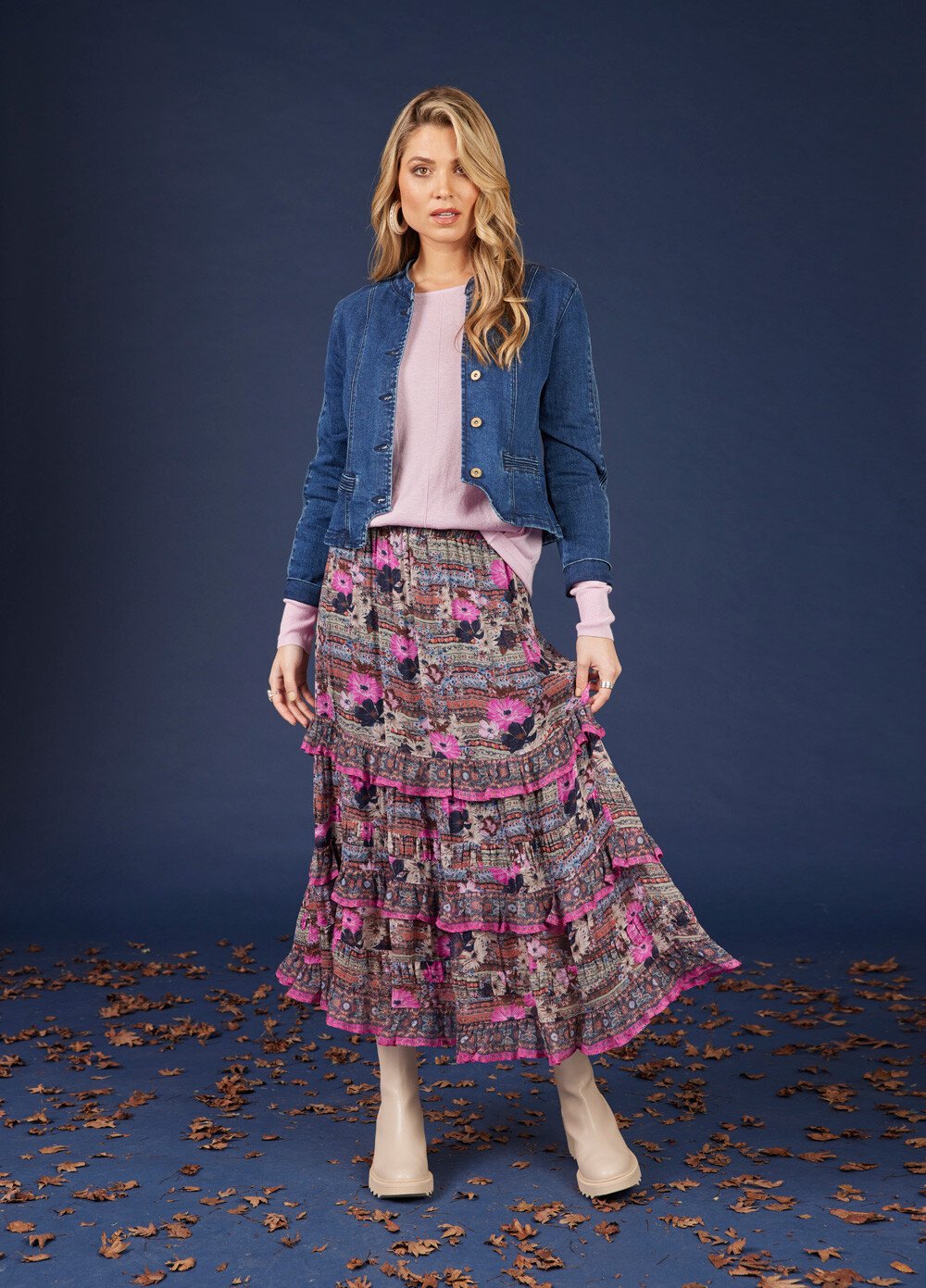 SIZE ON TAG: 8FITS LIKE: 8COLOUR: Pink, multiFABRIC: Viscose, Lining - rayonCONDITION: Excellent prelovedMEASUREMENTS:WAIST: 34cms HIPS: 58cms LENGTH: 88cmsNOTES: Sheer yoryu skirt with elasticated waistband and...