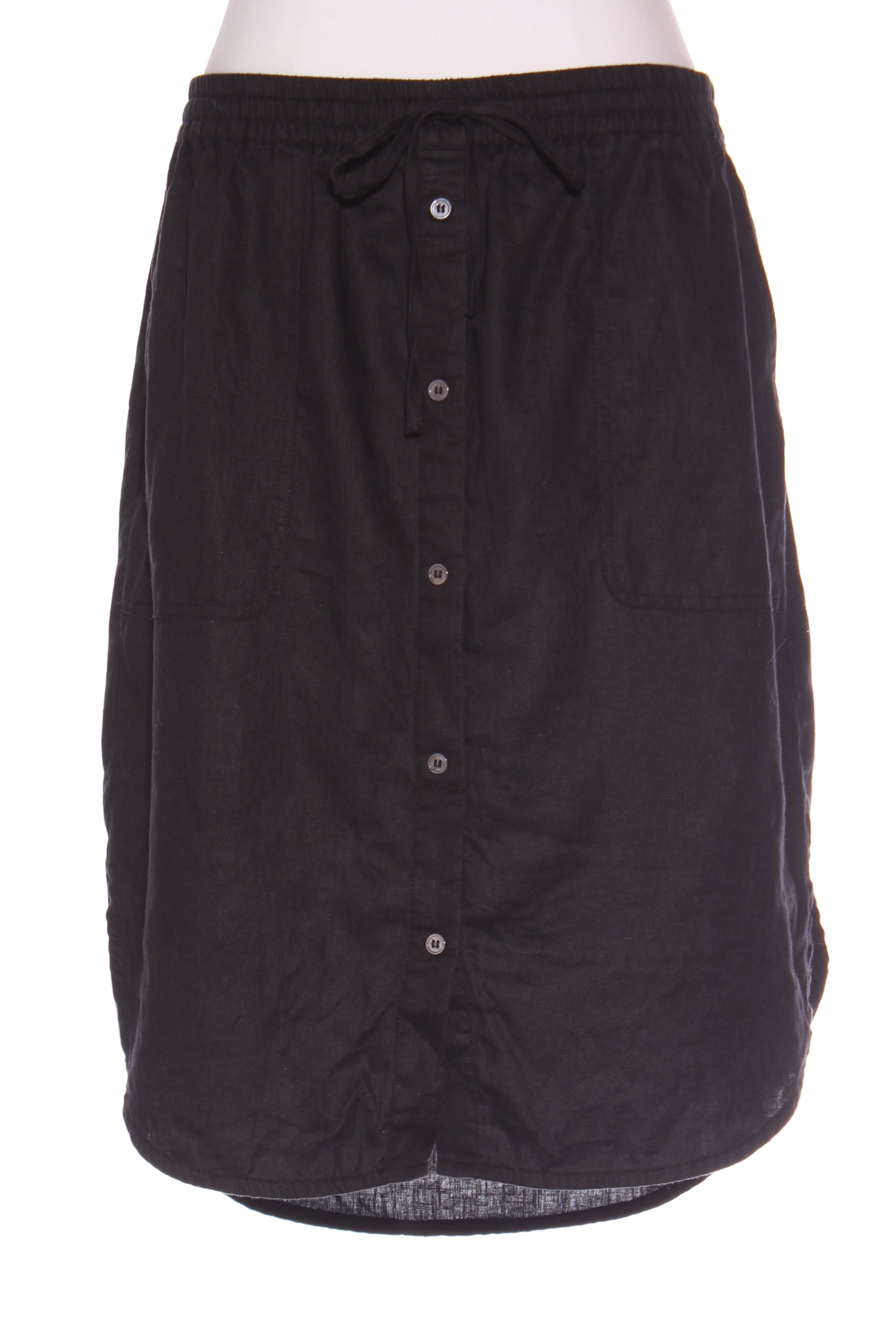 SIZE ON TAG: Tag removedFITS LIKE: 12COLOUR: BlackFABRIC: LinenCONDITION: Like newMEASUREMENTS:WAIST: 41cms HIPS: 56cms LENGTH: 57-64cms NOTES: Elasticated waist with drawstring. Faux button up front.