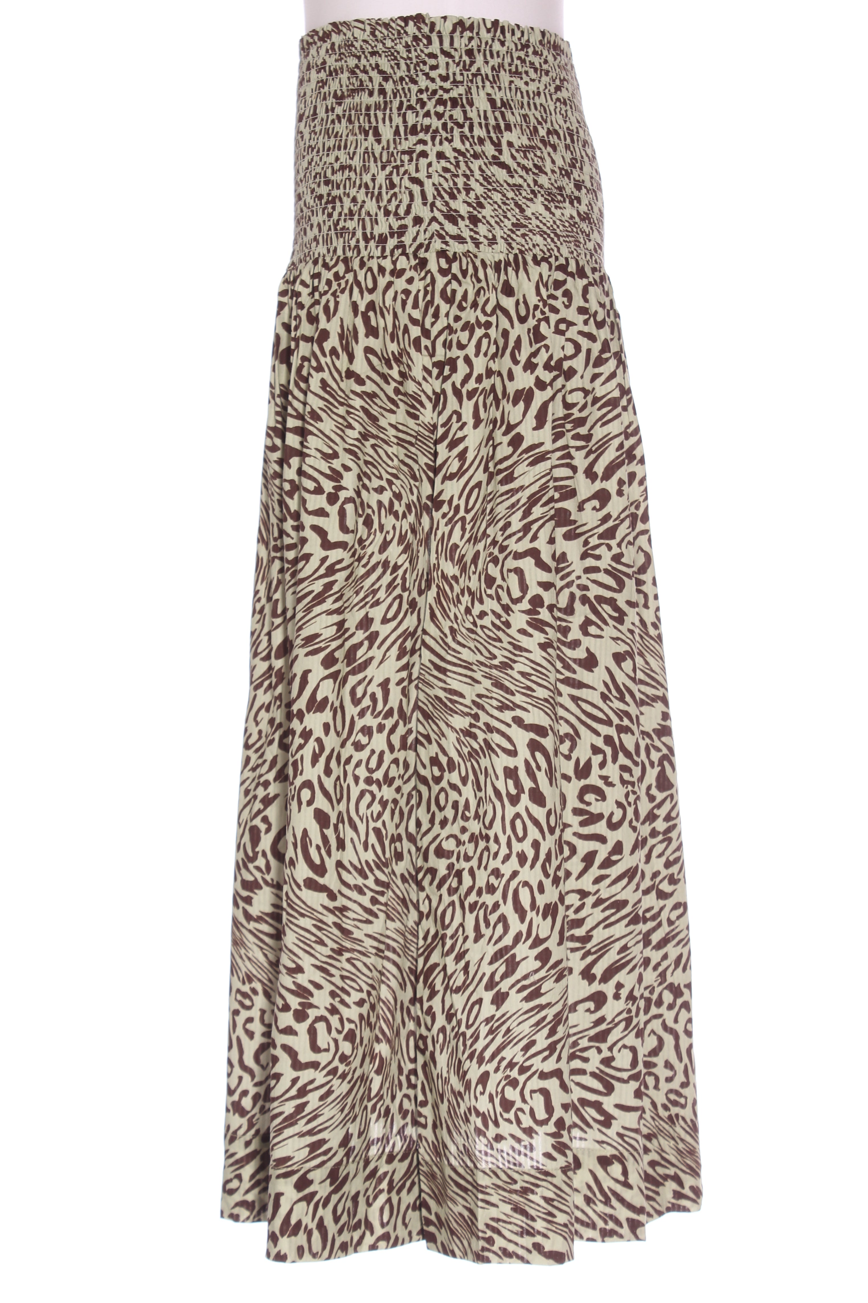 SIZE ON TAG: SFITS LIKE: 10COLOUR: Beige, brown, whiteFABRIC: 75% viscose, 25% linenCONDITION: Excellent prelovedMEASUREMENTS:WAIST: 36cms HIPS: 59cms LENGTH: 76-81cmsNOTES: Elasticated waist. Fabric has stretch.