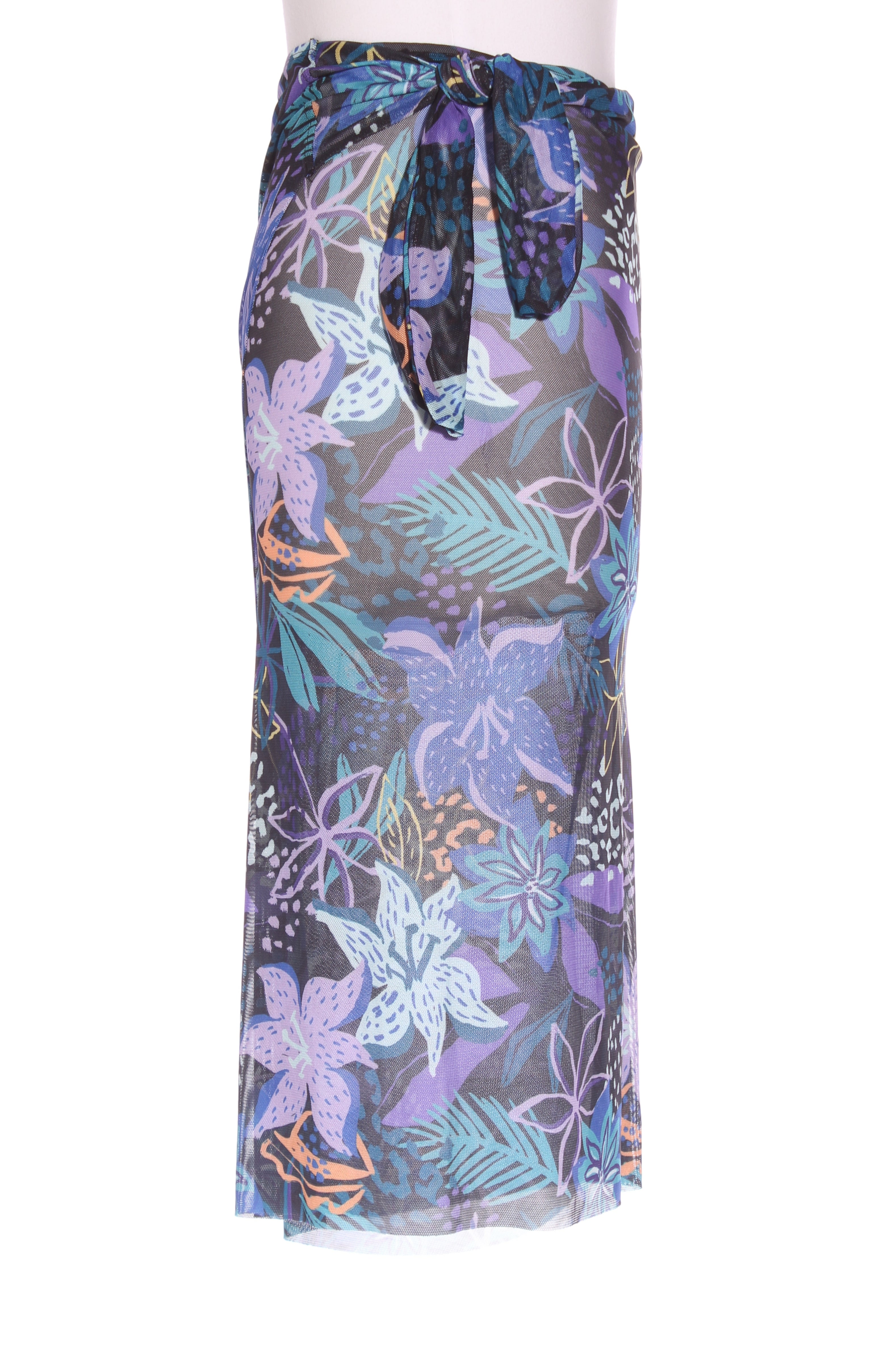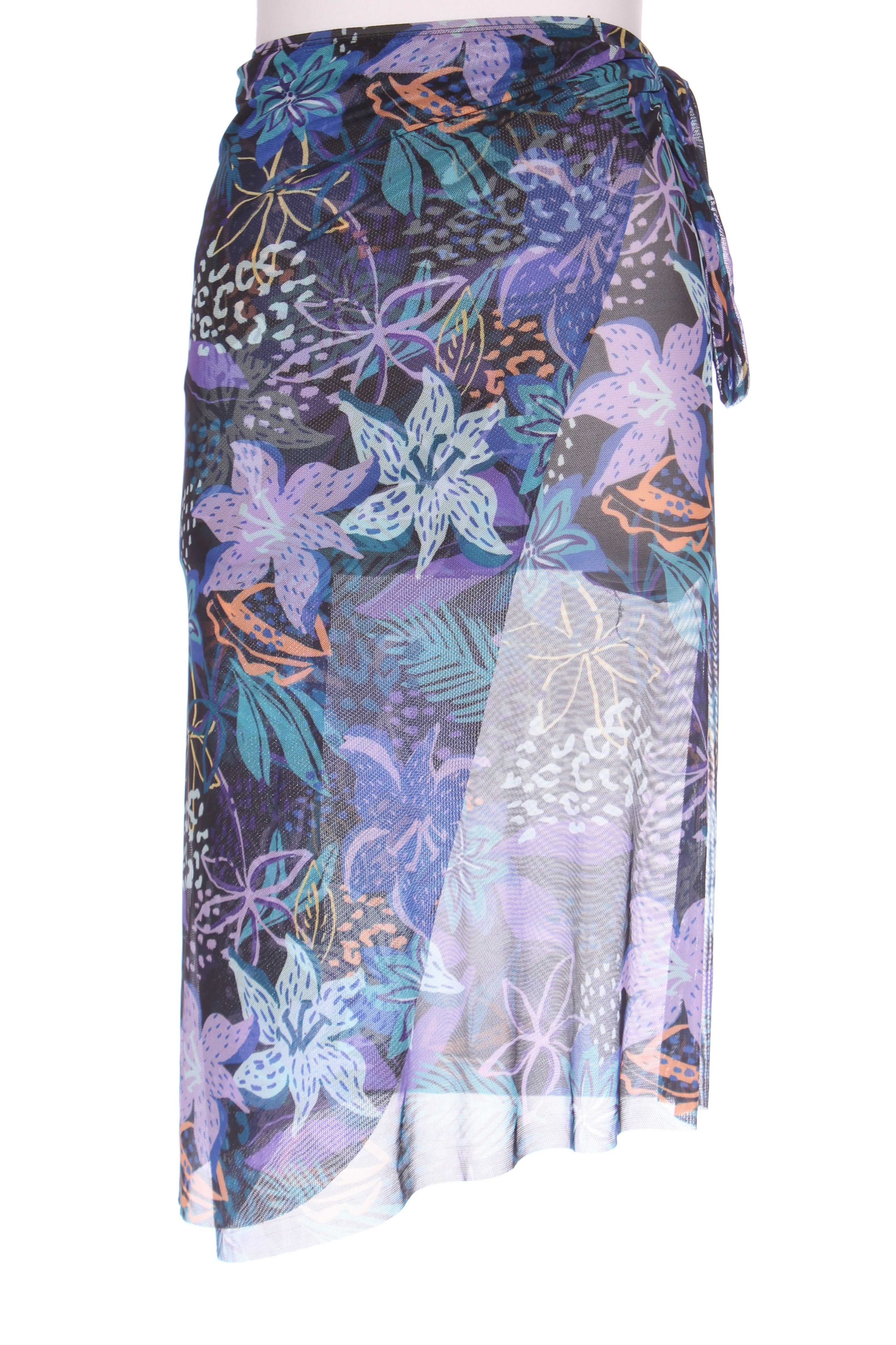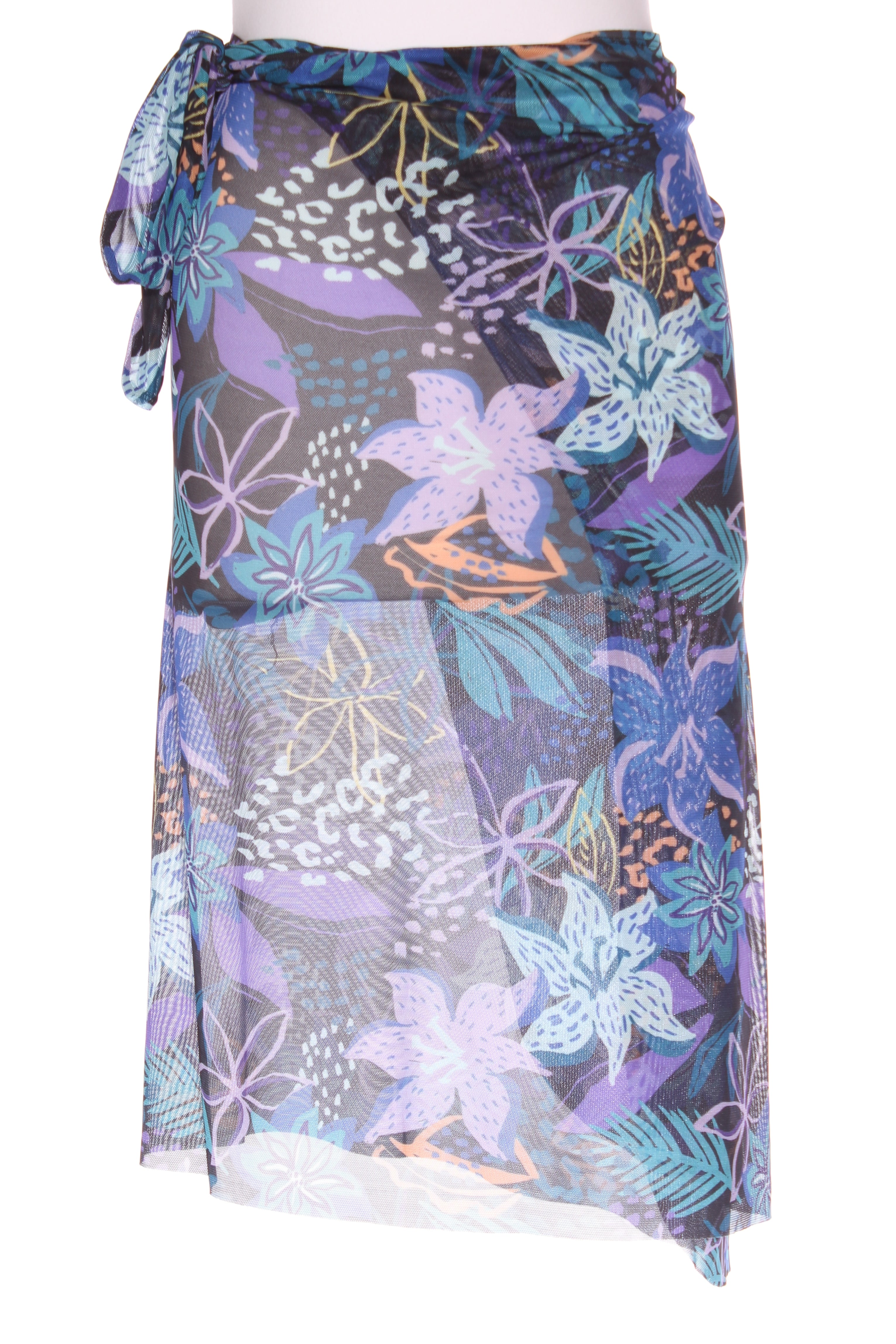 SIZE ON TAG: No tagFITS LIKE: 10-16COLOUR: Purple, blue, multiFABRIC: No tag, nylonCONDITION: Excellent prelovedMEASUREMENTS:WAIST: Free HIPS: Free LENGTH: 67cmsNOTES: Ties at side of waist. Fabric has stretch.