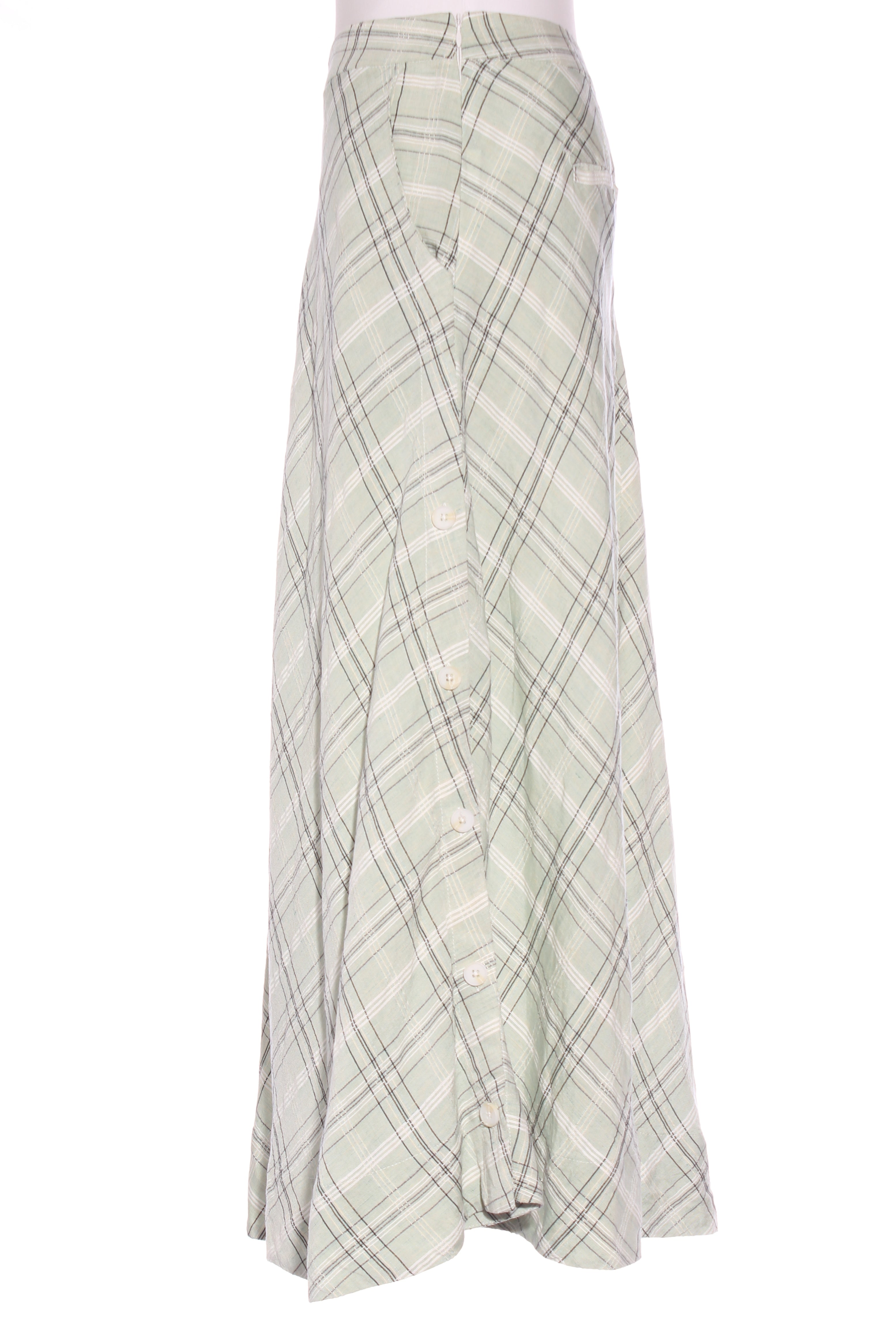 SIZE ON TAG: 14FITS LIKE: N/ACOLOUR: Green, black, white, taupeFABRIC: 60% rayon, 40% linenCONDITION: Excellent prelovedMEASUREMENTS:WAIST: 44cms HIPS: 69cms LENGTH: 92-97cms NOTES: Side zip access. Side pockets. ...