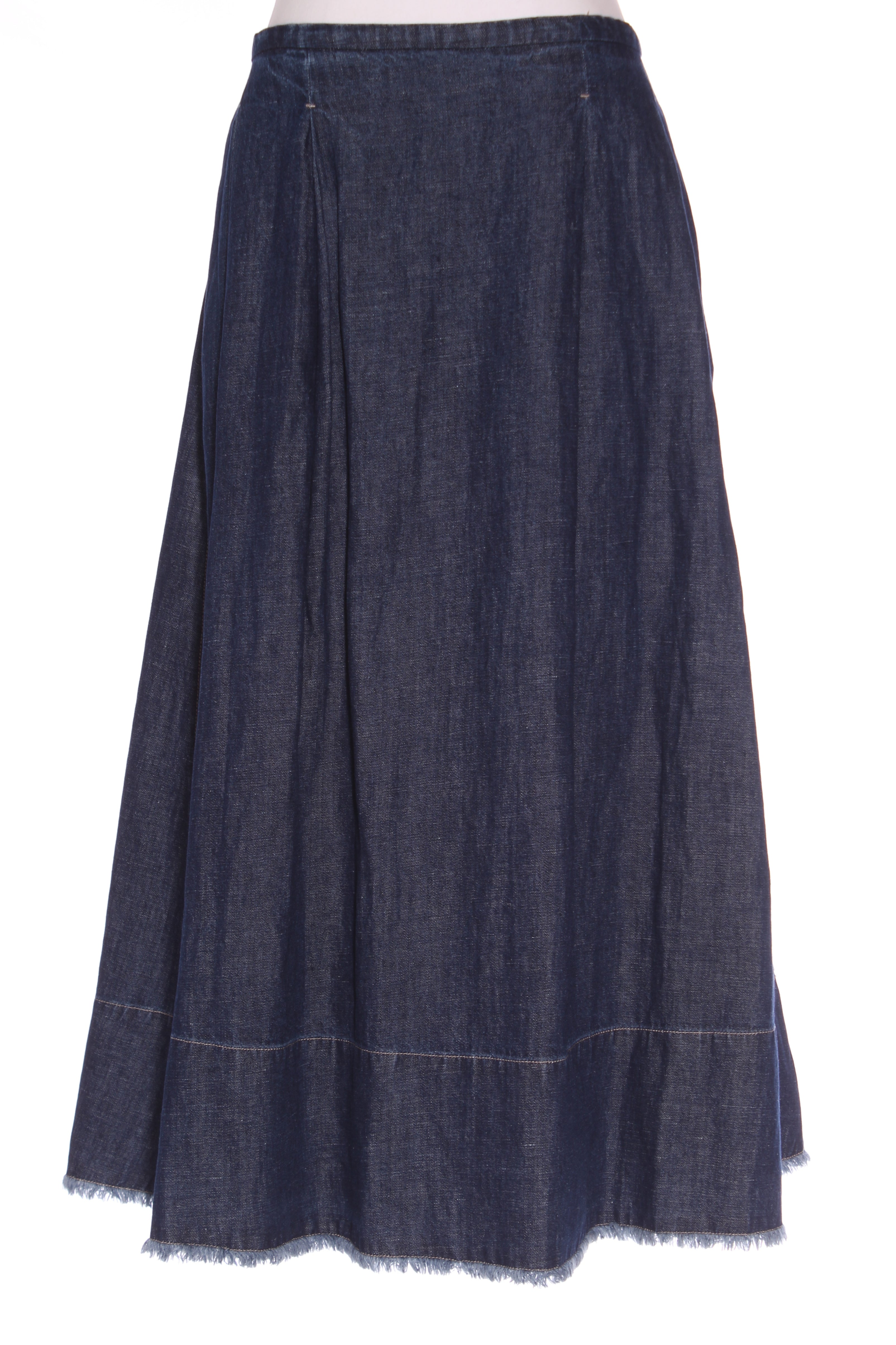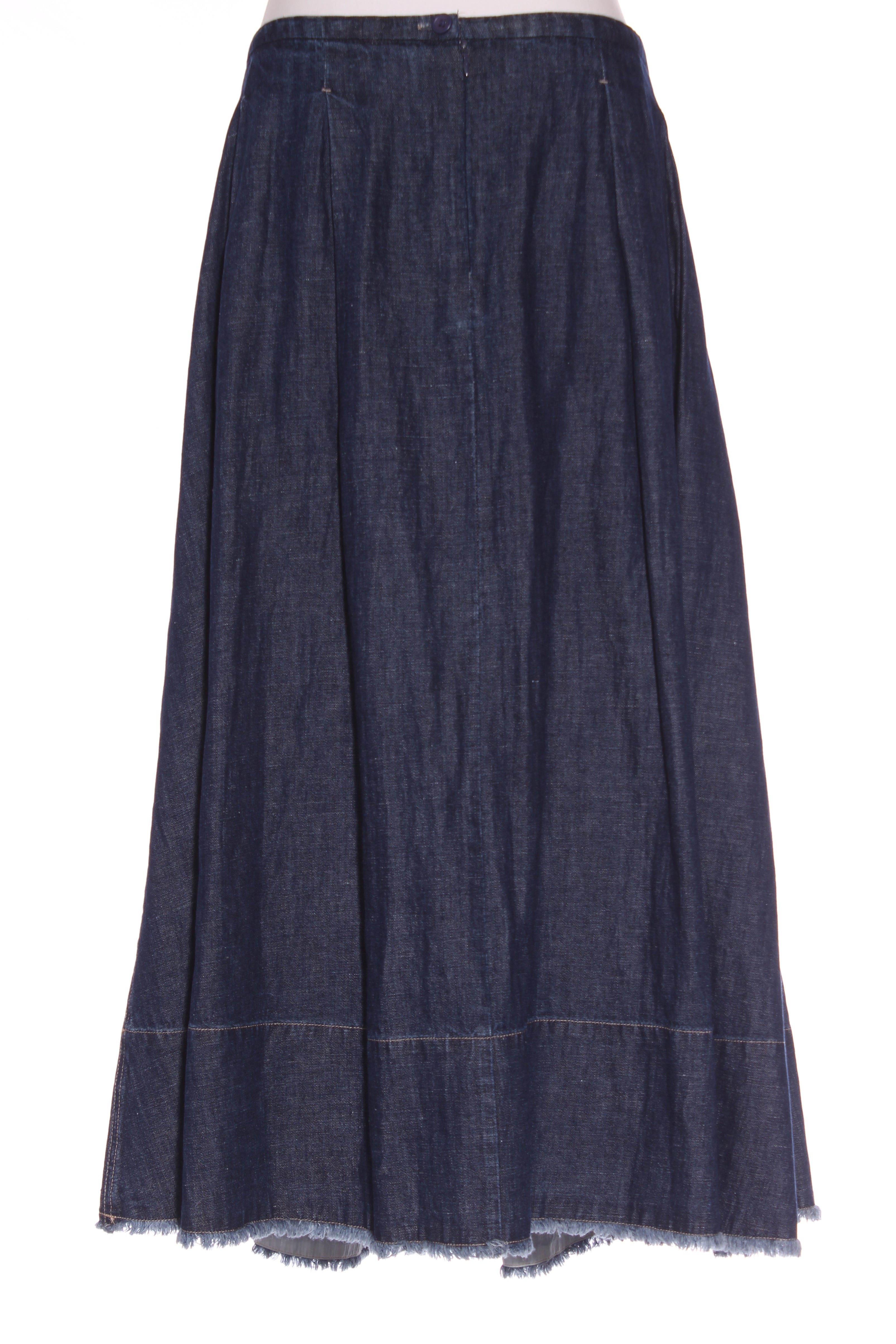 SIZE ON TAG: 16FITS LIKE: N/ACOLOUR: BlueFABRIC: 65% cotton, 35% linenCONDITION: Excellent prelovedMEASUREMENTS:WAIST: 47cms HIPS: 91cms LENGTH: 85cms NOTES: Back button and zip access. Side pockets.