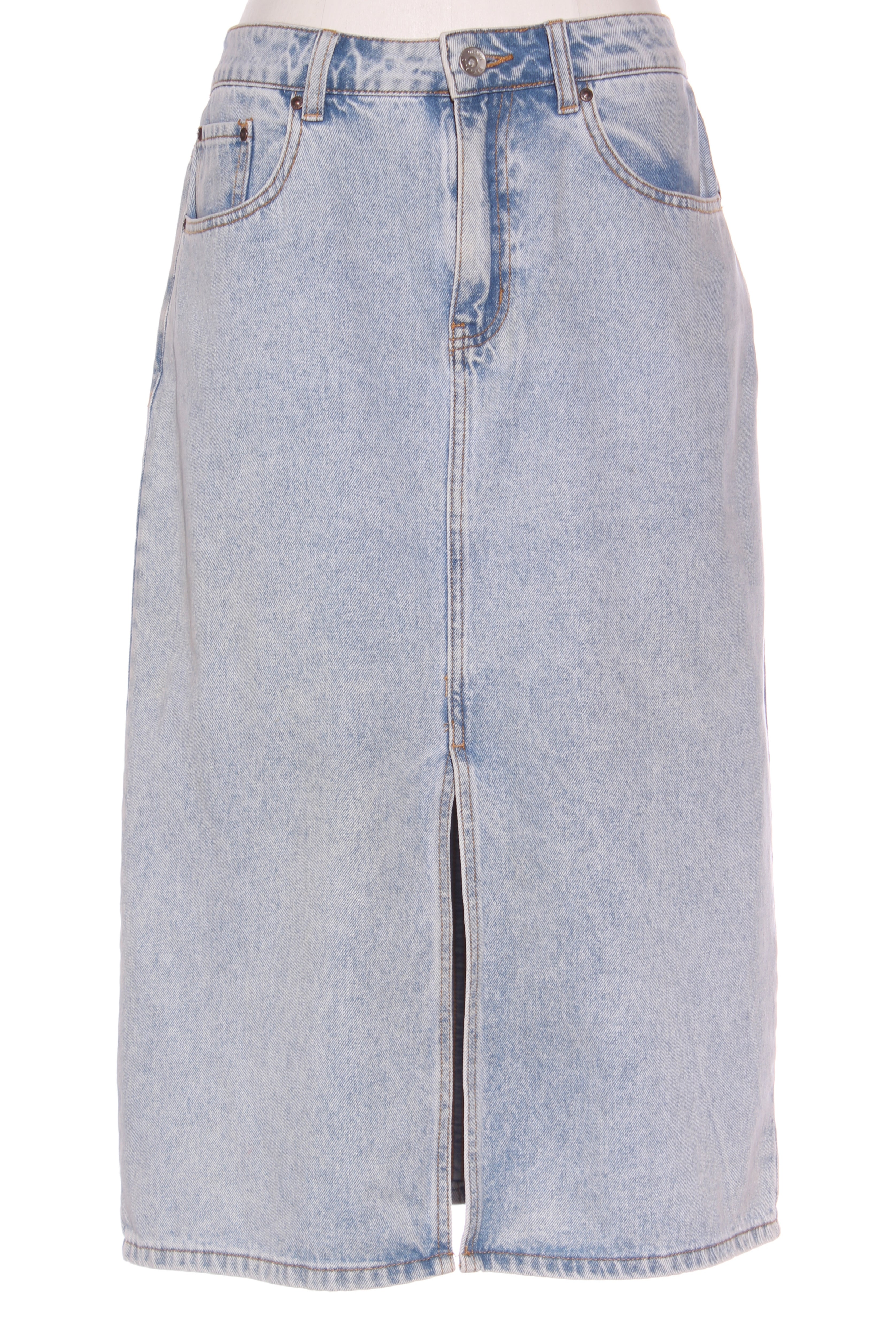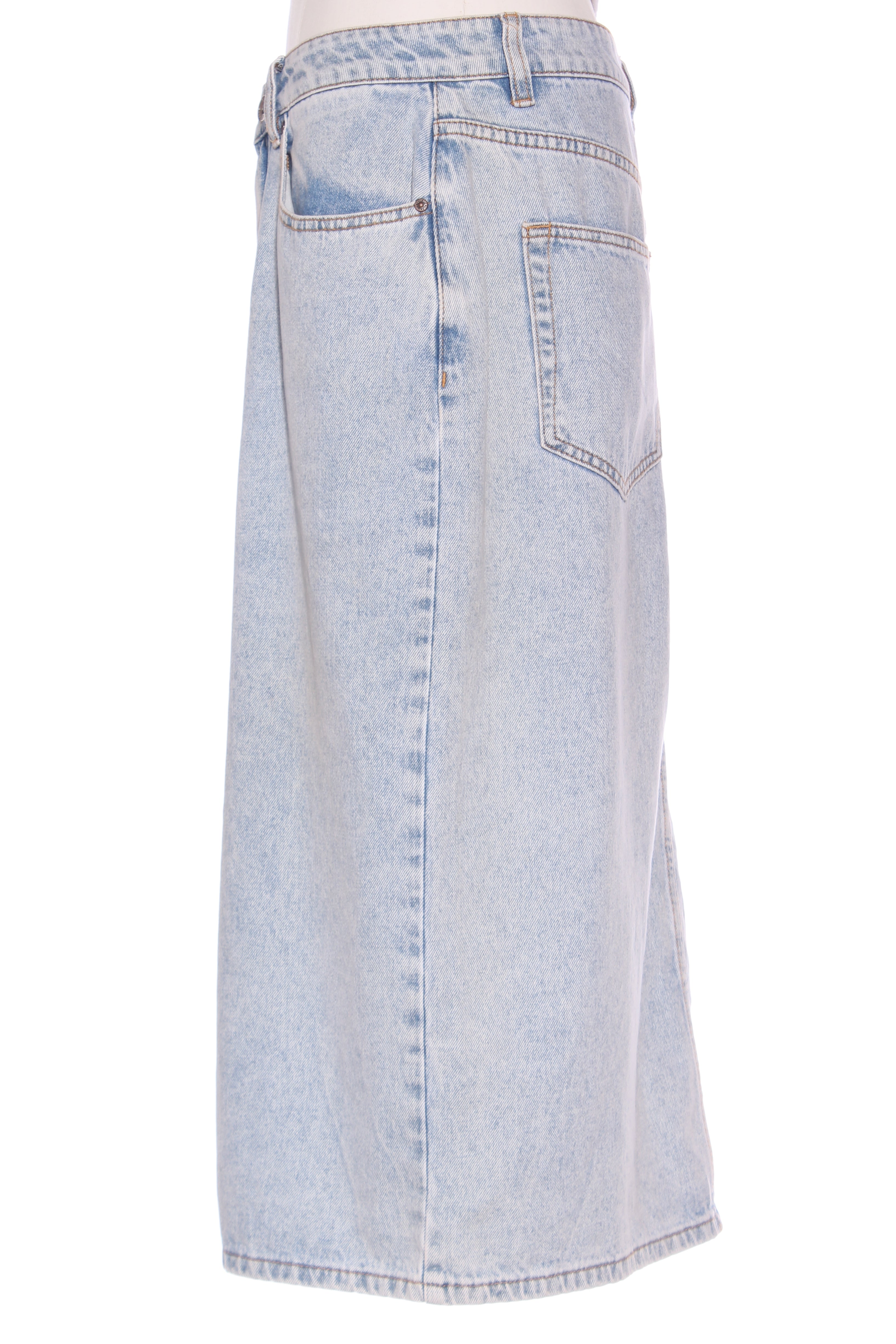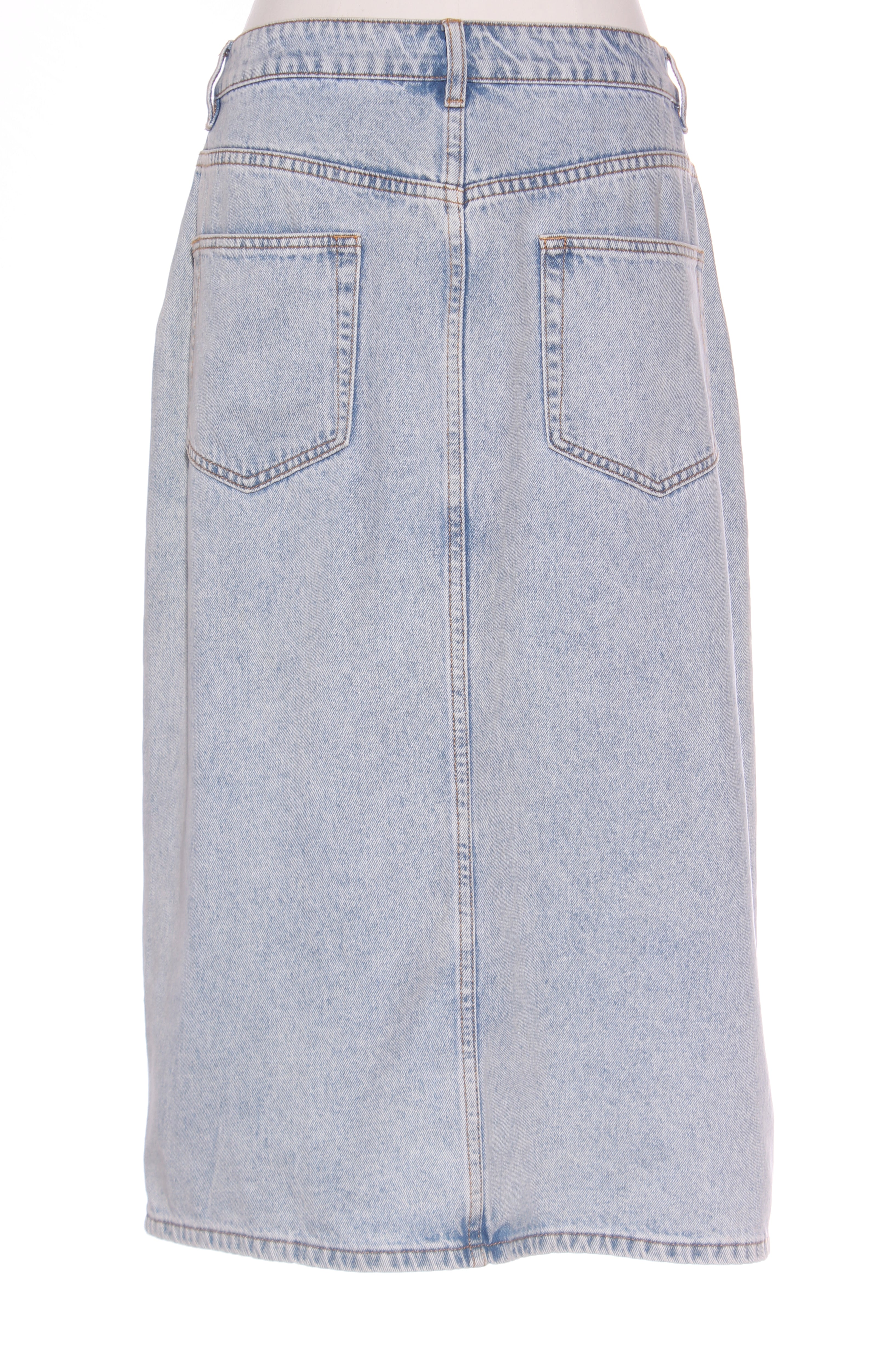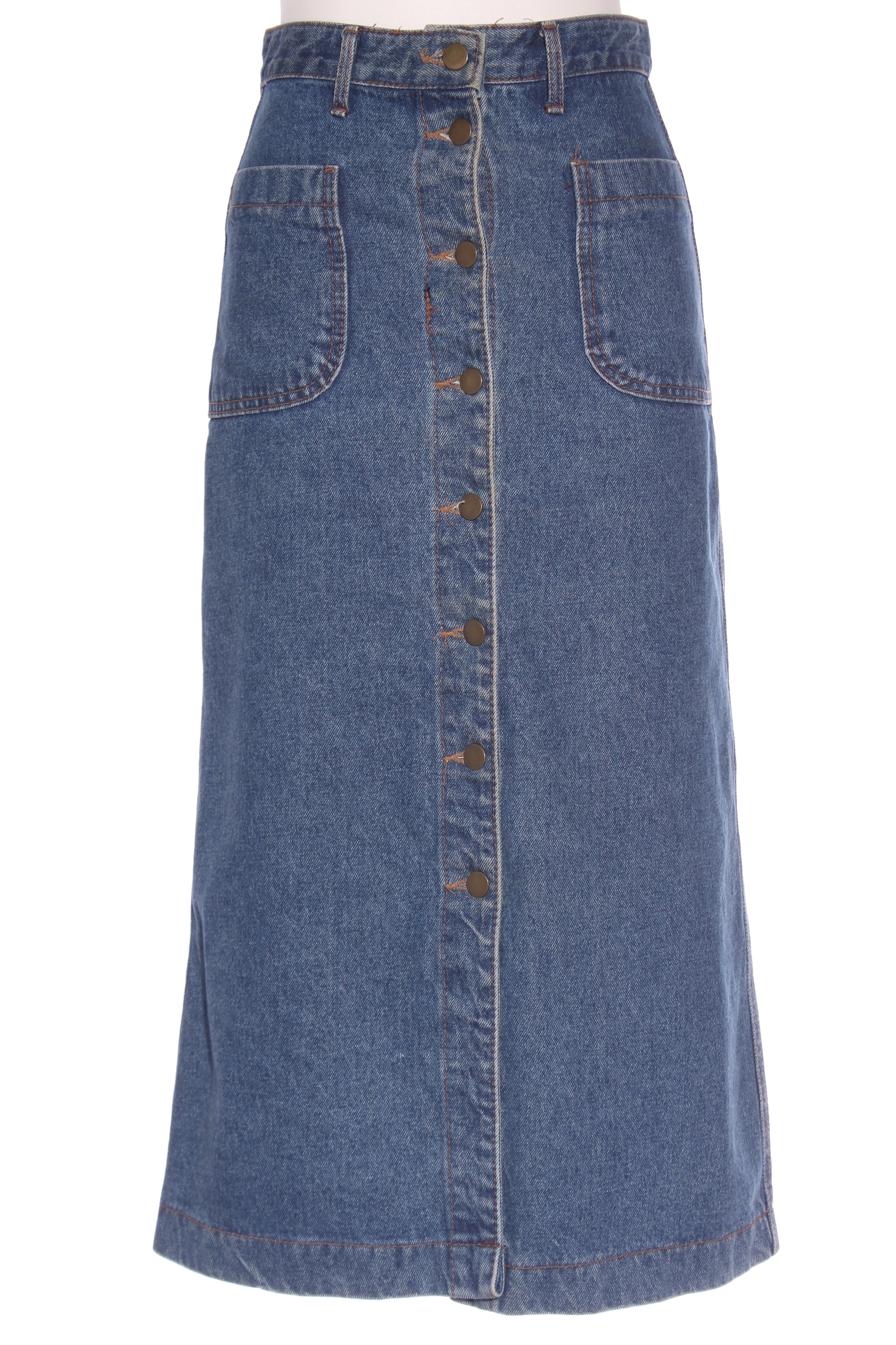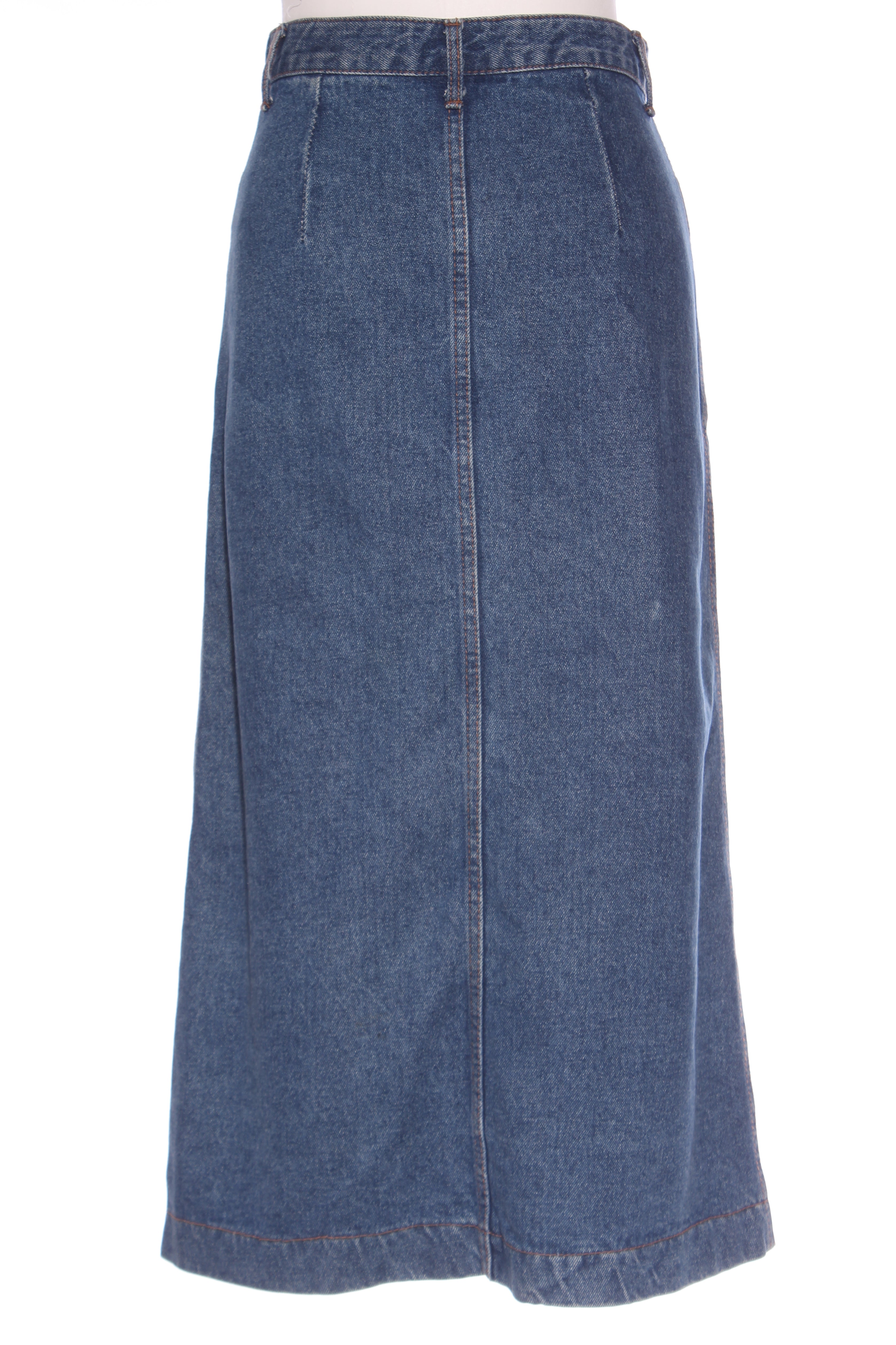 SIZE ON TAG: 8FITS LIKE: N/ACOLOUR: BlueFABRIC: CottonCONDITION: Good vintage prelovedMEASUREMENTS:WAIST: 34cms HIPS: 46cms LENGTH: 80cmsNOTES: Made in Korea. Button up full length of front. Front...