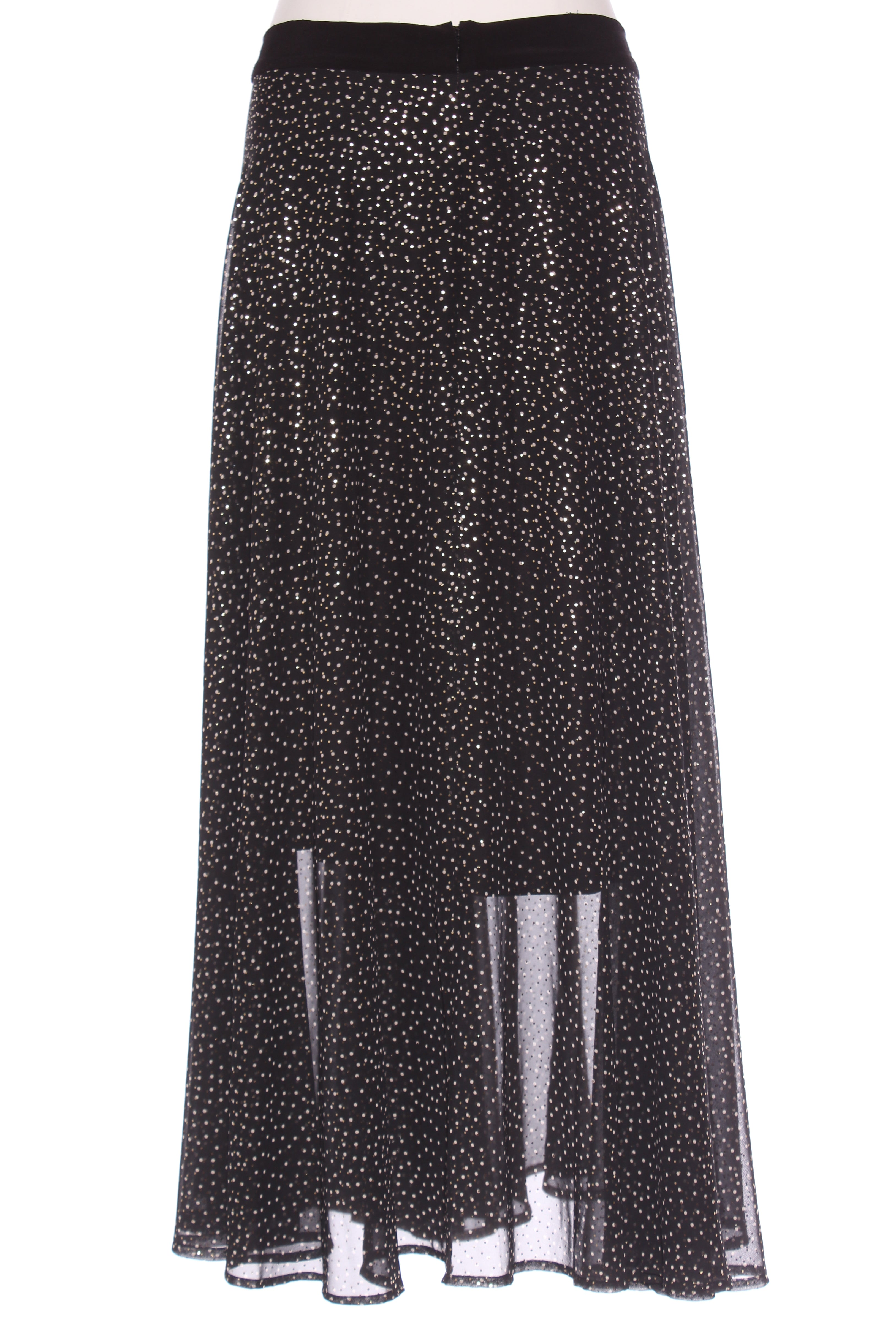 SIZE ON TAG: 14FITS LIKE: N/ACOLOUR: Black, gold, whiteFABRIC: PolyesterCONDITION: Excellent prelovedMEASUREMENTS:WAIST: 40cms HIPS: 57cms LENGTH: 91cms NOTES: Back hook 'n' eye and zip access. Elasticated waist. ...