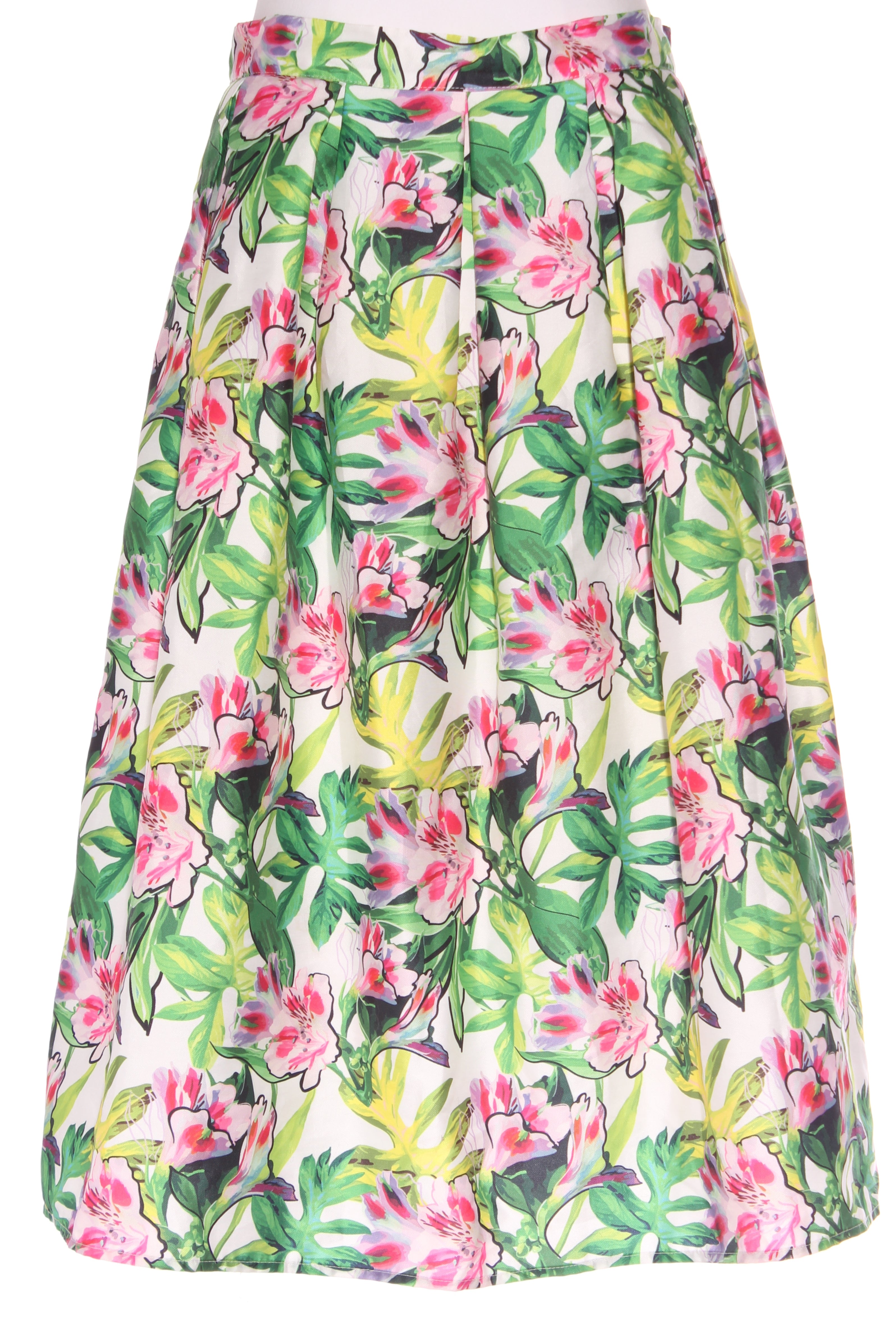 SIZE ON TAG: 12FITS LIKE: N/ACOLOUR: Green, pink, multiFABRIC: PolyesterCONDITION: Excellent prelovedMEASUREMENTS:WAIST: 40cms WAIST: 70cms LENGTH: 75cms NOTES: Back zip access. Side pockets. Has lining.