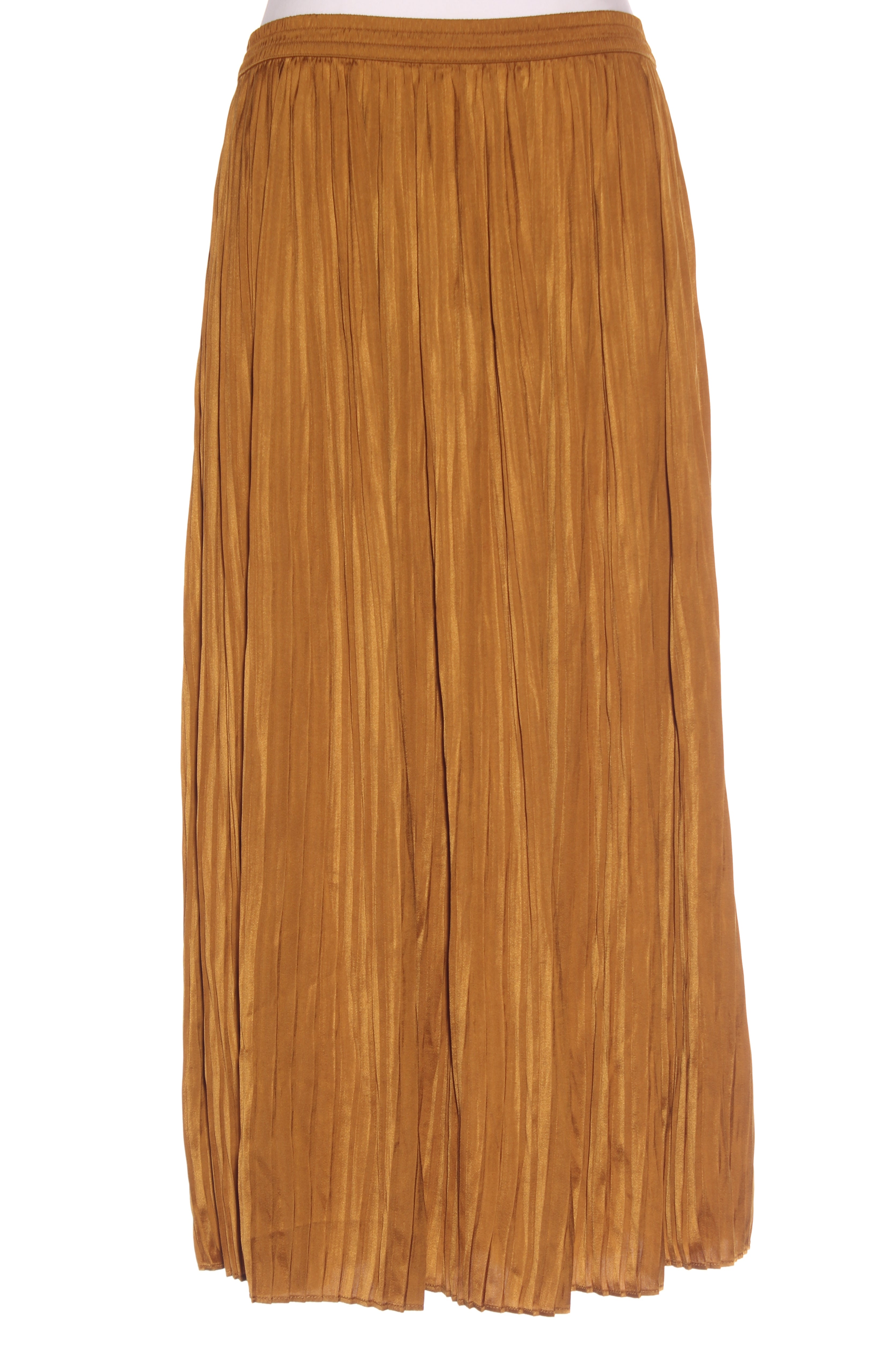 SIZE ON TAG: 14FITS LIKE: N/ACOLOUR: Golden ochreFABRIC: PolyesterCONDITION: Excellent prelovedMEASUREMENTS:WAIST: 40cms HIPS: Free LENGTH: 85cms NOTES: Elasticated waist.