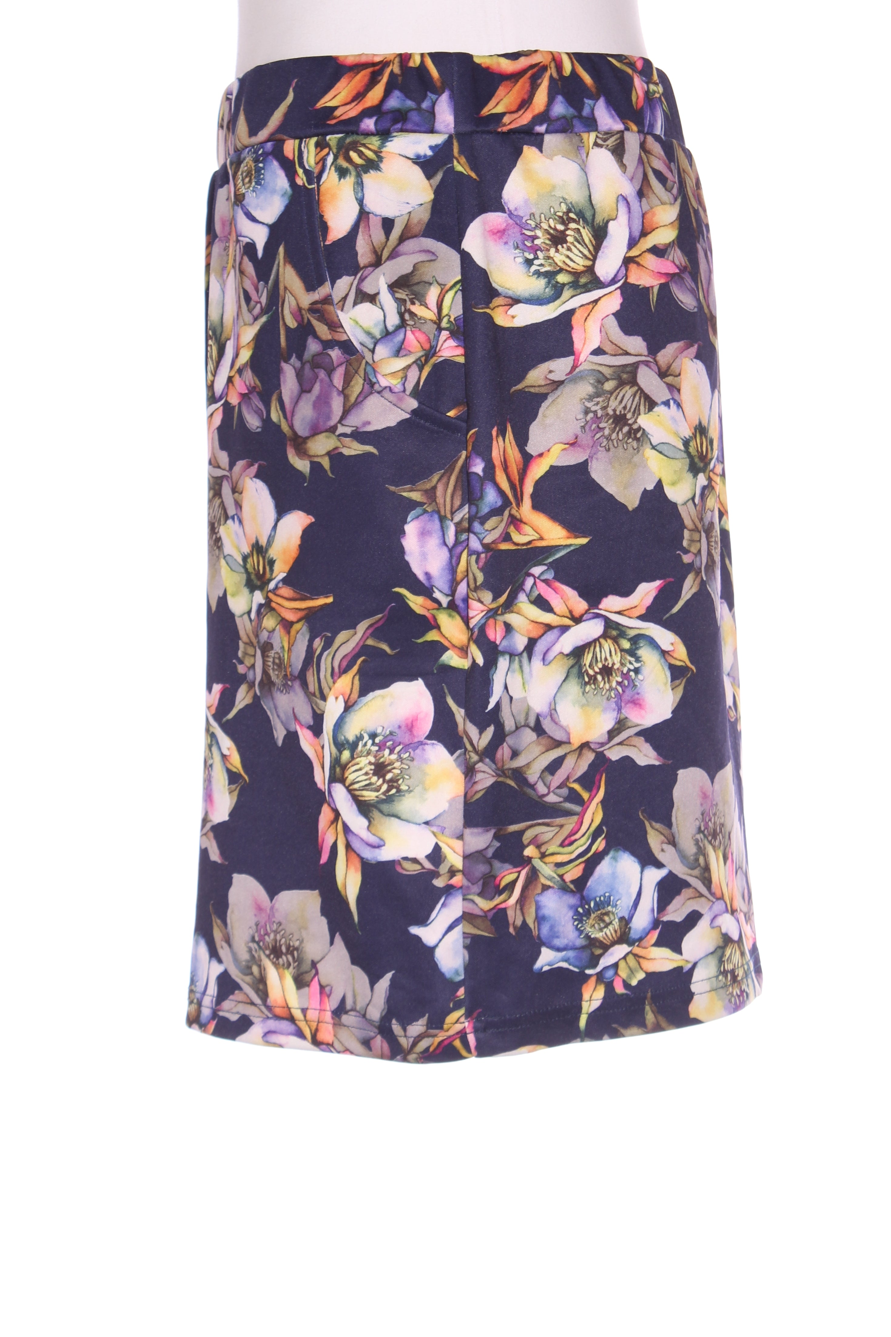 SIZE ON TAG: 14FITS LIKE: N/ACOLOUR: Navy blue, pink, multiFABRIC: PolyesterCONDITION: Excellent prelovedMEASUREMENTS:WAIST: 39cms HIPS: 54cms LENGTH: 52-59cms NOTES: Elasticated waist. Fully lined. Fabric has stretch. Gathered...