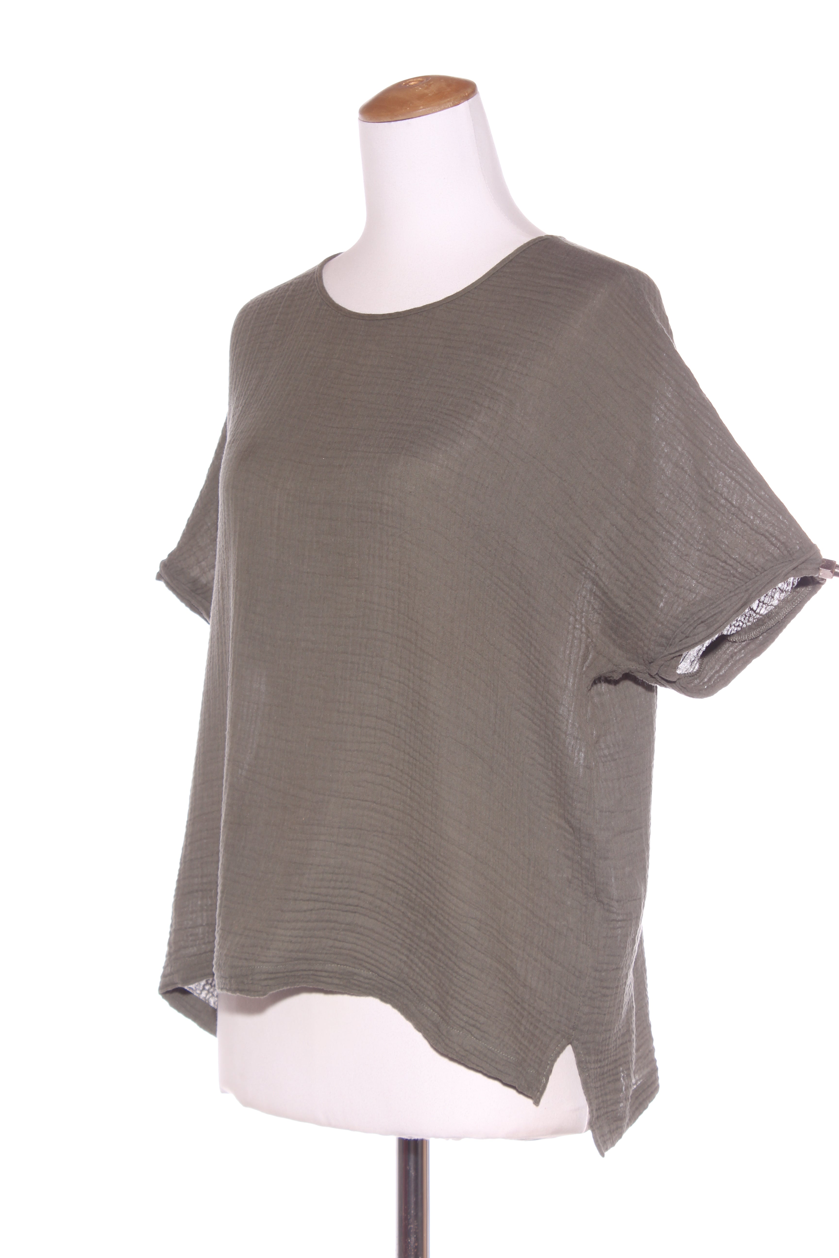 SIZE ON TAG: XXSFITS LIKE: 6-10COLOUR: KhakiFABRIC: 55% linen, 45% cotton, Contrast - silk, Embroidery - polyesterCONDITION: Excellent prelovedMEASUREMENTS:BUST: 48cms WAIST: 50cms LENGTH: 56-75cmsNOTES: Fabric has...