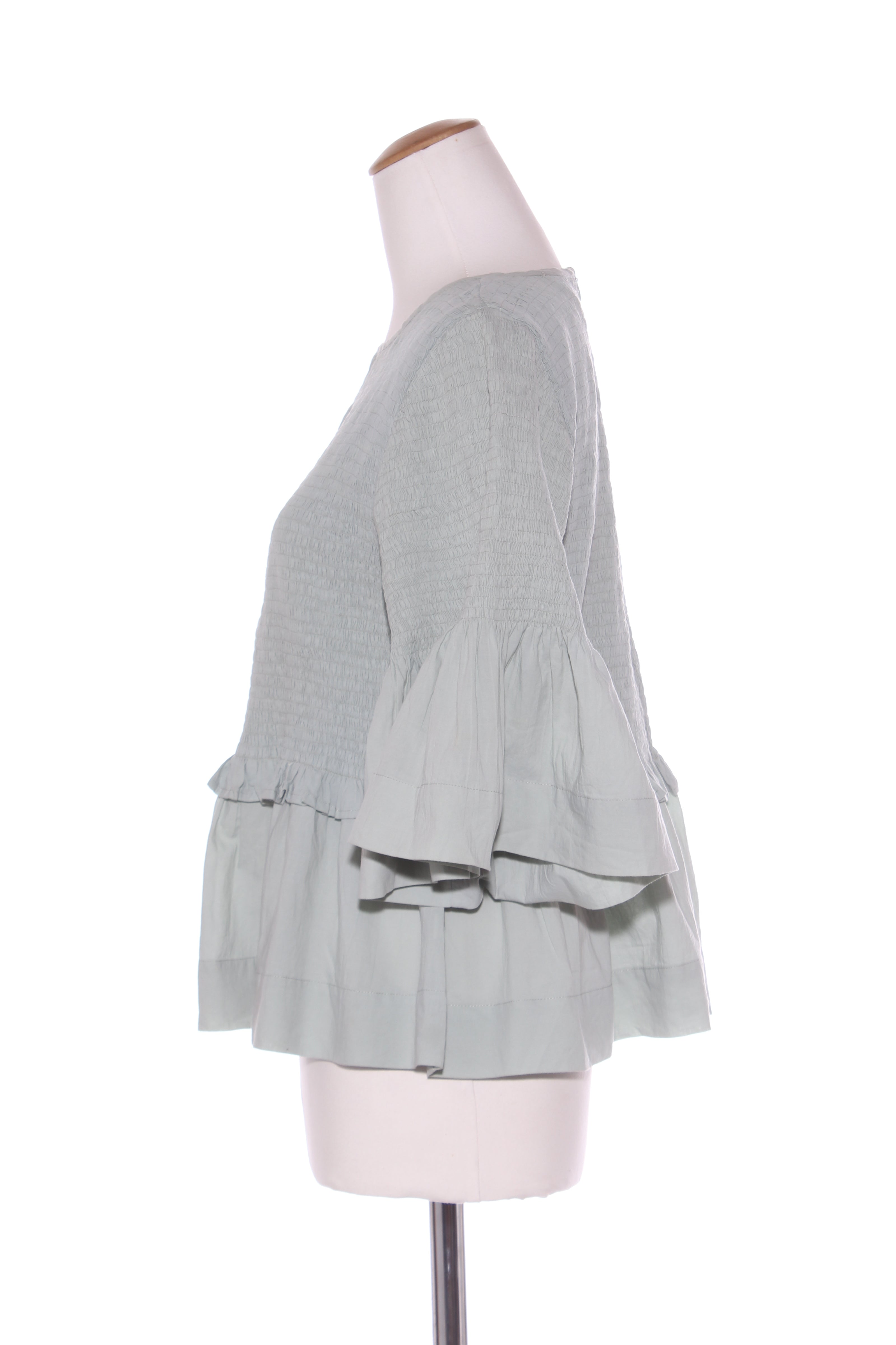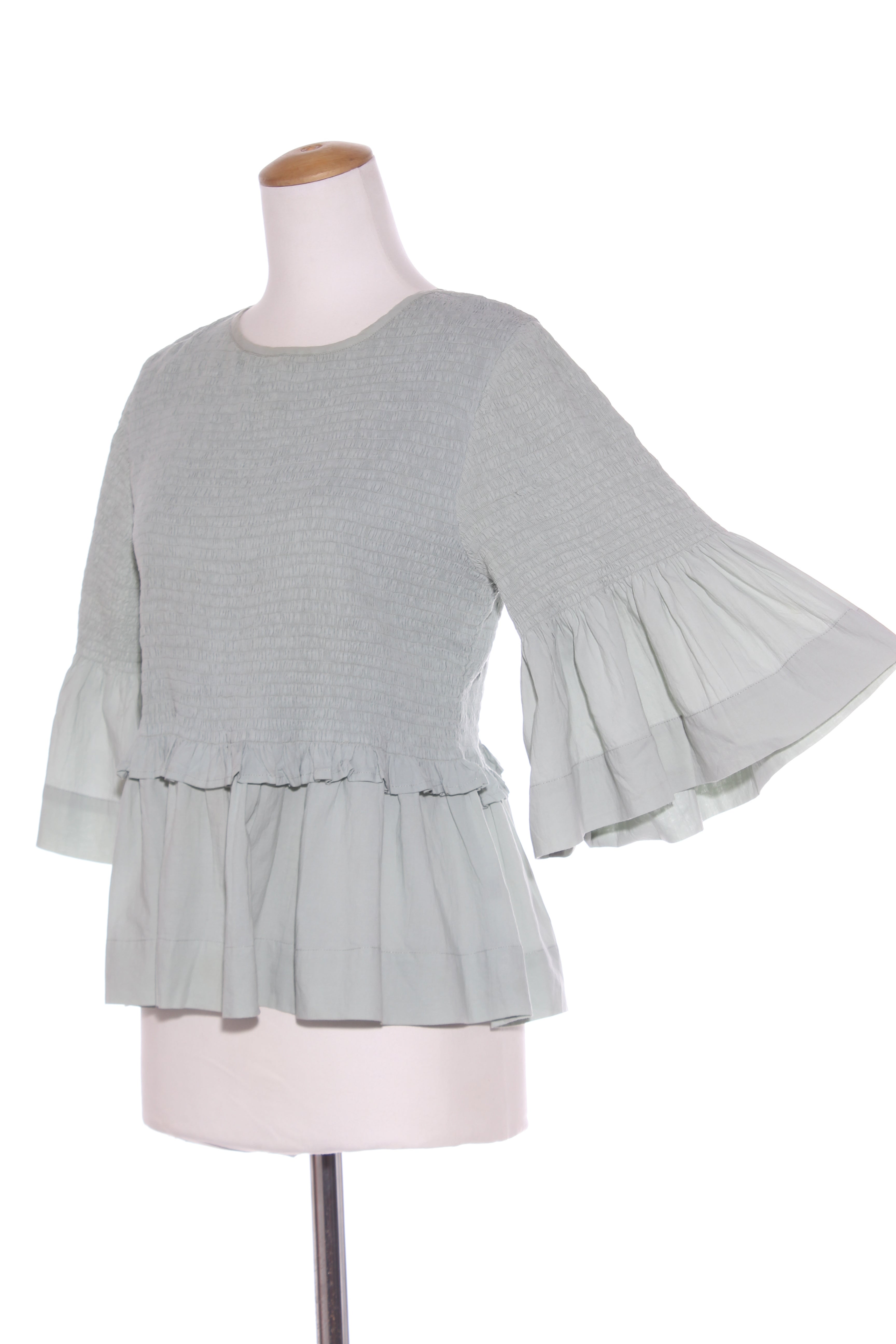 SIZE ON TAG: 16FITS LIKE: N/ACOLOUR: Sage greenFABRIC: CottonCONDITION: Excellent prelovedMEASUREMENTS:BUST: 46cms WAIST: 44cms LENGTH: 58cmsNOTES: Back zip access. Elasticated shirred bodice.