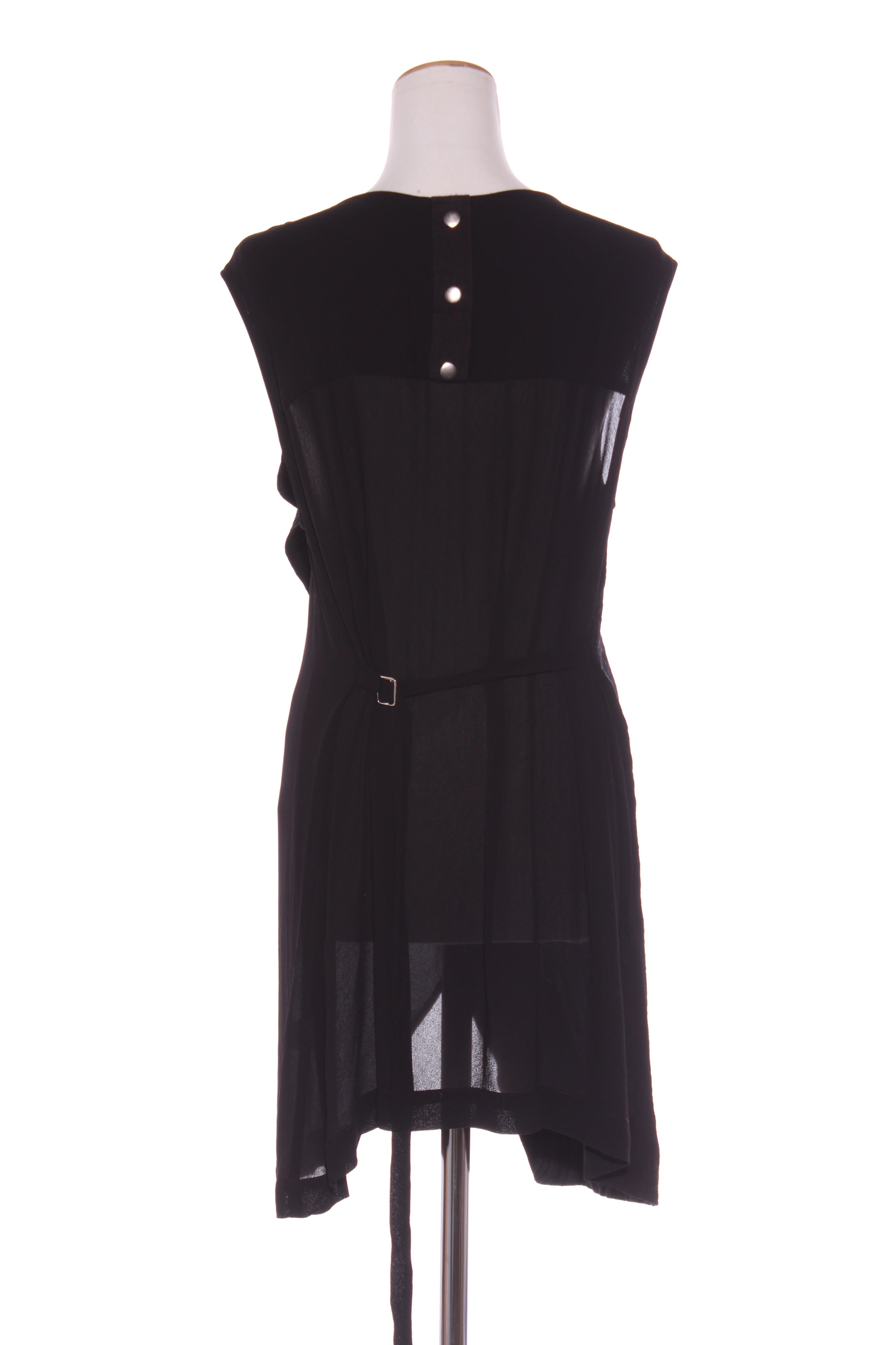 SIZE ON TAG: 10FITS LIKE: 10-12COLOUR: BlackFABRIC: PolyesterCONDITION: Excellent prelovedMEASUREMENTS:BUST: Free WAIST: 68cms LENGTH: 81cmsNOTES: Button up front and sleeve ends.