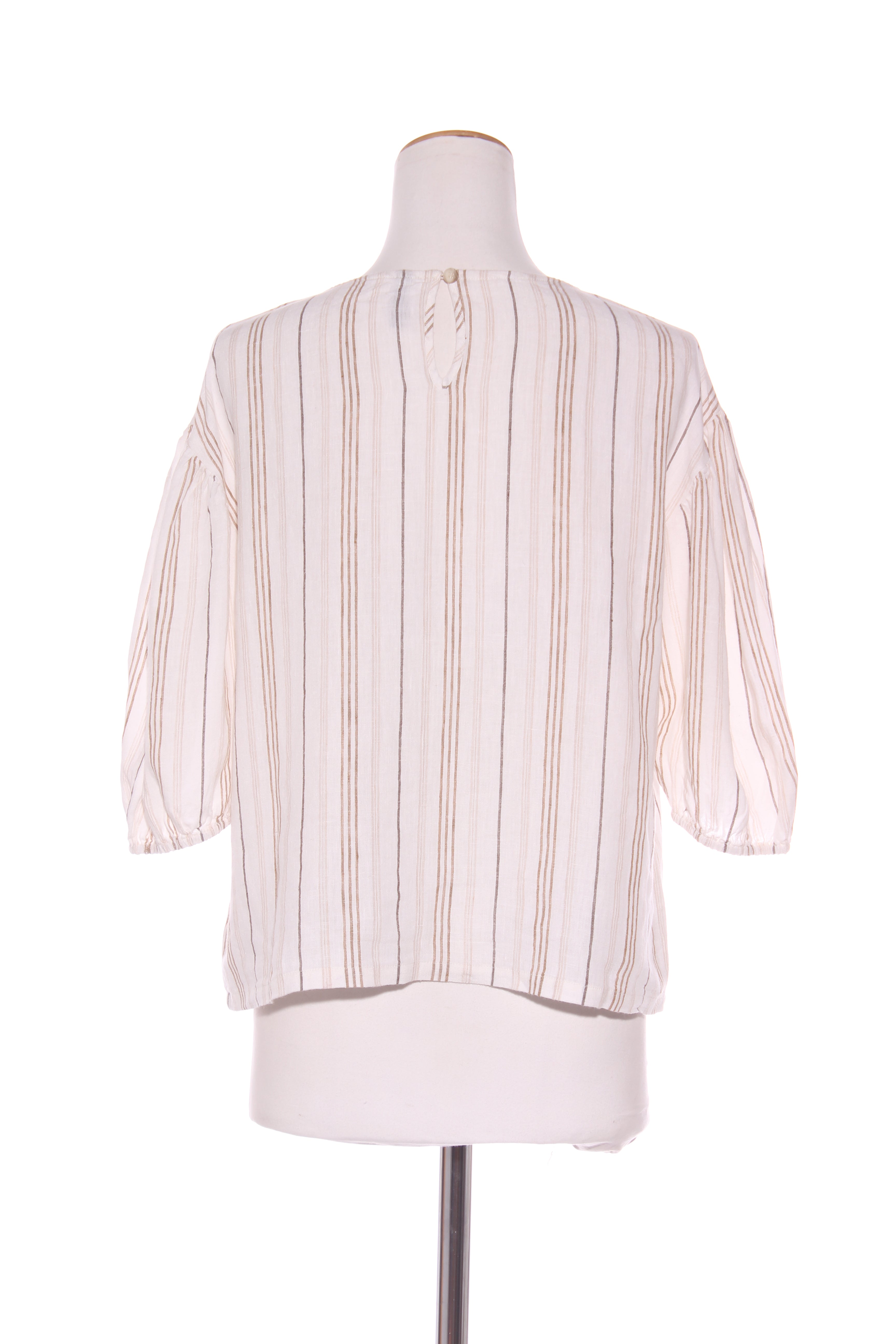SIZE ON TAG: 10FITS LIKE: 10-12COLOUR: Brown, taupe, whiteFABRIC: Tag removed, linen CONDITION: Excellent prelovedMEASUREMENTS:BUST: 53cms WAIST: 54cms LENGTH: 55cmsNOTES: In a homespun-inspired striped linen that will only...