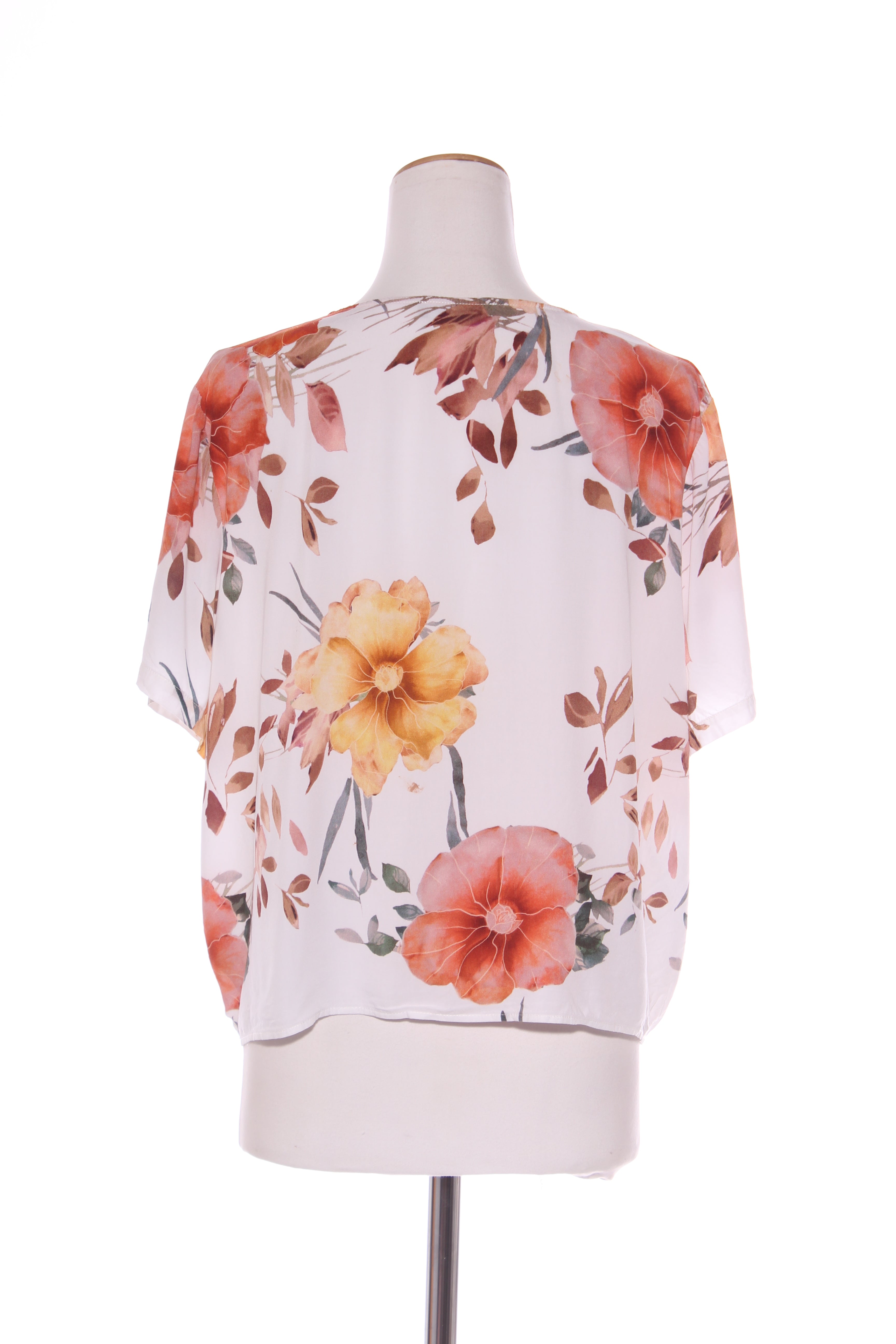 SIZE ON TAG: Size tag removedFITS LIKE: 16COLOUR: Multi, whiteFABRIC: ViscoseCONDITION: Excellent prelovedMEASUREMENTS:BUST: 61cms WAIST: 62cms LENGTH: 57-82cmsNOTES: Ties at front of hemline.