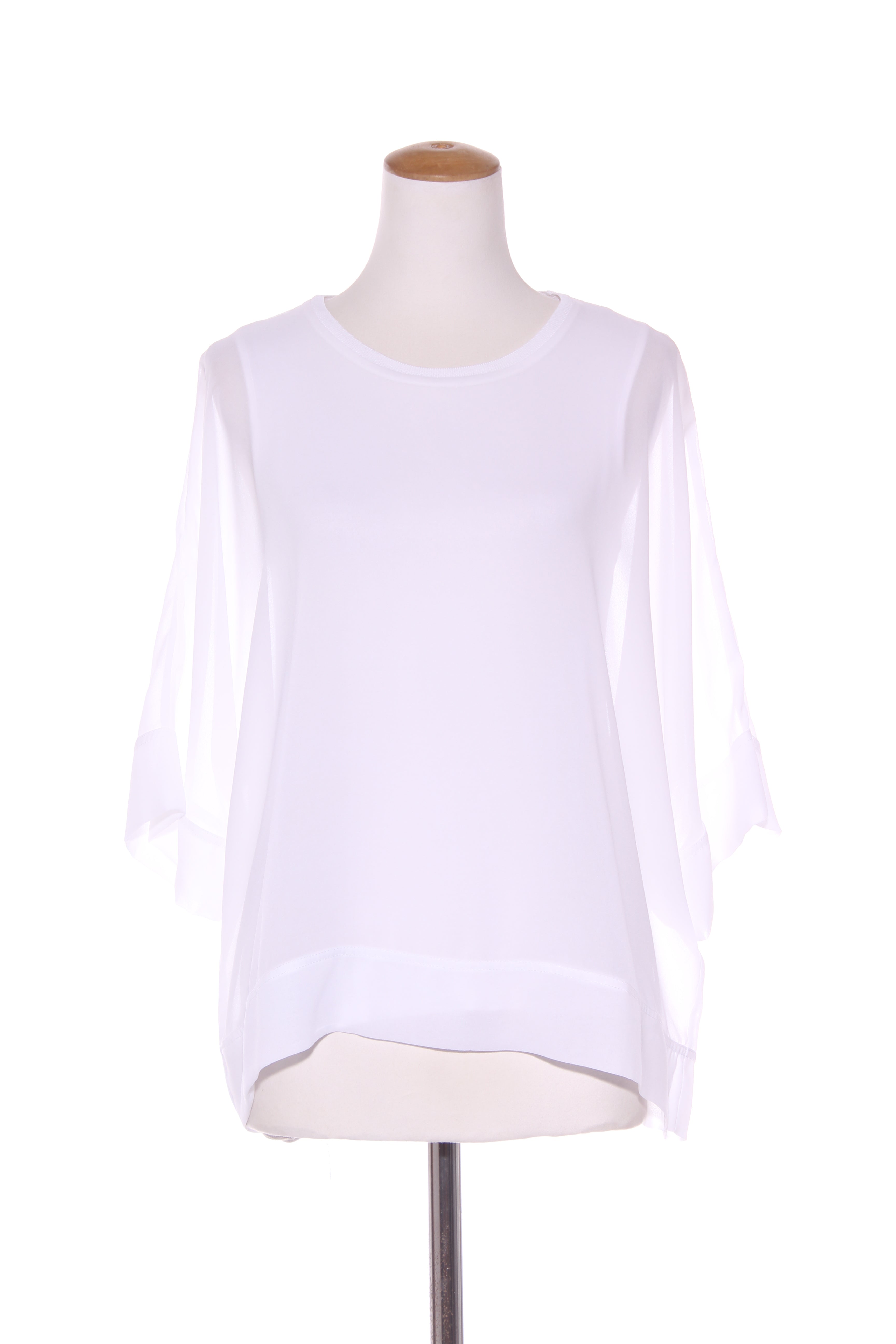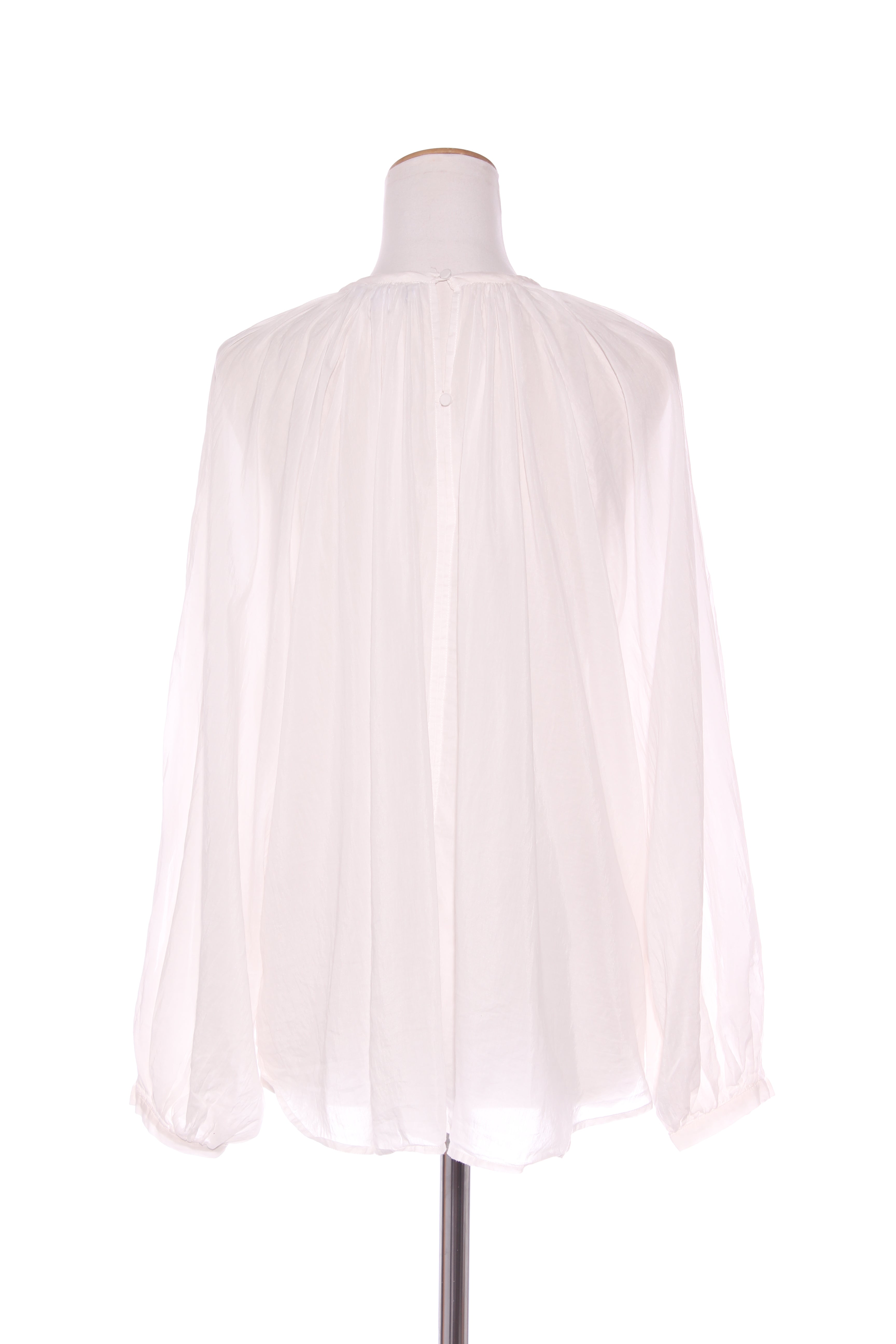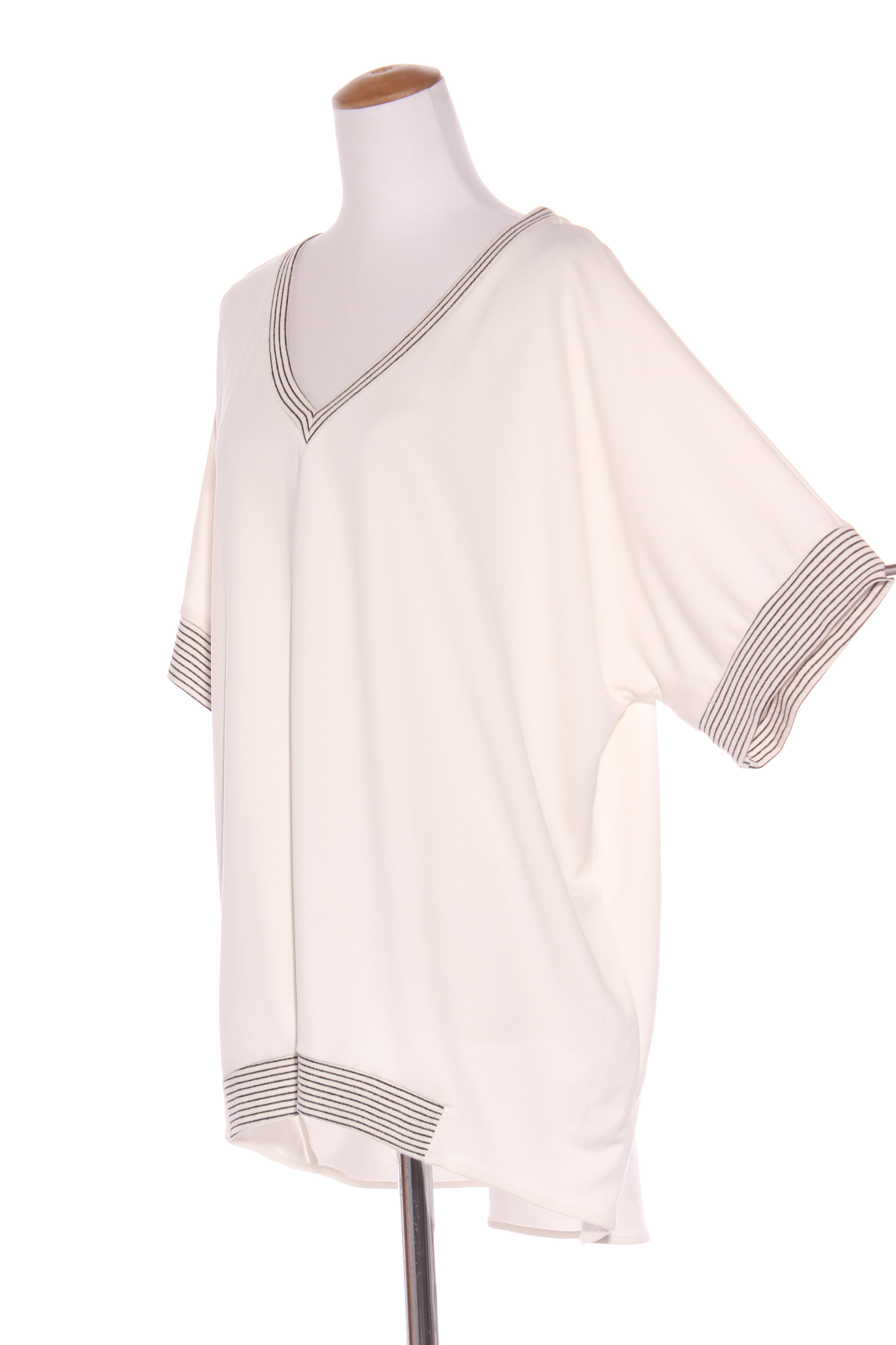 SIZE ON TAG: 14FITS LIKE: N/ACOLOUR: WhiteFABRIC: 73% cotton, 27% silkCONDITION: Excellent prelovedMEASUREMENTS:BUST: 80cms WAIST: 85cms LENGTH: 65cmsNOTES: In a relaxed fit Crew neckline Gathered through...