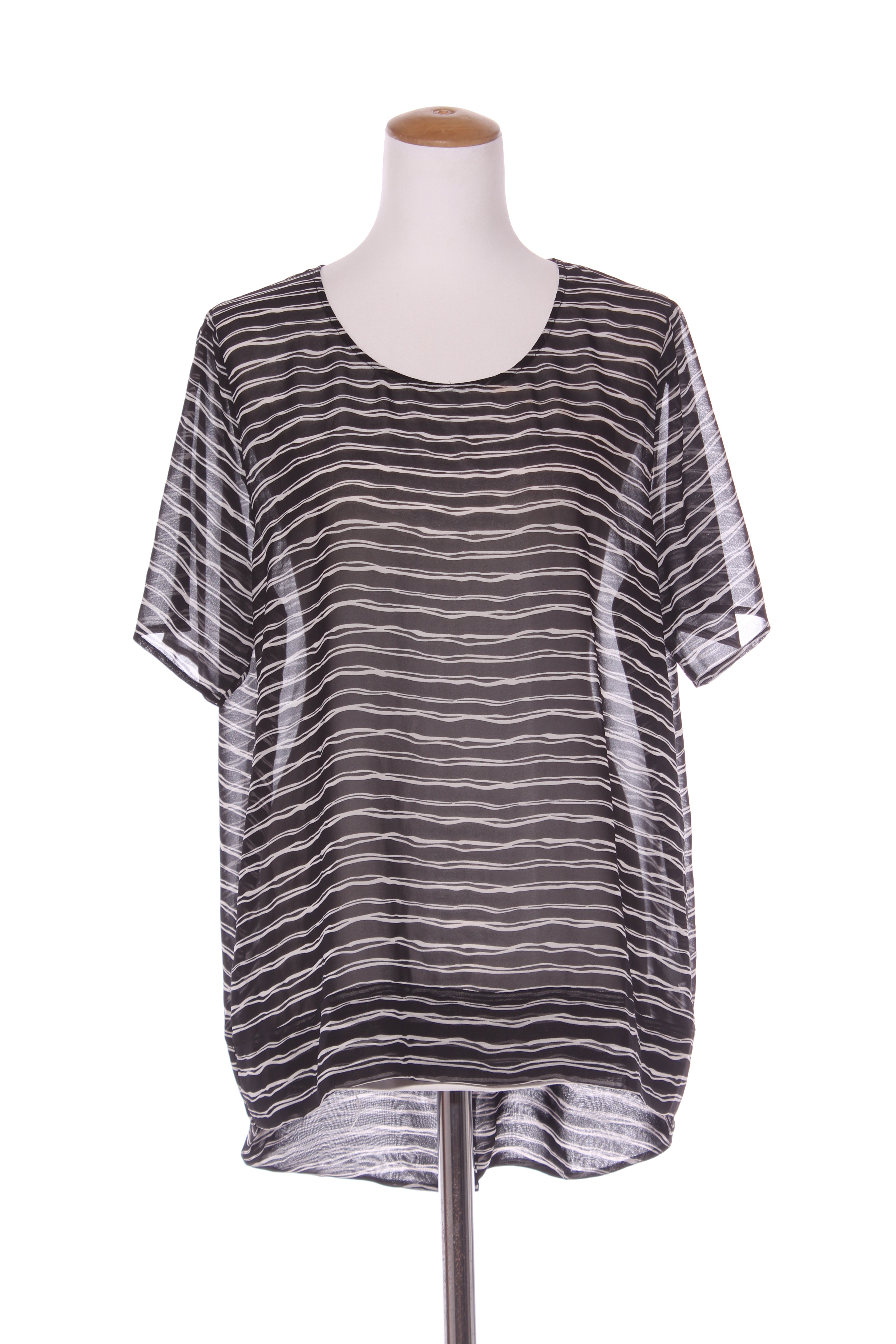SIZE ON TAG: LFITS LIKE: 14COLOUR: Black, whiteFABRIC: 55% acrylic, 25% tencel, 20% linenCONDITION: Excellent prelovedMEASUREMENTS:BUST: 51cms WAIST: 52cms LENGTH: 69-79cmsNOTES: Fabric has stretch.