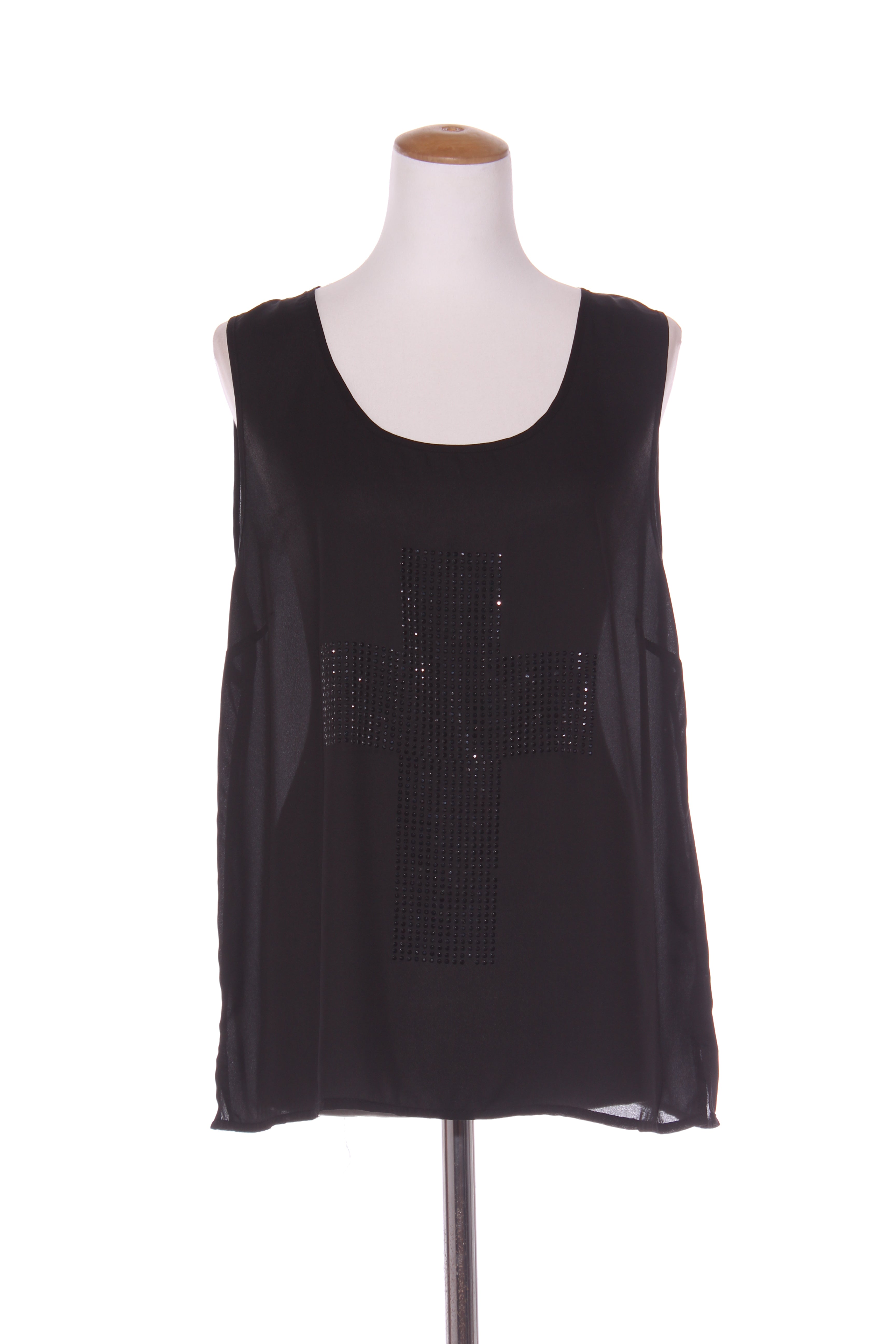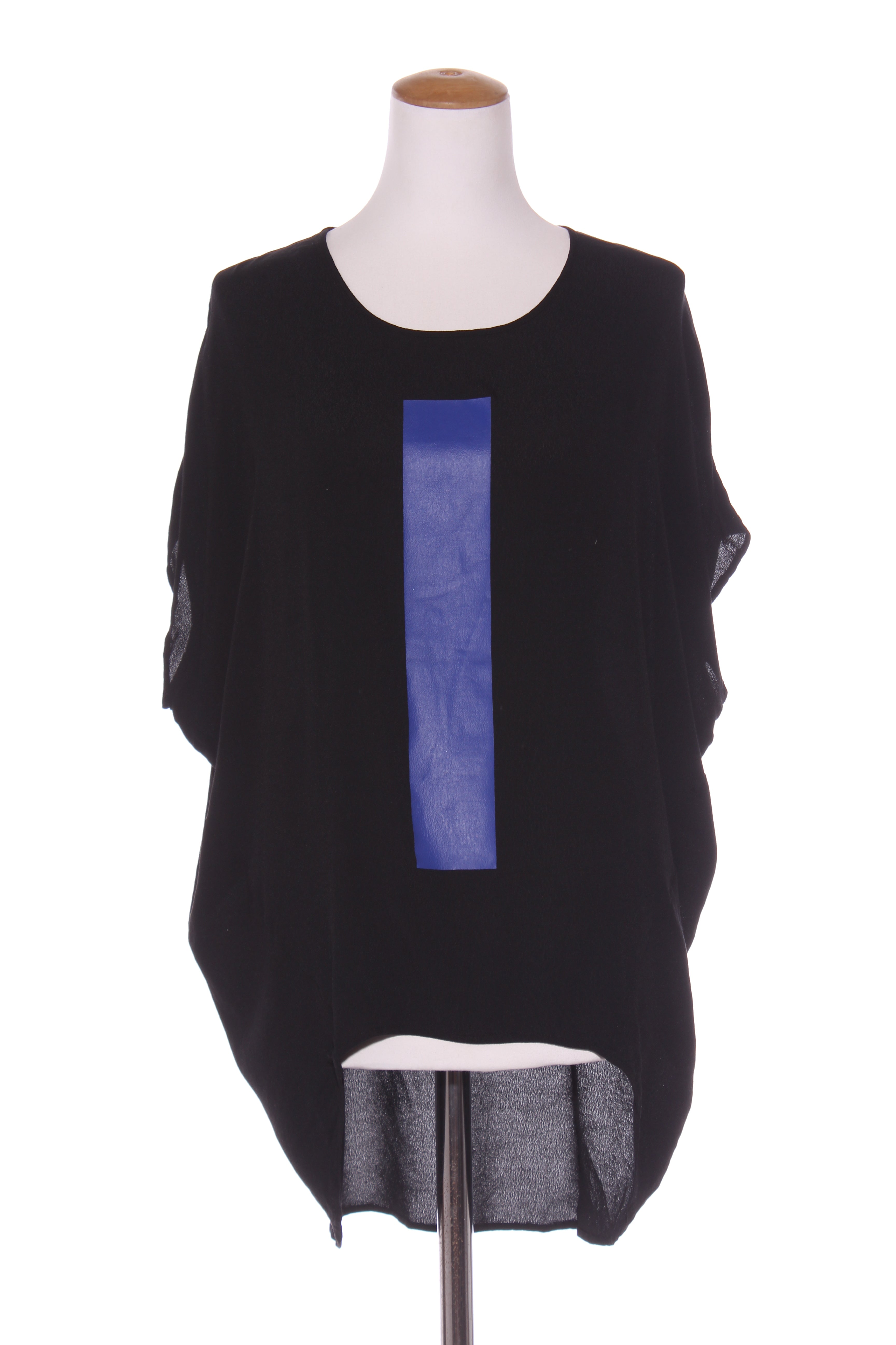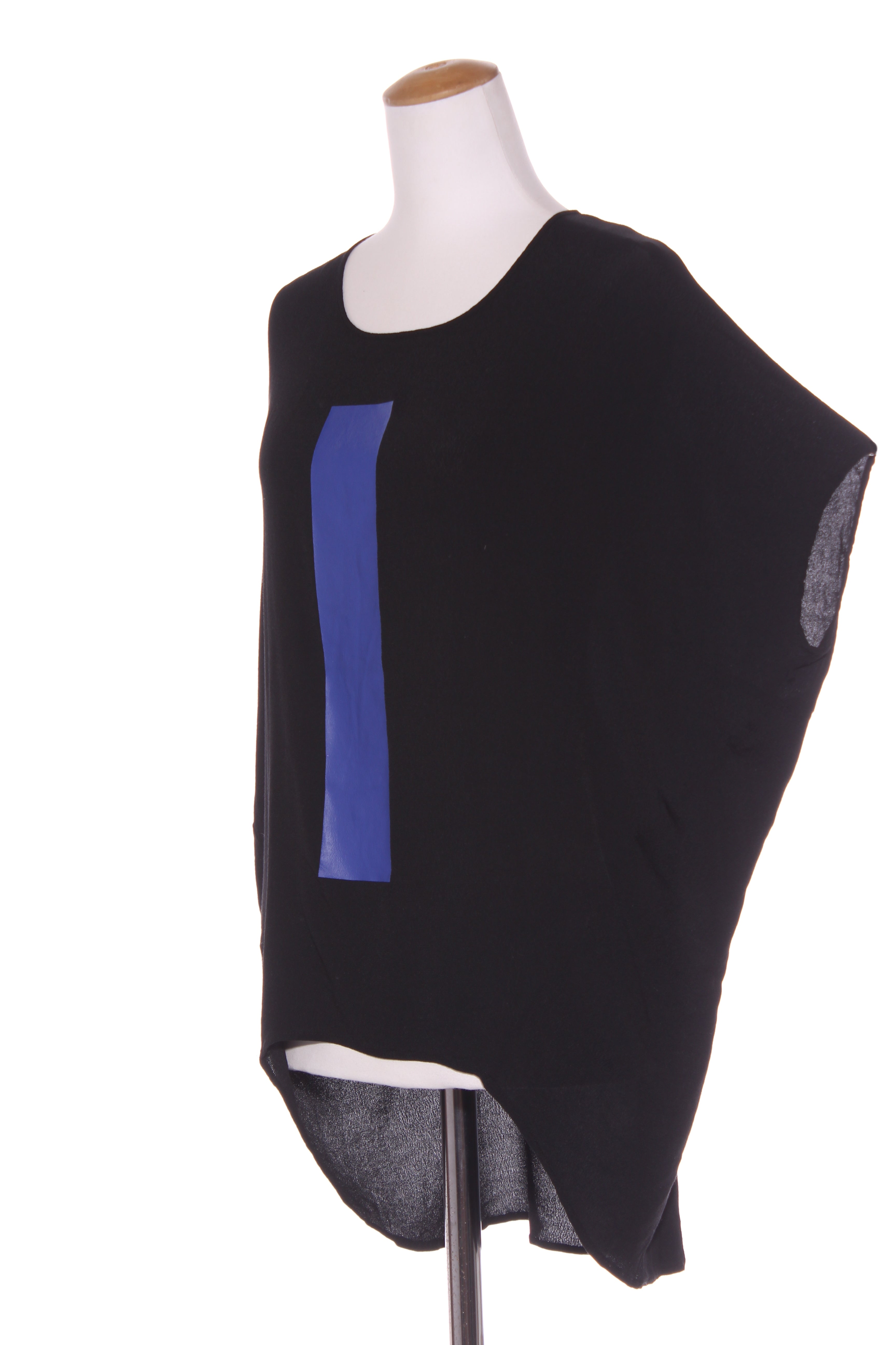 SIZE ON TAG: LFITS LIKE: 14COLOUR: Black, blueFABRIC: 52% viscose, 48% rayonCONDITION: Excellent prelovedMEASUREMENTS:BUST: 75cms WAIST: 69cms LENGTH: 67-85cmsNOTES: Fabric has stretch.