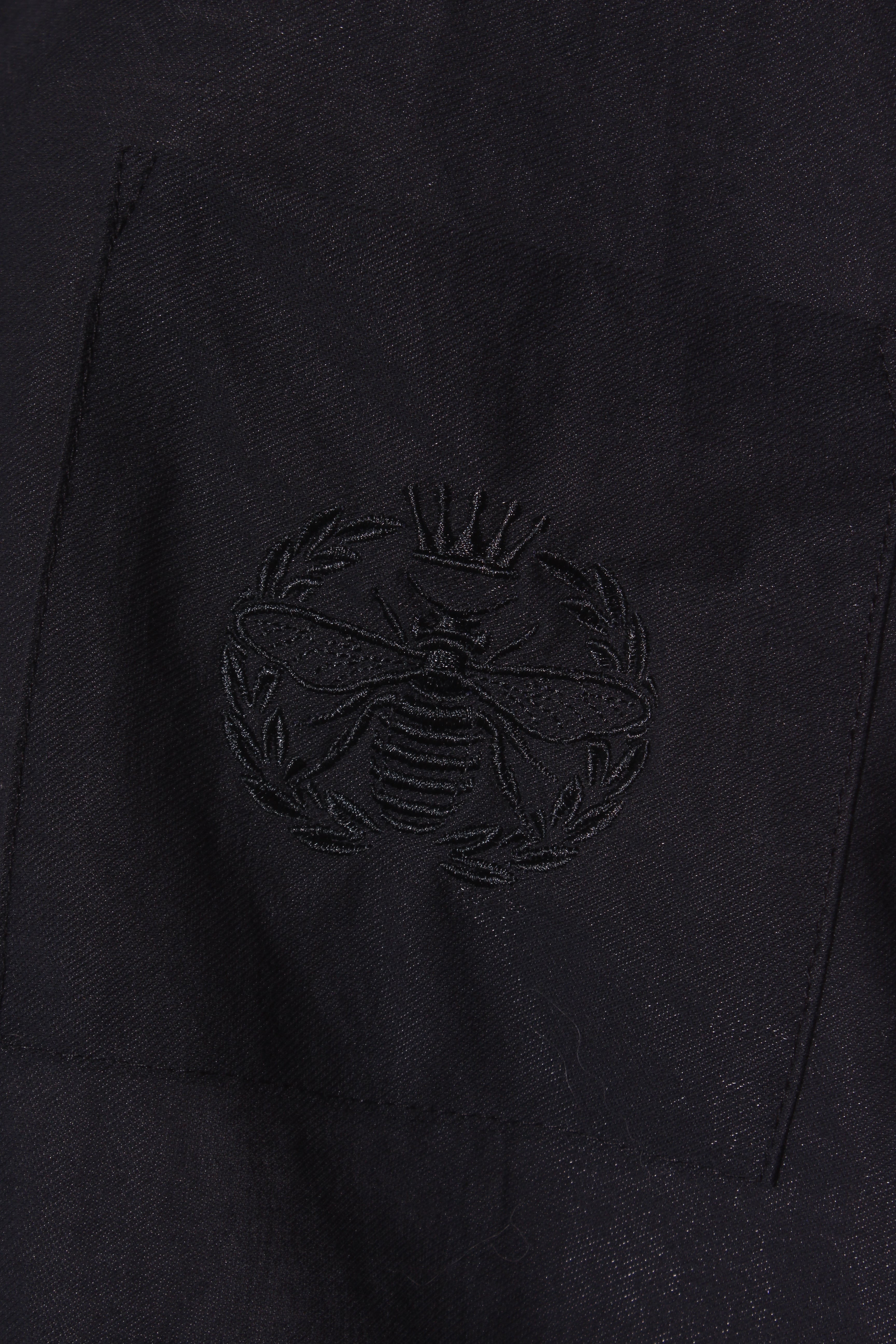 SIZE ON TAG: 14FITS LIKE: N/ACOLOUR: BlackFABRIC: 70% cotton, 30% nylonCONDITION: Like newMEASUREMENTS:BUST: 61cms WAIST: 58cms LENGTH: 55-70cmsNOTES: Single front pocket with embroidered detail. Fabric has...