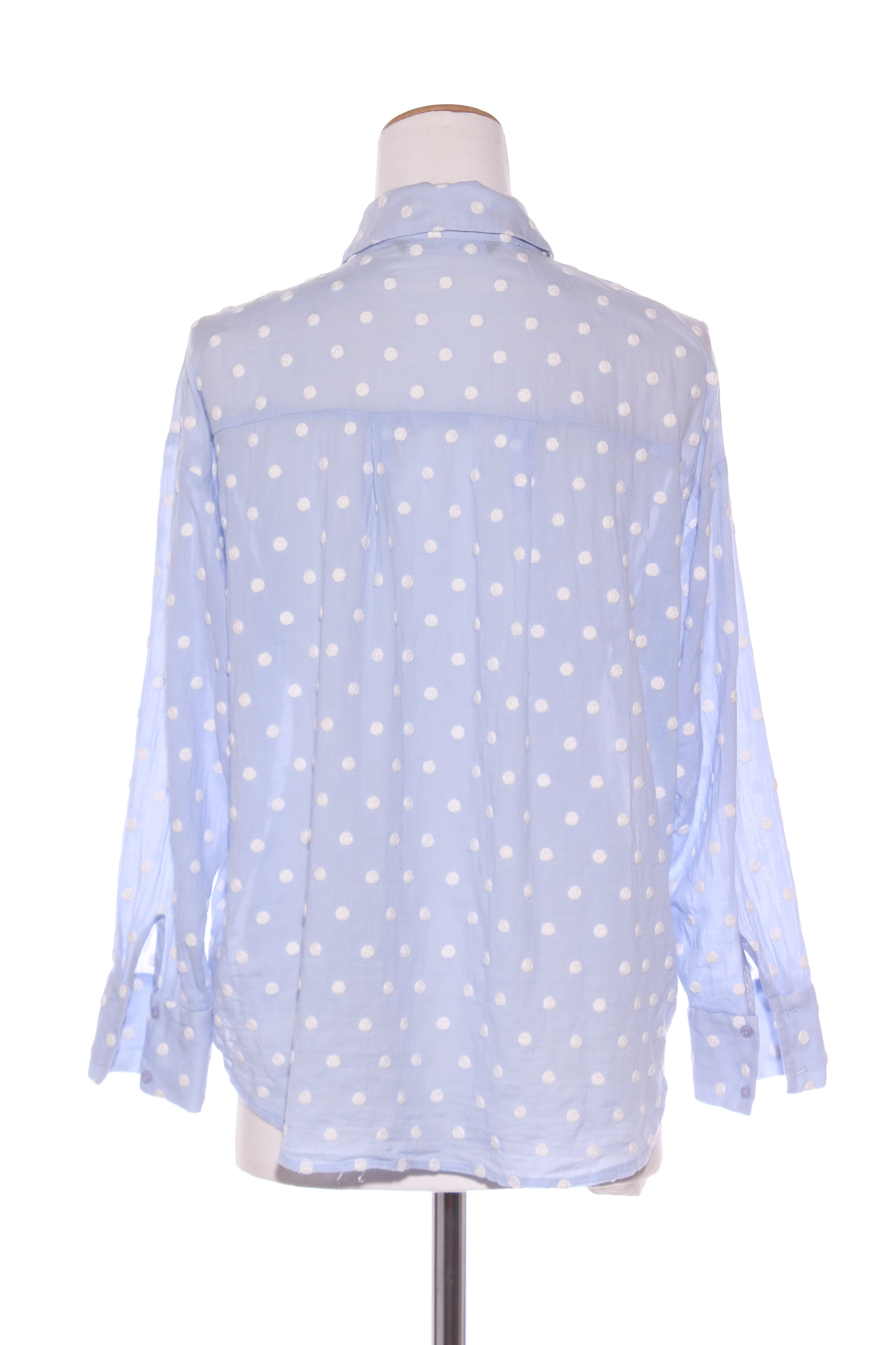 SIZE ON TAG: MFITS LIKE: 12COLOUR: Blue, whiteFABRIC: Tag removed, cottonCONDITION: Excellent prelovedMEASUREMENTS:BUST: 54cms WAIST: 59cms LENGTH: 61-68cmsNOTES: Button up front and sleeve ends.