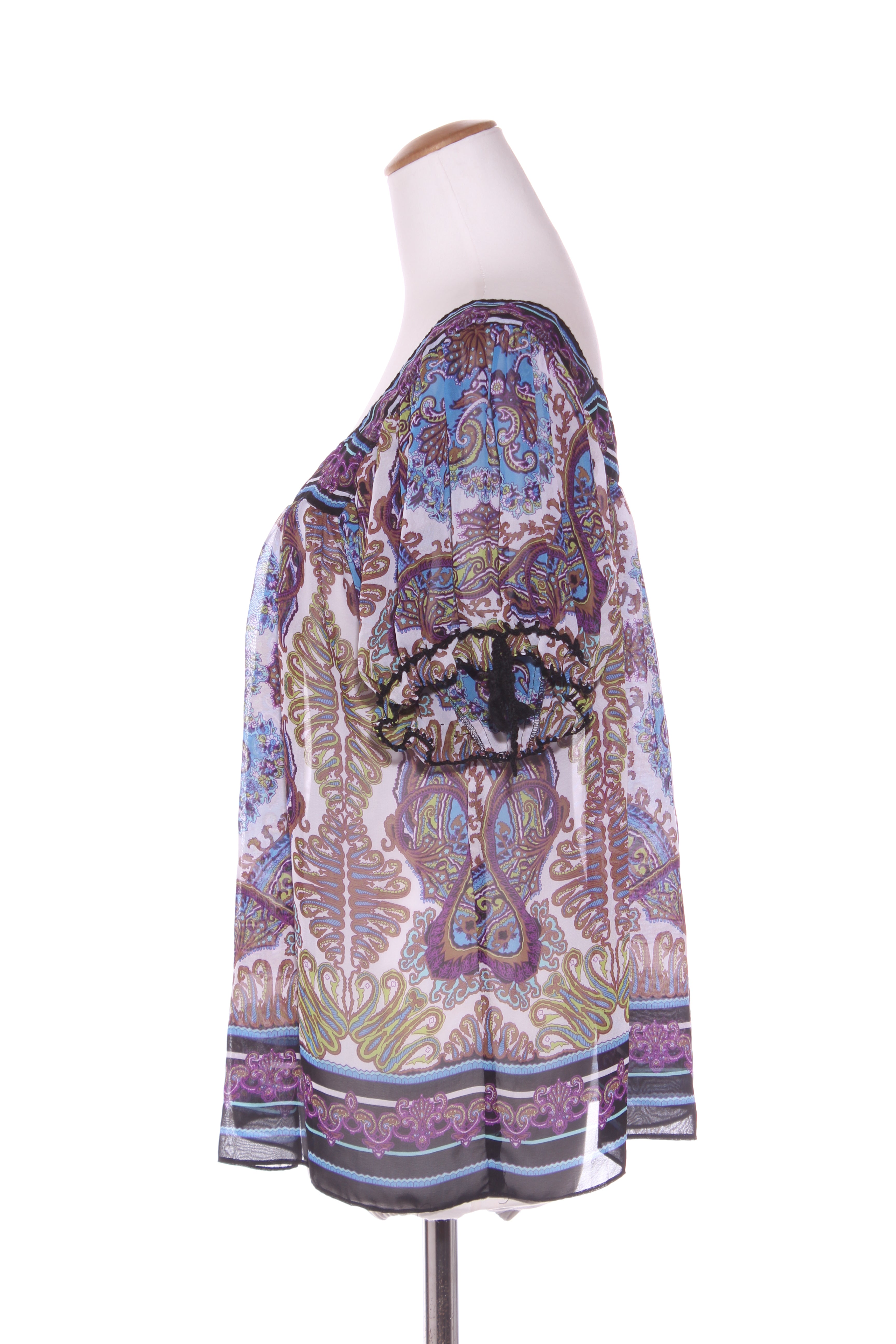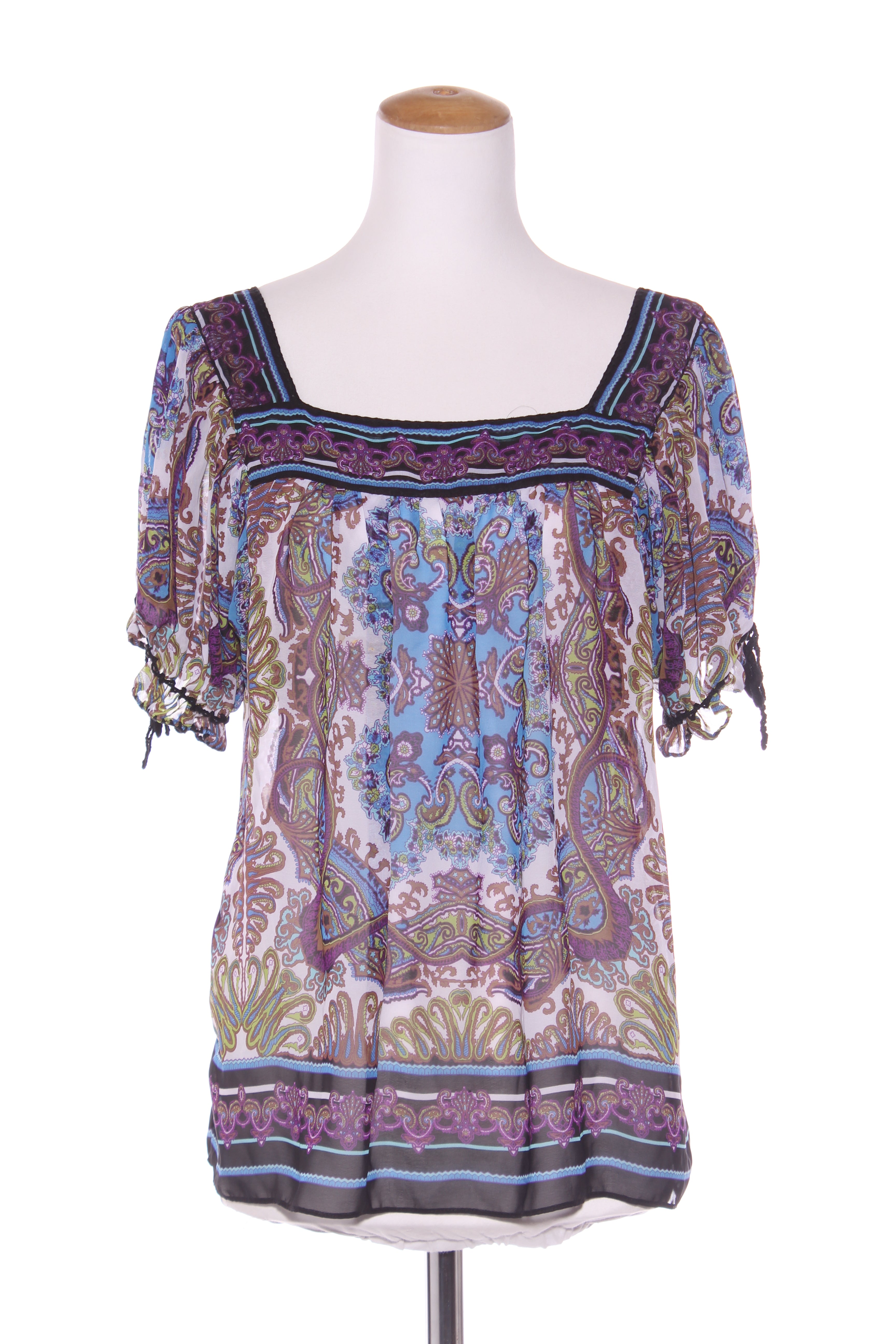 SIZE ON TAG: No size, O/SFITS LIKE: 10-16COLOUR: MultiFABRIC: ViscoseCONDITION: Excellent prelovedMEASUREMENTS:BUST: 66cms WAIST: 67cms LENGTH: 69cmsNOTES: I have added a pics of the Seattle blouse...