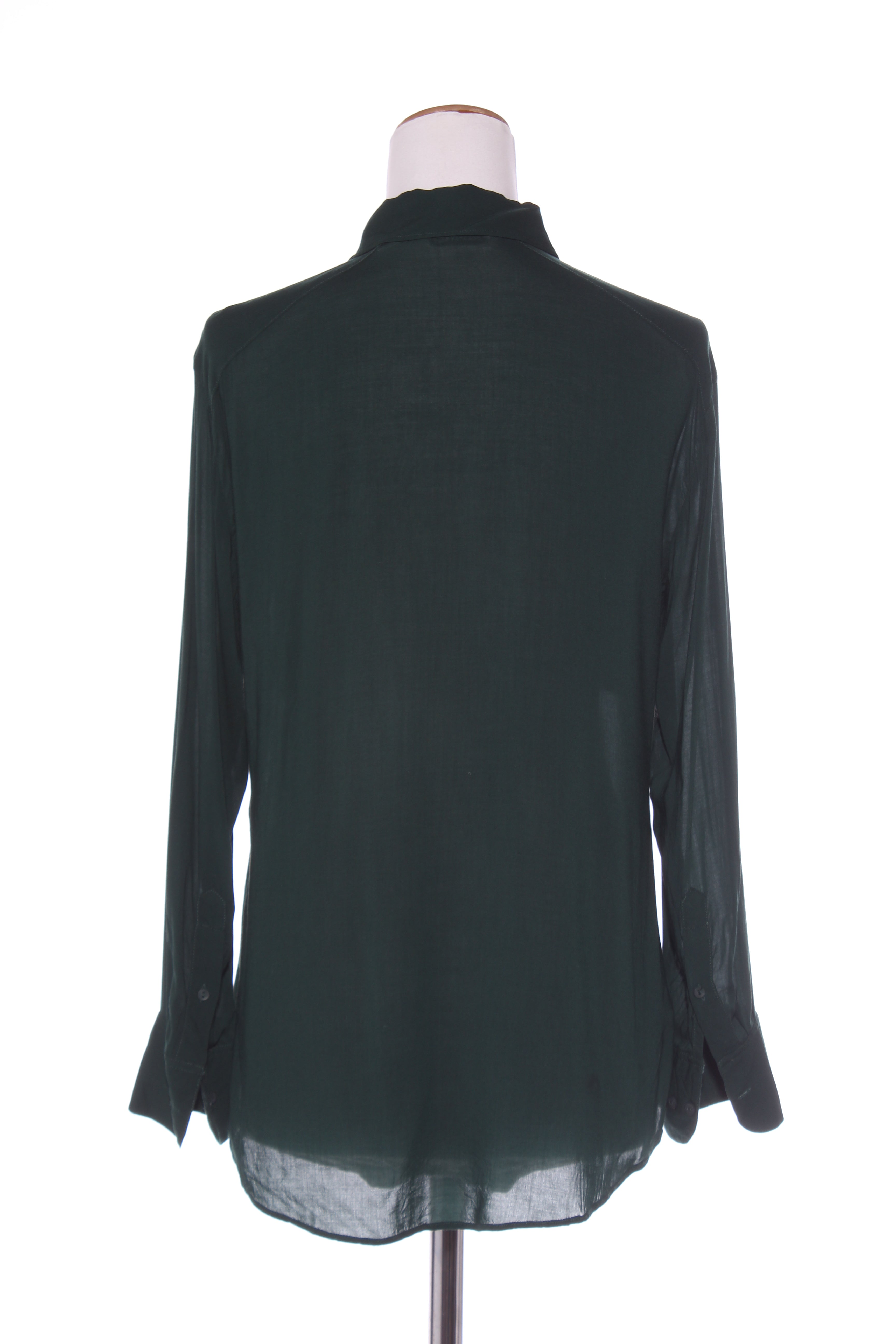 SIZE ON TAG: XLFITS LIKE: 16COLOUR: Forest greenFABRIC: ViscoseCONDITION: Excellent prelovedMEASUREMENTS:BUST: 47cms WAIST: 51cms LENGTH: 67-73cmsNOTES: Lightweight drapey viscose. Button up front and sleeve ends. Front...