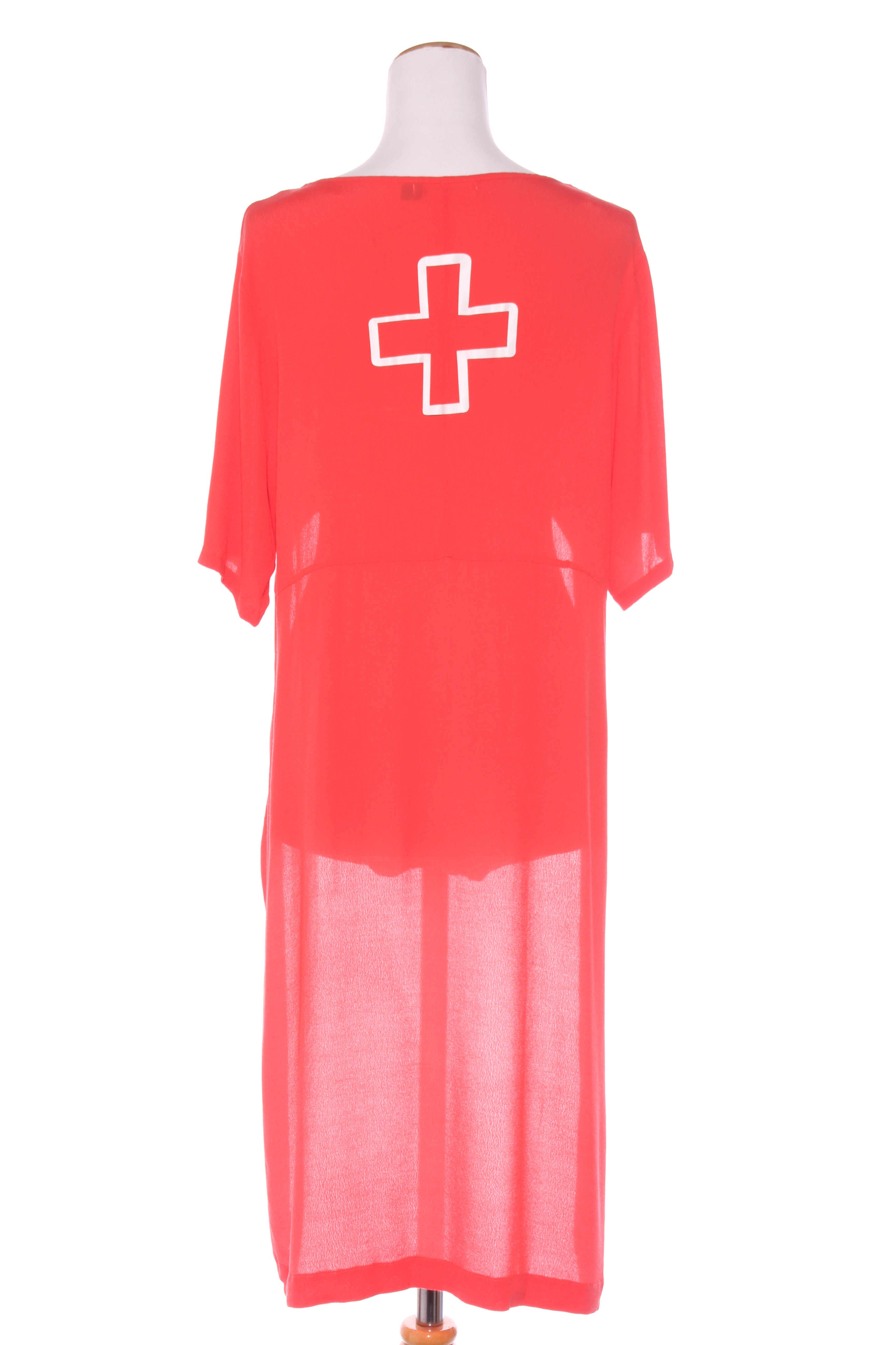 SIZE ON TAG: XLFITS LIKE: 16COLOUR: Orange, whiteFABRIC: 52% rayon, 48% viscoseCONDITION: Very good preloved - very very faint fading along sleeve - barely noticeableMEASUREMENTS:BUST: 56cms WAIST: 55cms...