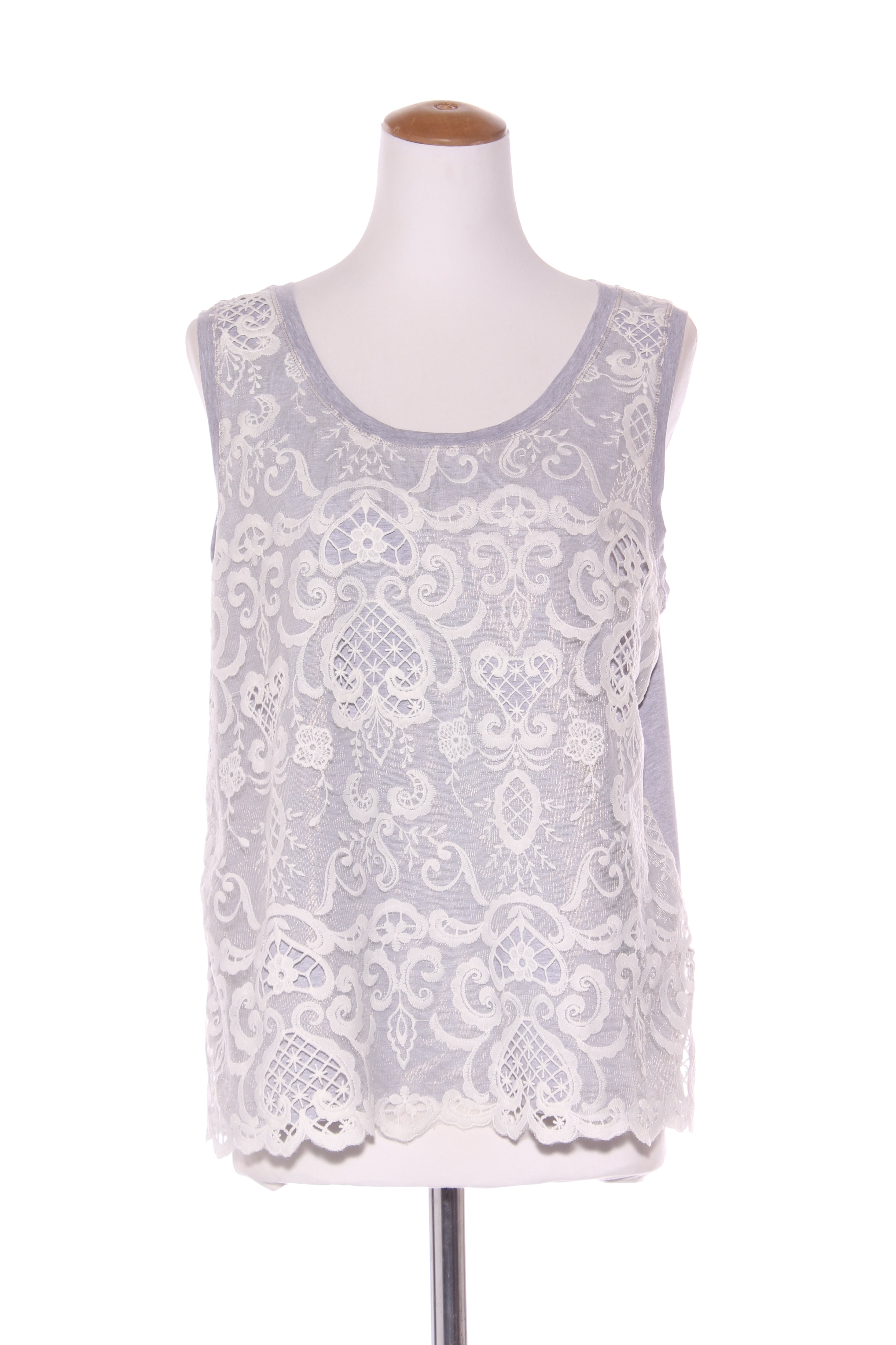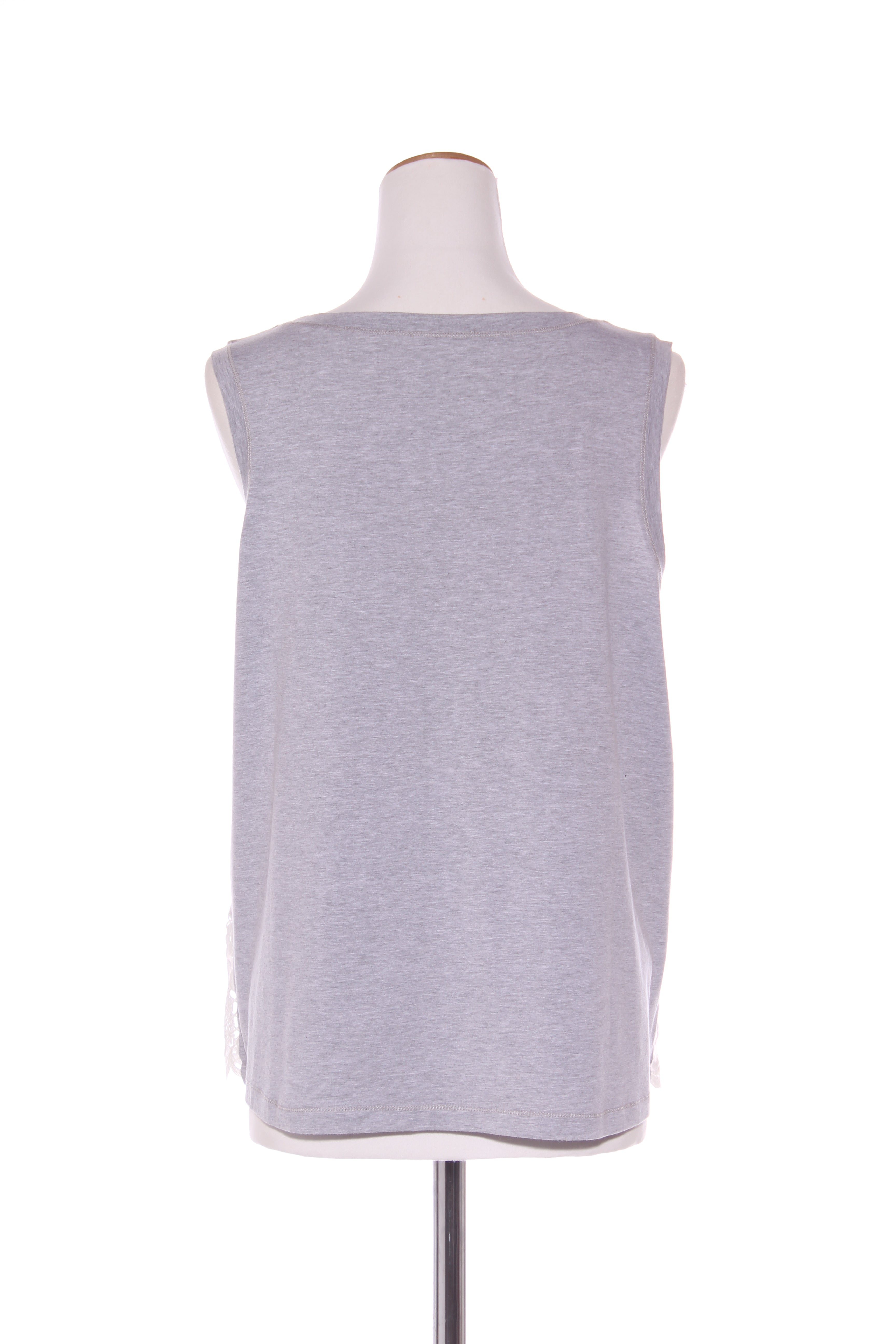 SIZE ON TAG: 16FITS LIKE: N/ACOLOUR: Grey marle, whiteFABRIC: 95% cotton, 5% elastane, Fabric B - polyesterCONDITION: Excellent prelovedMEASUREMENTS:BUST: 54cms WAIST: 55cms LENGTH: 66cmsNOTES: Grey marle...
