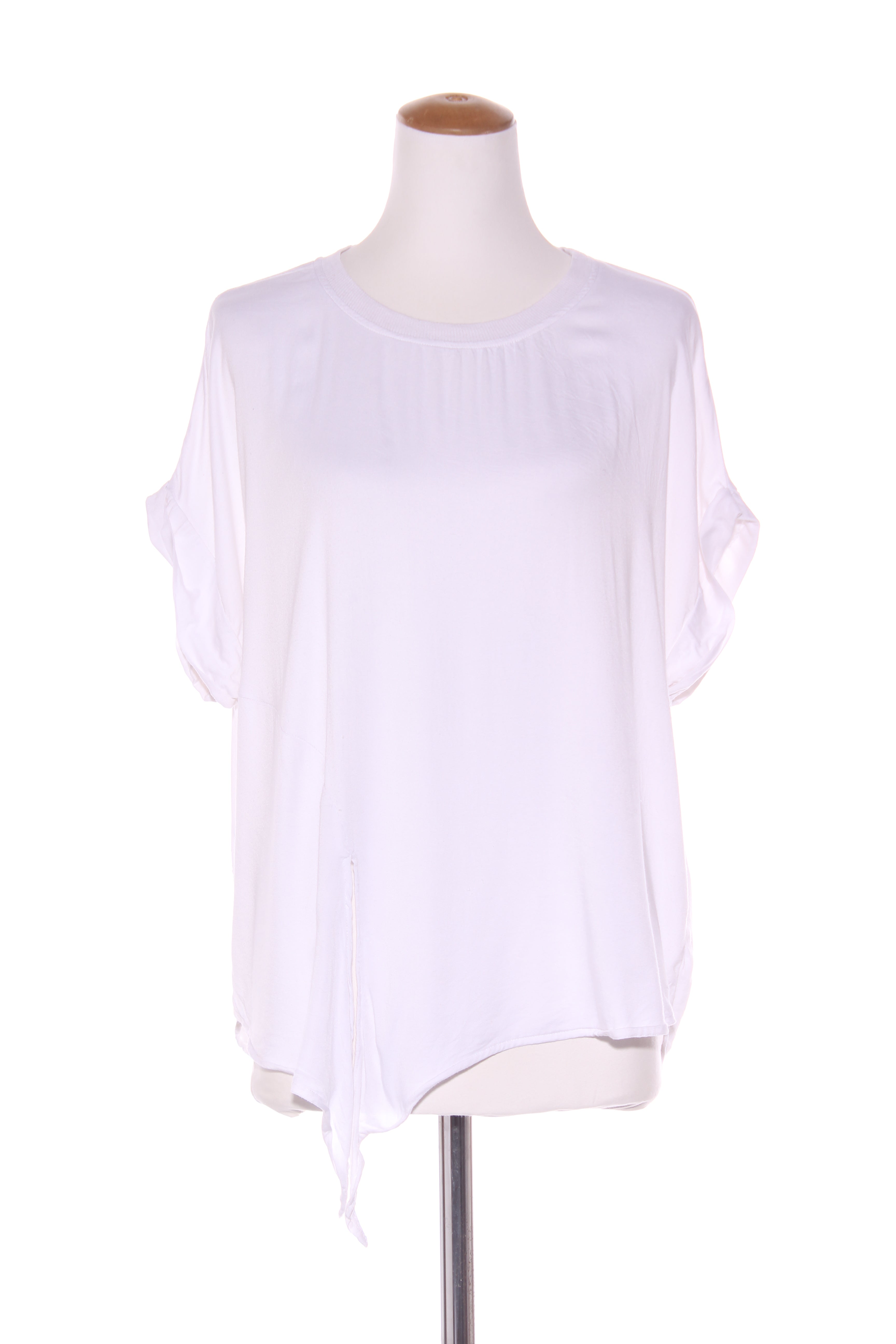 SIZE ON TAG: 16 FITS LIKE: N/ACOLOUR: WhiteFABRIC: Organic cottonCONDITION: Like newMEASUREMENTS:BUST: 58cms WAIST: 63cms LENGTH: 58-63cmsNOTES: Your new wardrobe staple, our Serena Tee features contrast poplin...