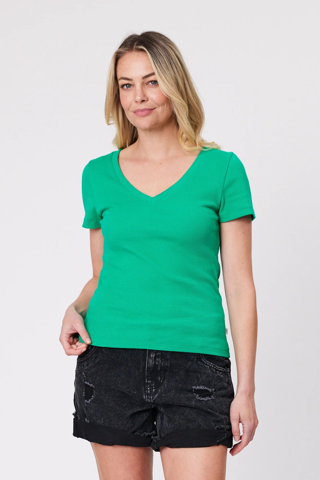SIZE ON TAG: 8FITS LIKE: 8-10COLOUR: GreenFABRIC: CottonCONDITION: Excellent preloved - hardly wornMEASUREMENTS:BUST: 48cms WAIST: 47cms LENGTH: 66cmsNOTES: We know that a great quality rib tee...